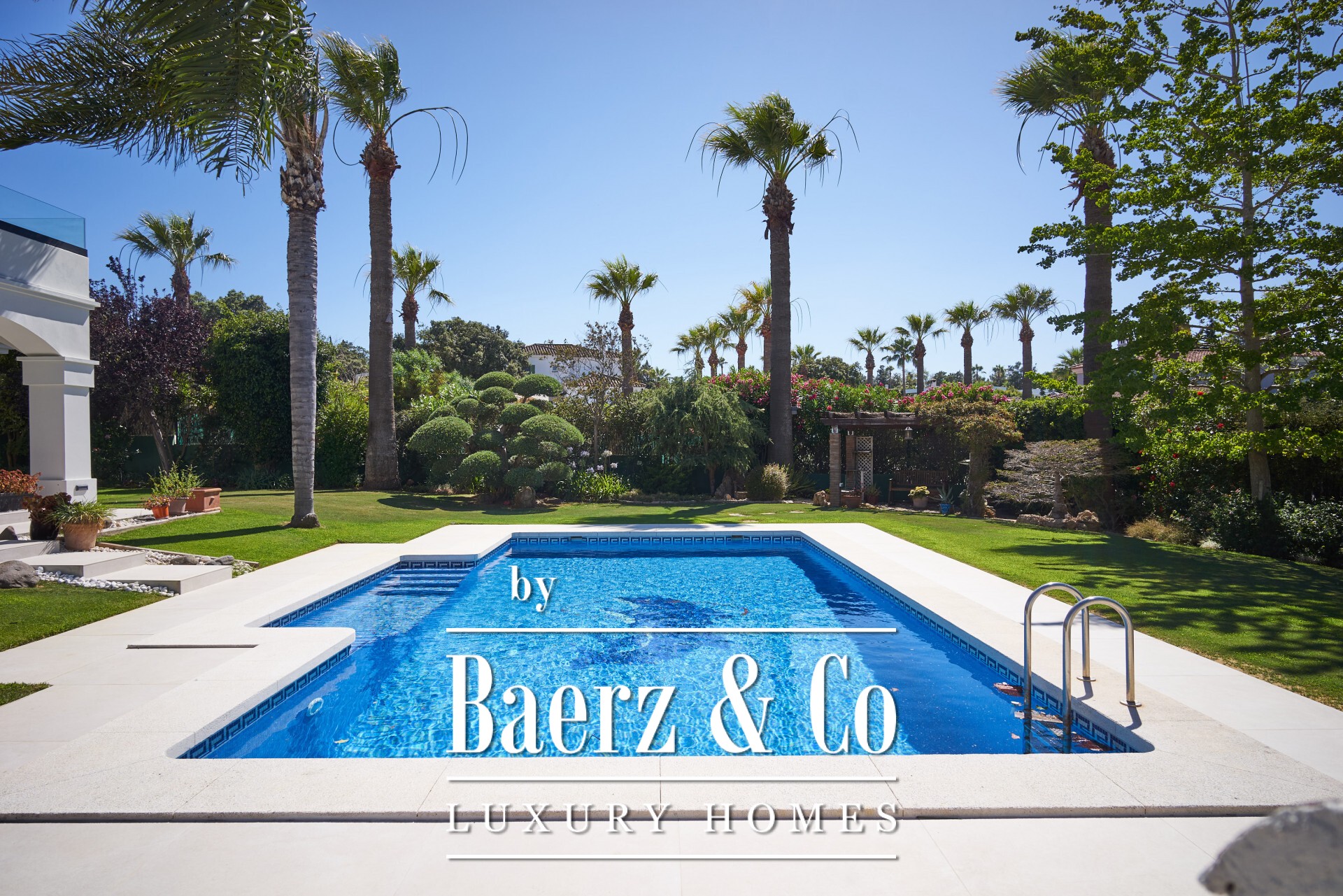 Villa Sotogrande is a fully renovated residence that unites Andalusian heritage with refined contemporary design. This villa Sotogrande property presents 372 m² of light-filled living space set on a plot of 1,335 m², each area thoughtfully crafted to encourage both calm and conviviality. The open-plan living area is shaped by floor-to-ceiling windows, creating a seamless transition between indoor and outdoor life, while bringing garden views and soft natural light into the lounge, dining room, and designer kitchen equipped with Neff appliances and a wine cooler.