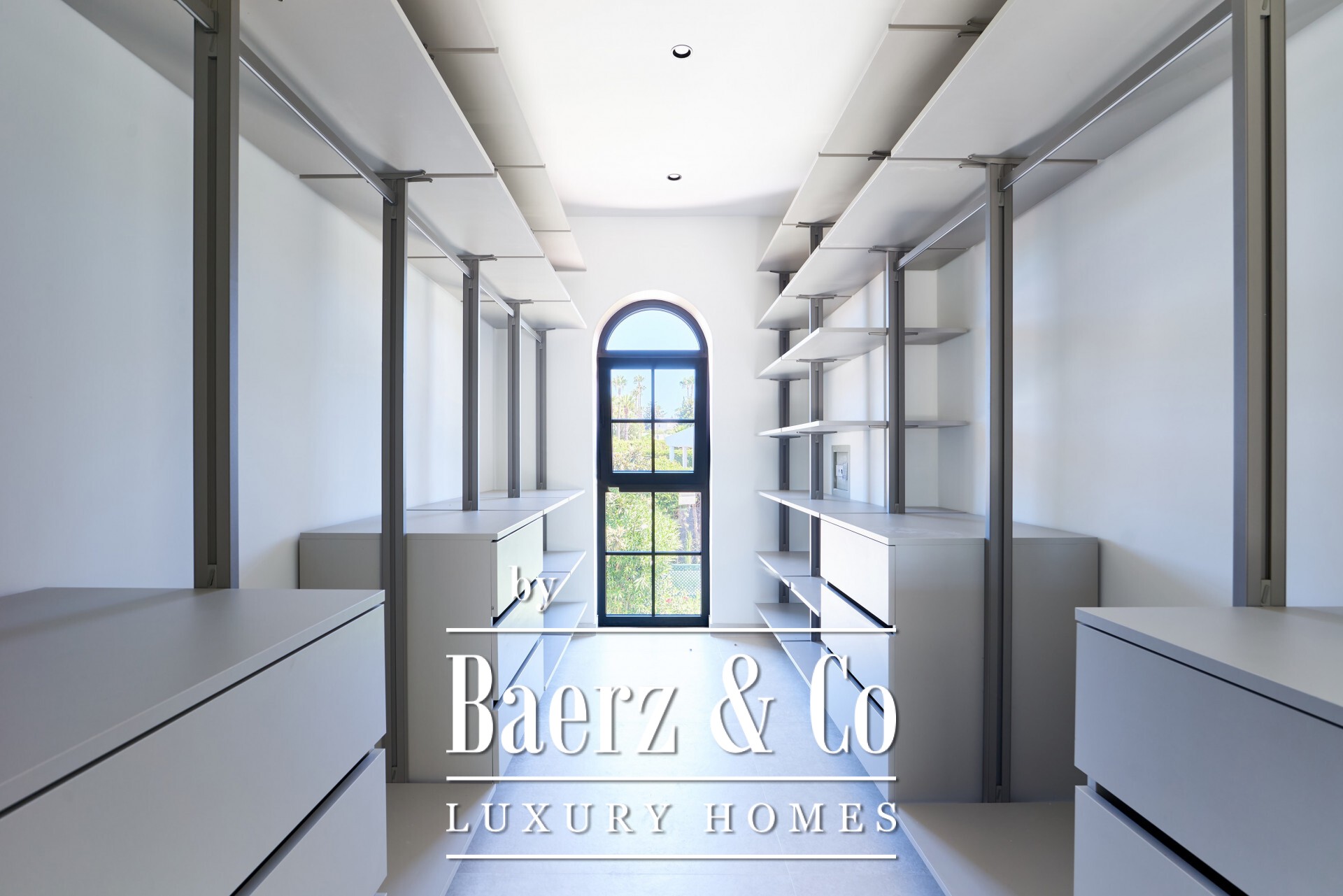 A 96 m² terrace, private pool, and landscaped gardens nod to the region’s traditional cortijos, yet the lines remain resolutely clean and modern. Positioned within a gated community, the home provides security and privacy while being moments from celebrated golf courses such as Valderrama and La Reserva, as well as Sotogrande Marina and International School. For those seeking a villa for sale in Sotogrande, this property balances serene surroundings with access to local amenities, beaches, and a community admired for its quality of life.