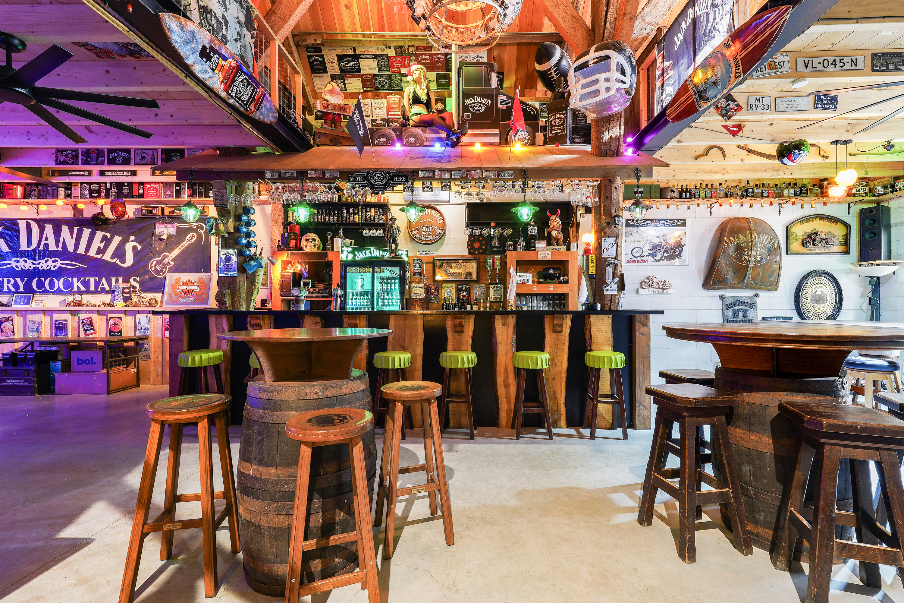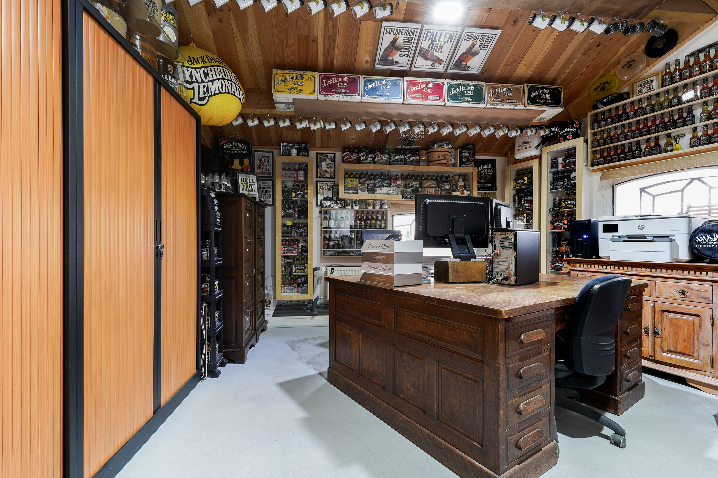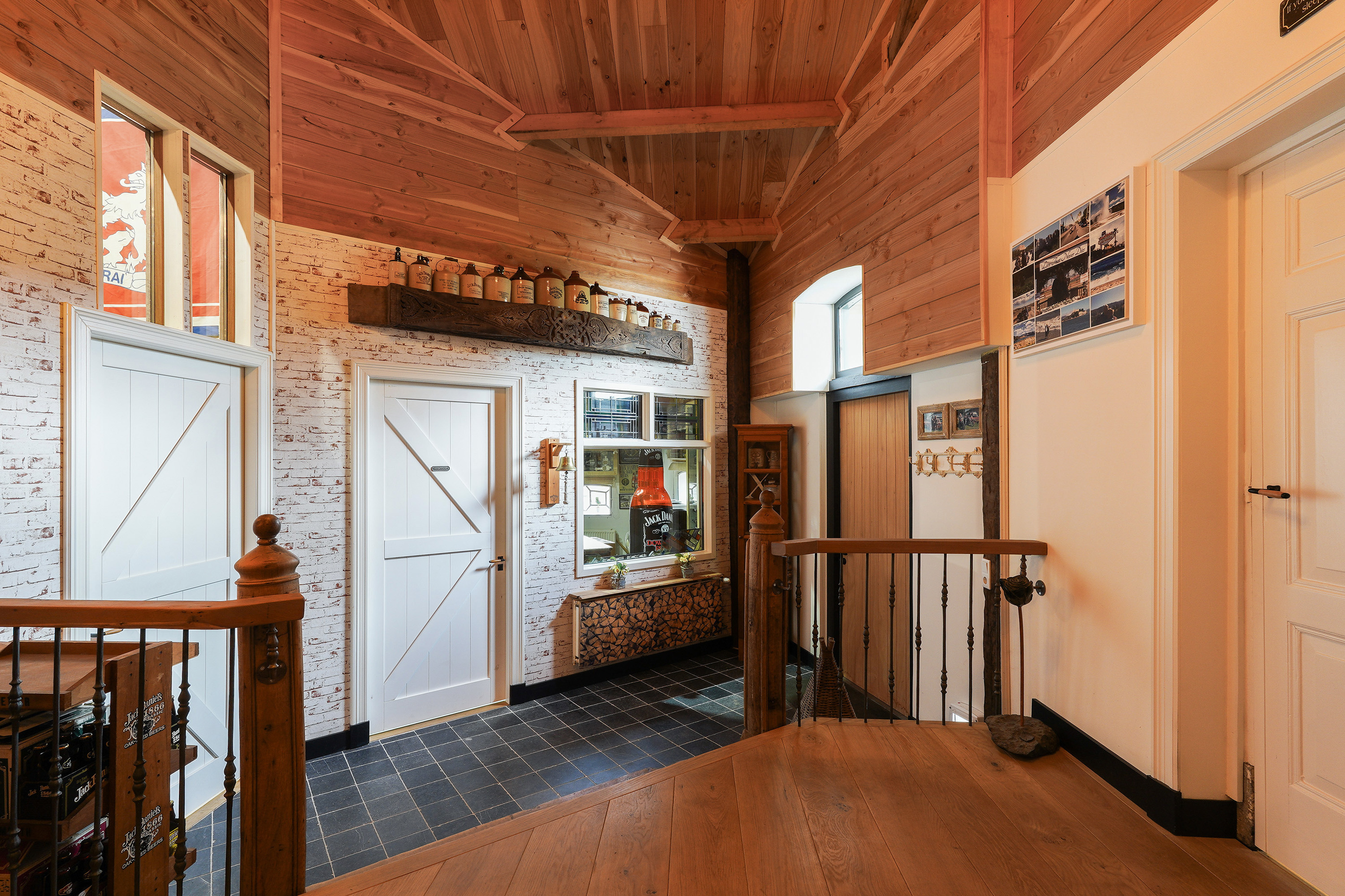 And then… accessible via the utility room, the garage or the veranda at the rear… the bar. Fully equipped with refrigeration units, its own restroom with toilet and urinal, and an impressive mezzanine reaching up to the roof ridge. Even from the attic level you can look down into the bar. This is a space that must be experienced.
