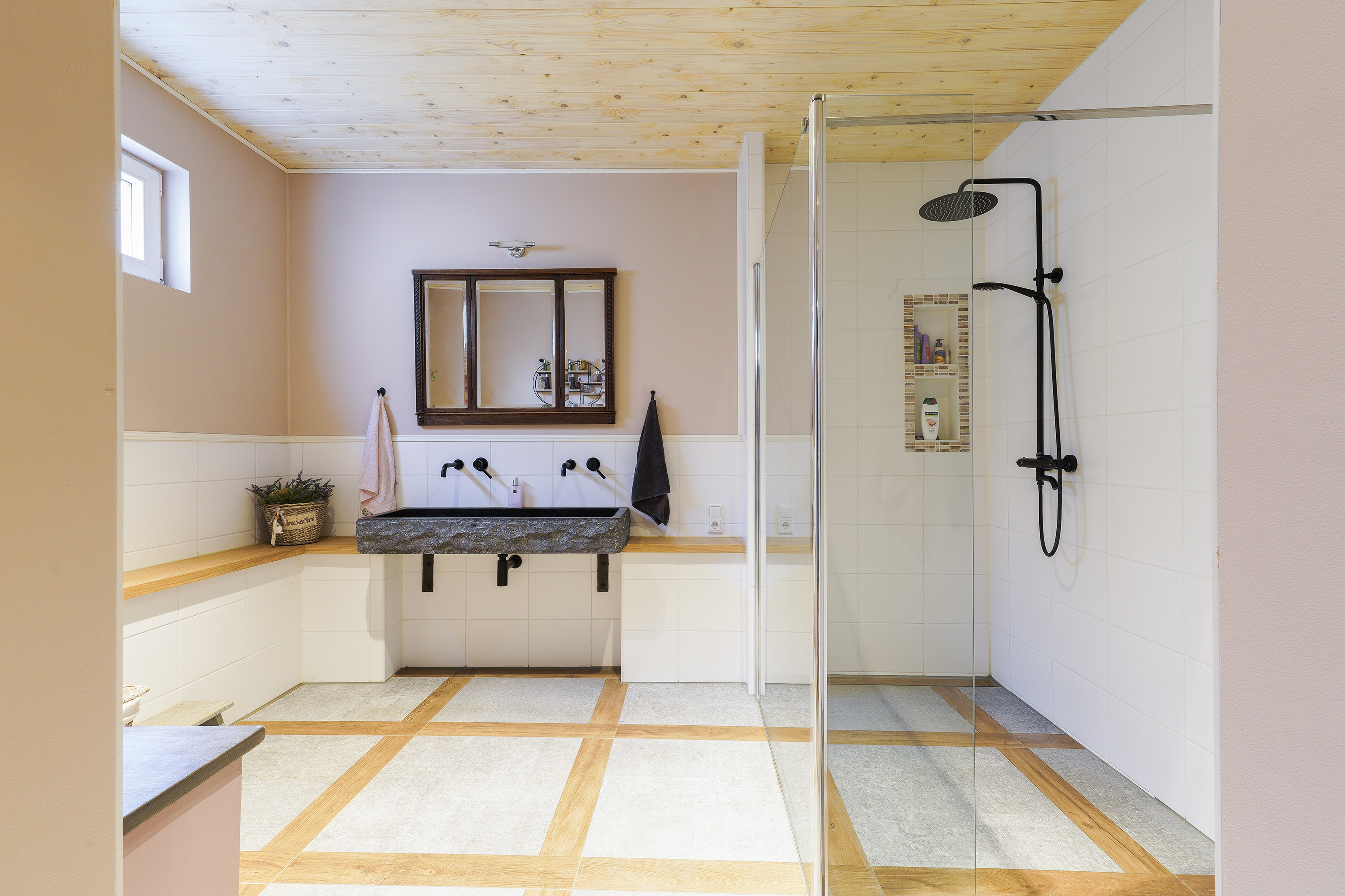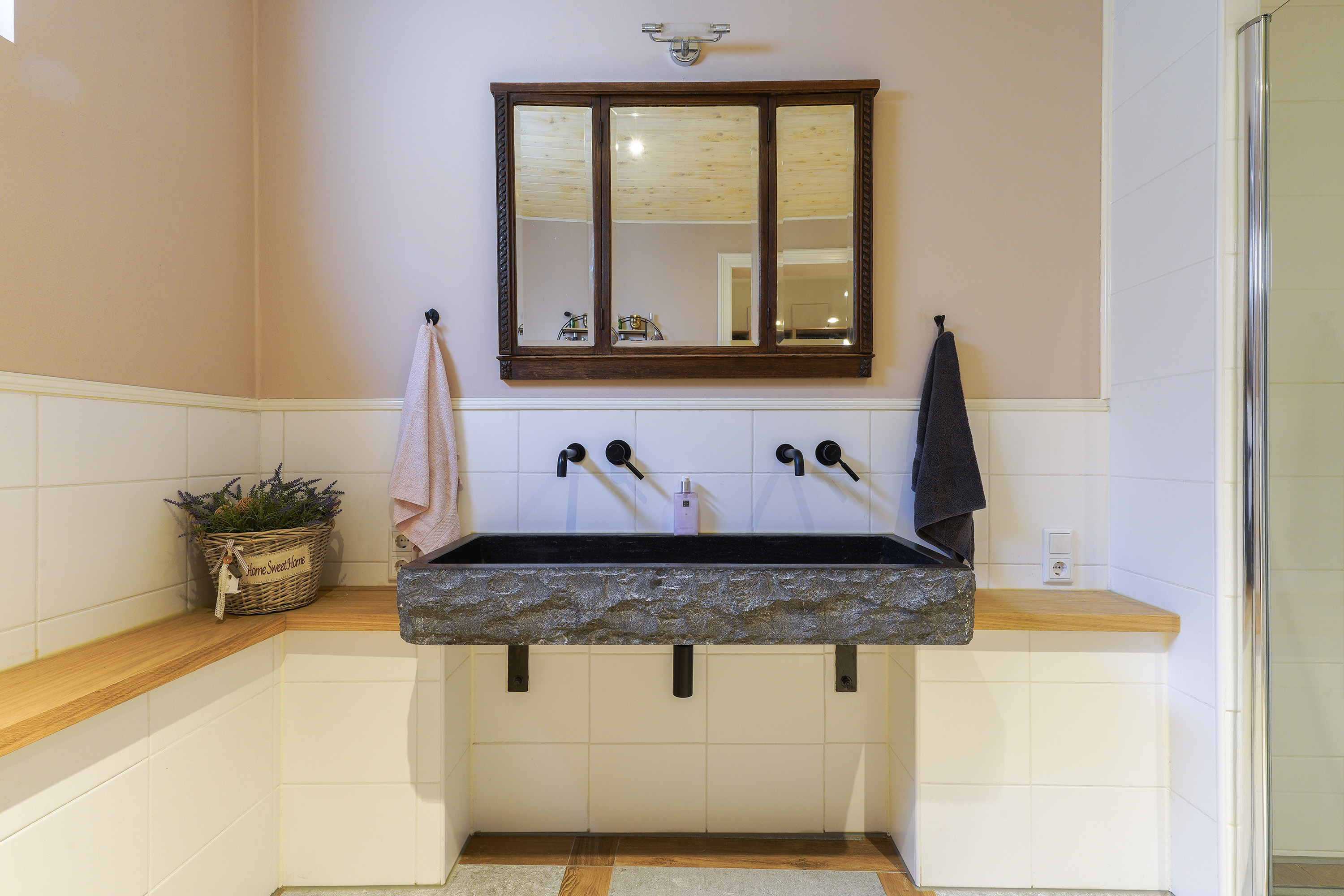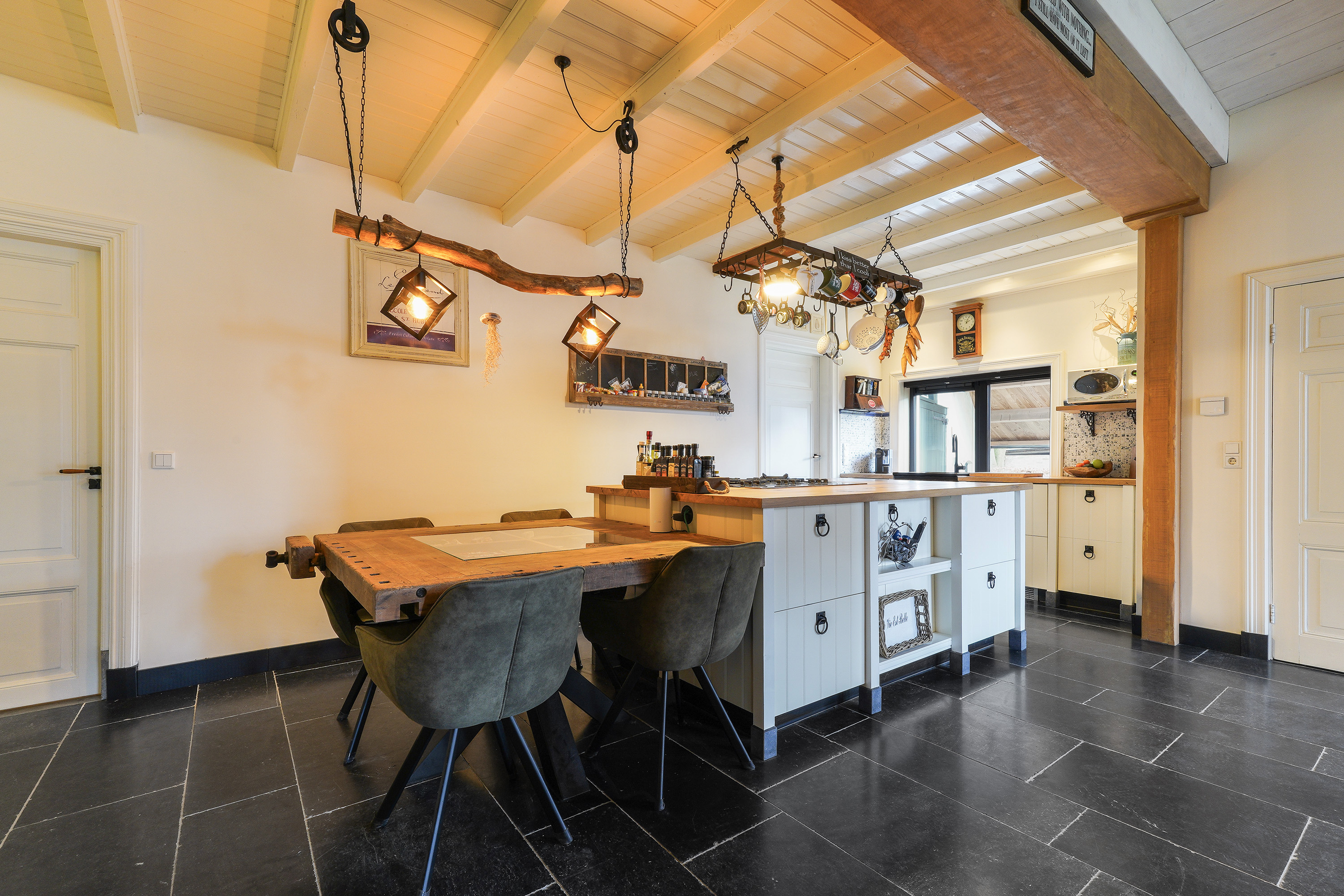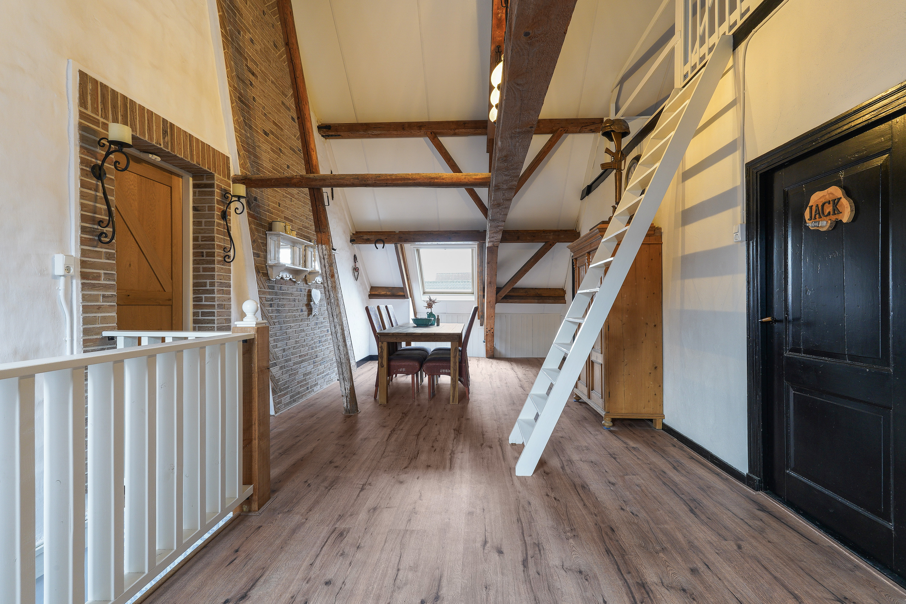 During the recent renovation, the façades were cleaned, impregnated, re-pointed where necessary and insulated. Authentic wooden beams have been preserved, left visible and professionally treated, creating a warm, characterful atmosphere with a nod to the past.
