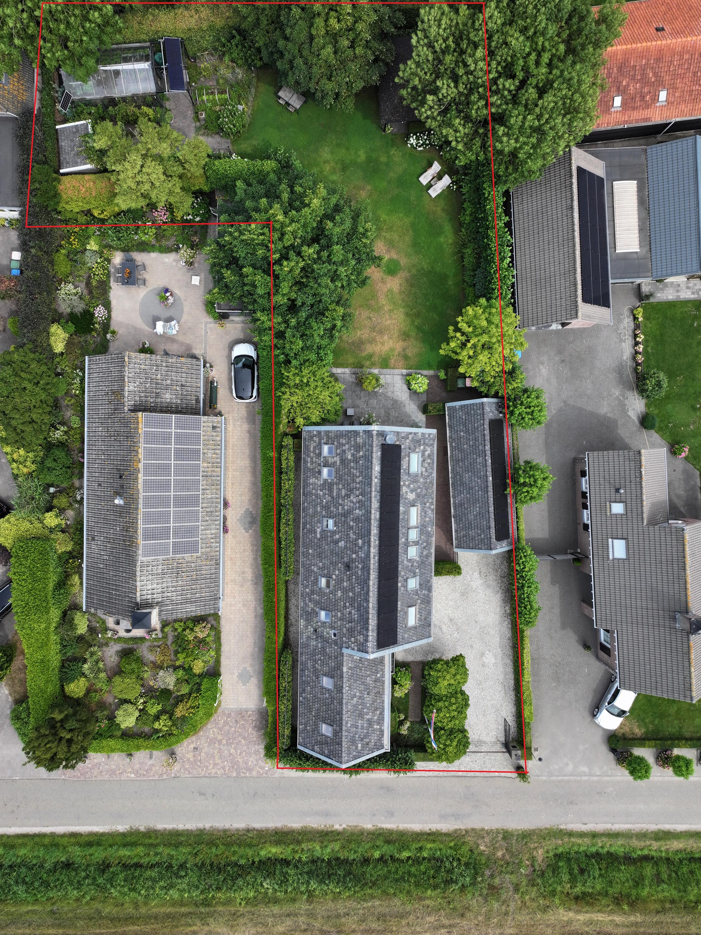 De tuin aan de achterzijde is prachtig aangelegd met veel privacy en o.a. een overkapping, berging, tuinkas, terras, etc. Aan de voorzijde is een afsluitbare oprit aangelegd met parkeergelegenheid voor meerdere auto’s. Tevens is er een geïsoleerde hobbyruimte en verwarmde garage t.b.v. stallen van 2 auto’s, welke is voorzien van alle voorzieningen.