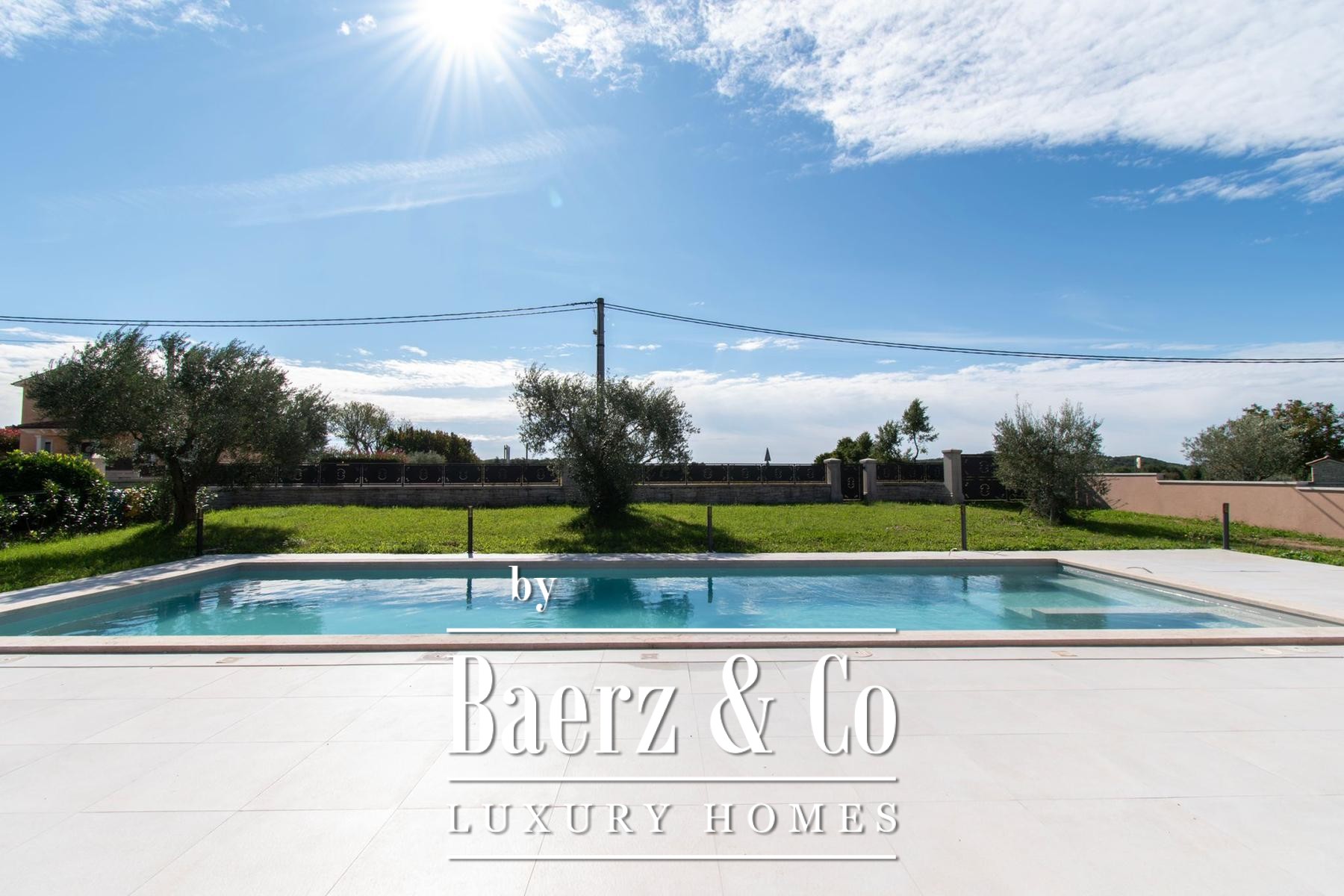 The residence unfolds over several floors. The ground floor accommodates generous social spaces, a potential spa with gym, sauna, jacuzzi, and dedicated recreation rooms. A wine cellar, tavern with fireplace, technical and laundry rooms add practicality and indulgence. Upstairs, three en suite bedrooms are complemented by an open-plan living area that flows directly onto a terrace and a 50 m² swimming pool. The kitchen and shared bathroom are also thoughtfully placed on this level. The second floor is reserved exclusively for the master suite, which features a private bathroom, large dressing room, and enhanced privacy.