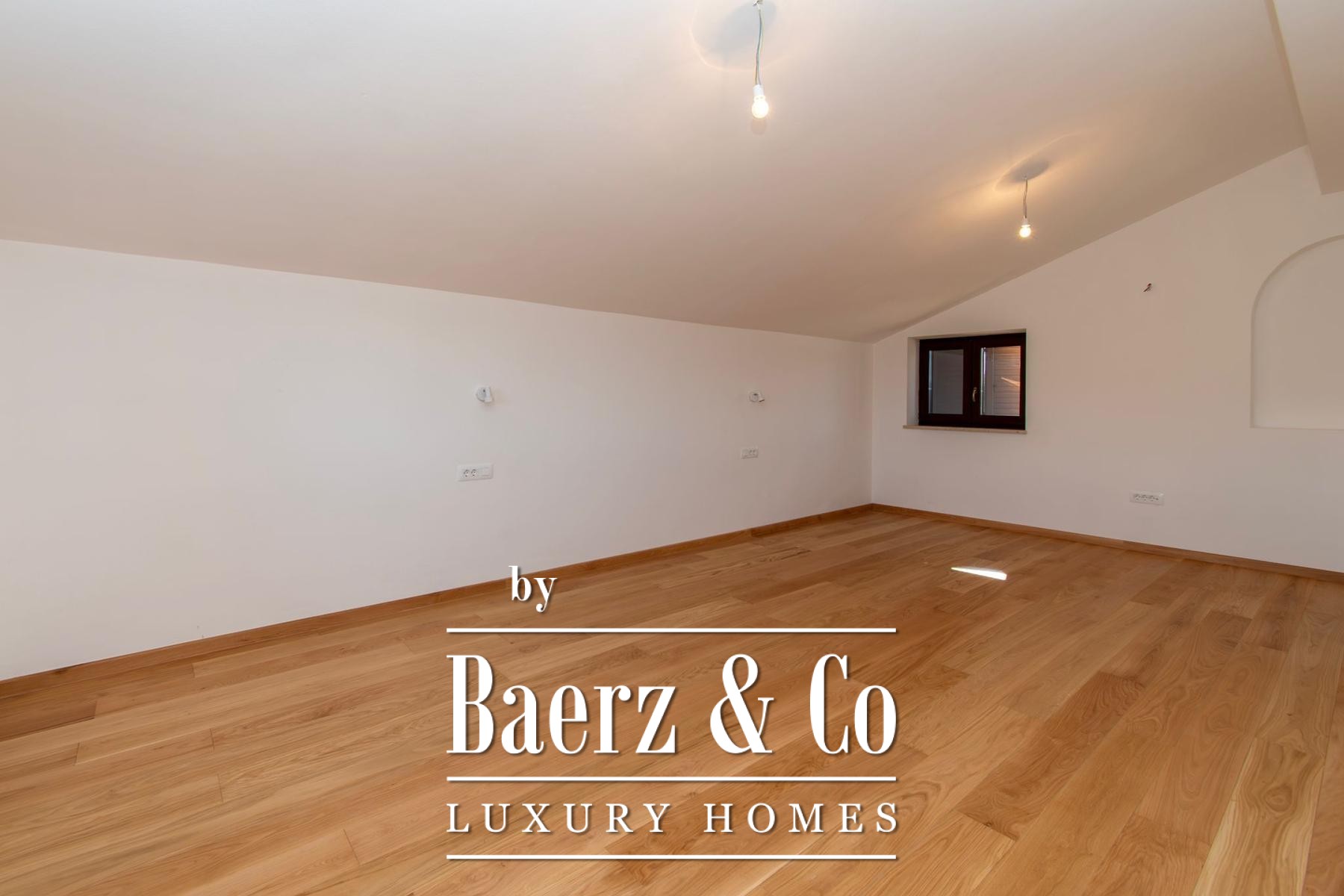 Constructed in reinforced concrete, the home’s natural light and sense of space are amplified by 2.75 m ceilings, triple-glazed walnut-color windows, Italian NORDIK TILE ceramics, and oak parquet. Advanced systems include DAIKIN heat pumps, 11 air conditioners, video surveillance, and an alarm. The exterior features five parking spaces, two gated entries, stone-built terraces, ancient olive trees, and meticulously landscaped grounds. This luxury villa for sale in Sveti Lovreč is ten minutes from the beaches of Vrsar and Poreč, offering a serene pace of life, technical excellence, and a discreet sense of place.