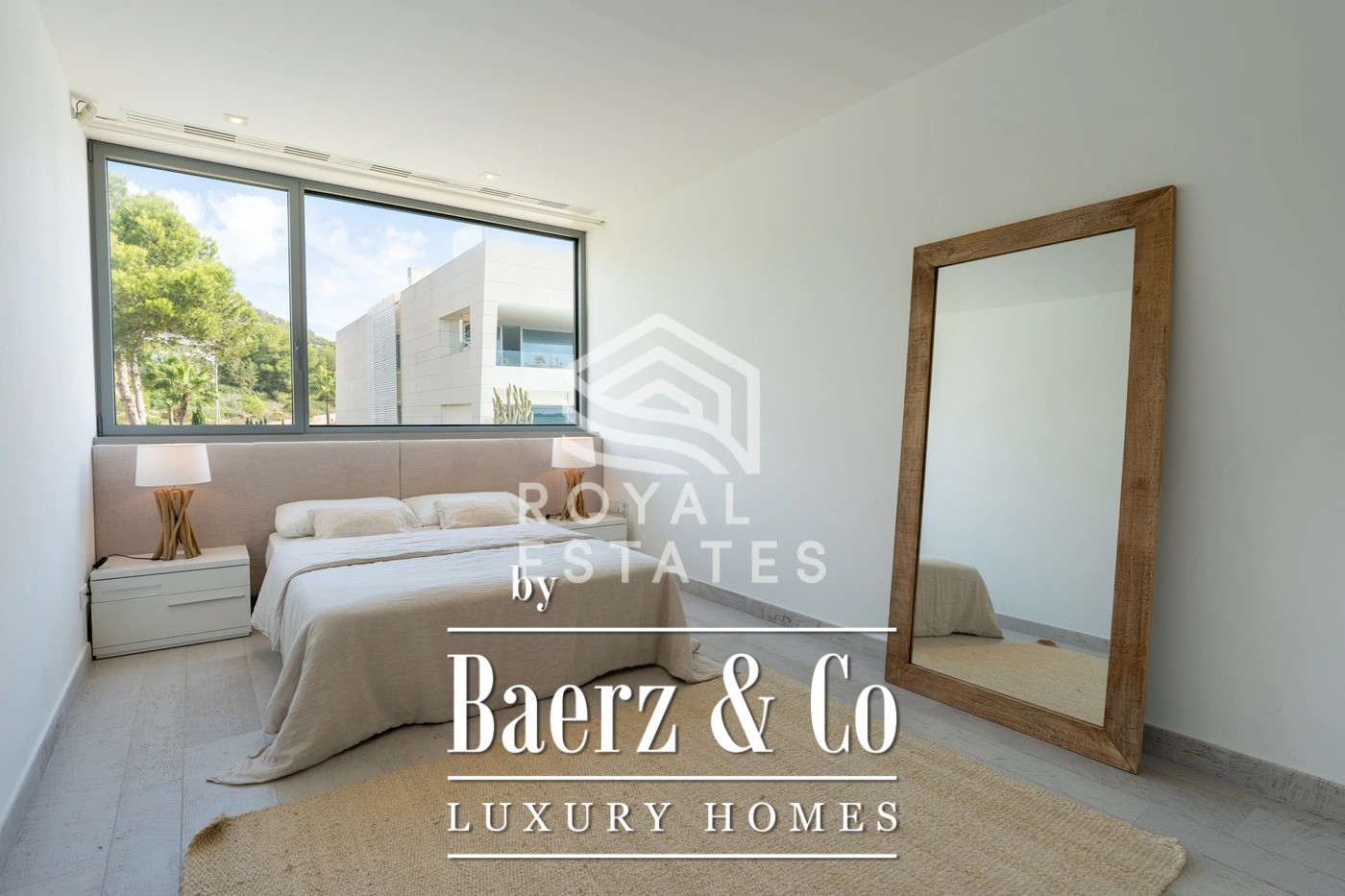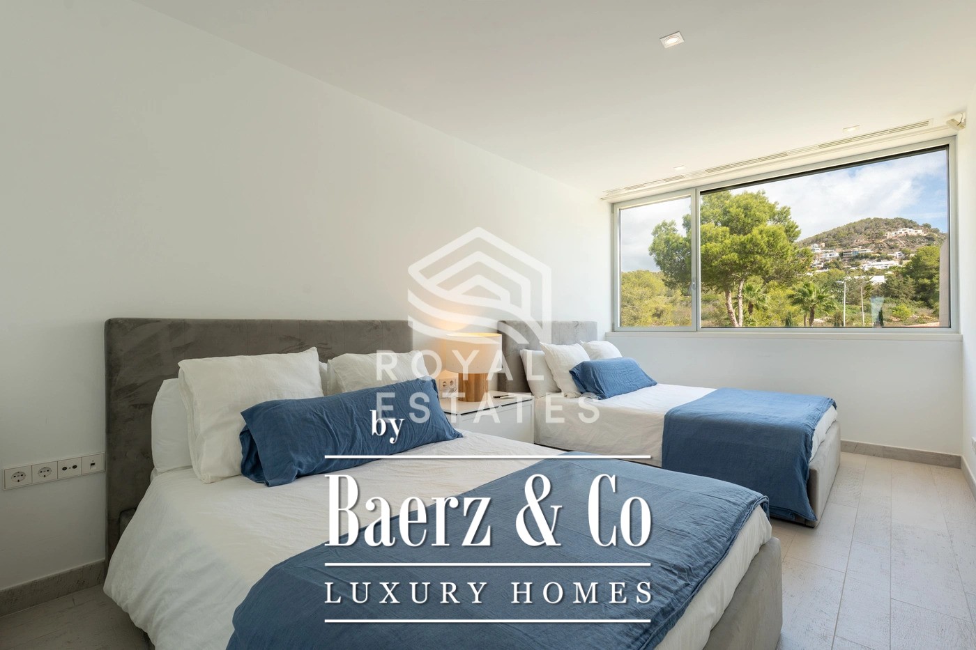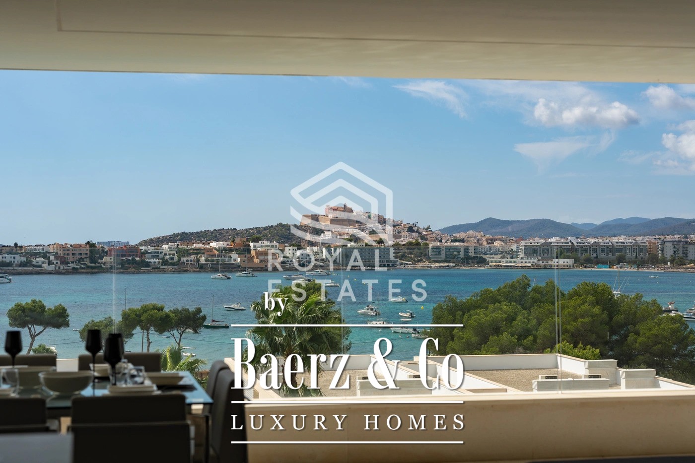 This duplex penthouse Talamanca is positioned within the secure Es Pouet enclave, one of the island’s most sought-after addresses. Occupying approximately 429 m², including 347 m² of interior space, the residence exemplifies refined living framed by the uninterrupted vistas of the Mediterranean Sea and Ibiza’s historic Dalt Vila. Floor-to-ceiling windows illuminate the open-plan living and dining areas, connecting seamlessly to a broad terrace that invites the interplay of island light and sea air.