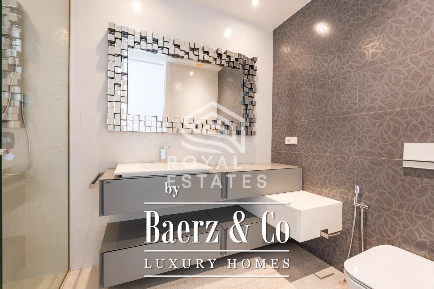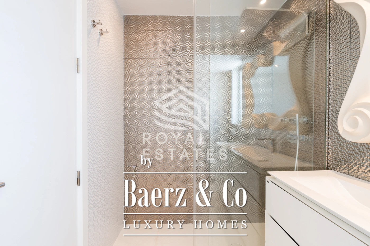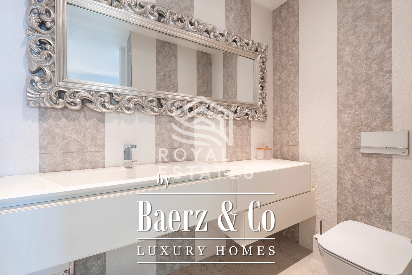 Four bedrooms are arranged for privacy and comfort, with three en-suite bathrooms complementing the thoughtful layout. The master suite, distinguished by direct terrace access and views across the bay, reflects a commitment to restraint and premium materials. A contemporary kitchen blends understated elegance with practicality while a guest toilet and dedicated laundry room provide further convenience.