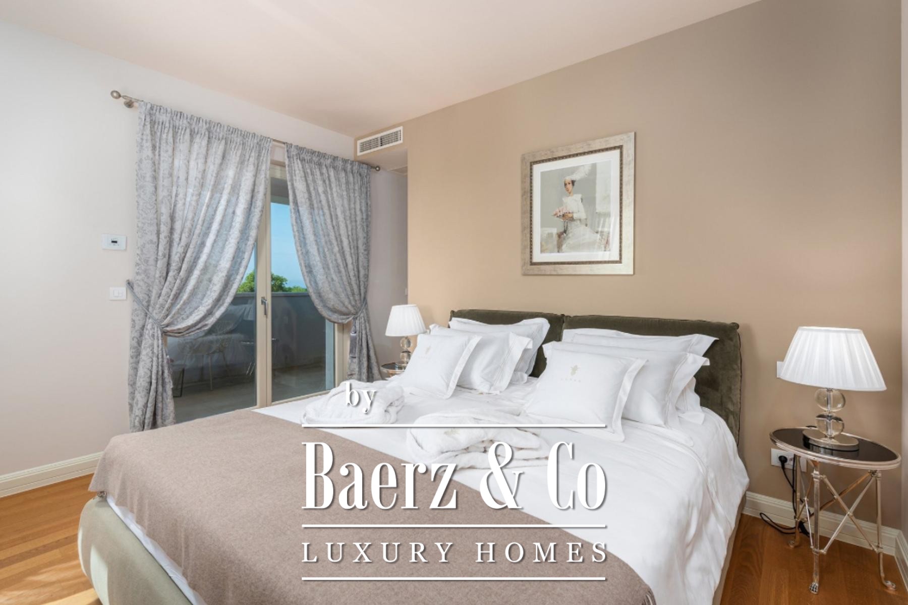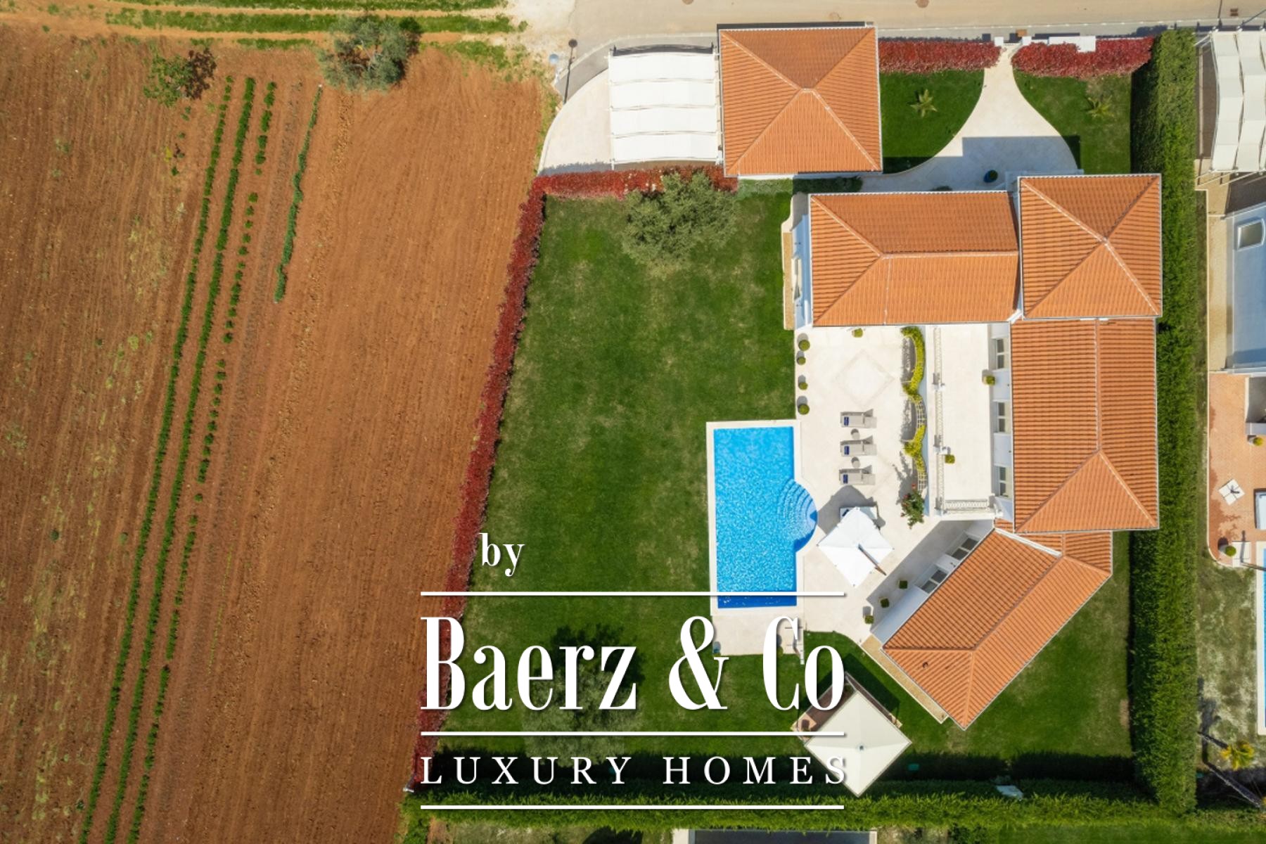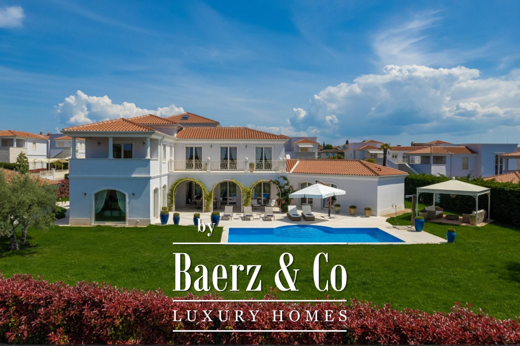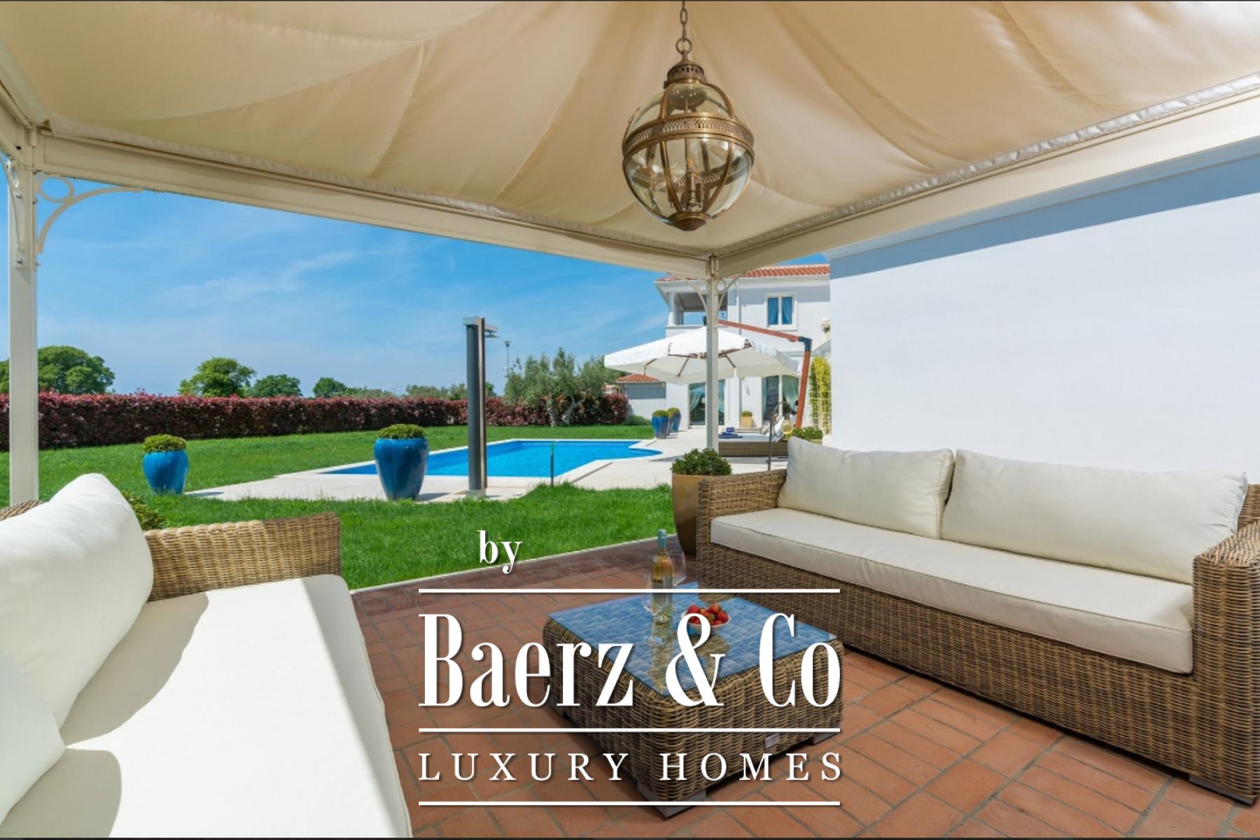 Located in the north-western part of the Istrian Peninsula, in a green oasis full of neatly maintained green areas and olive trees, this 308 m² villa perfectly blends into its natural surroundings, with its impeccably landscaped and maintained garden providing a true sanctuary. The villa is carefully built with attention to every detail, and its interior is a true visual delight that will leave you breathless.The entrance to the villa is marked by large doors leading into a spacious area with high ceilings, making the space even more luxurious and bright. On the ground floor, there is a large, bright living room, a kitchen area, and a dining space with a large table, perfect for family gatherings. From the living room, you have a view of the garden and the impressive 48 m² pool. The covered outdoor terrace with its own barbecue provides the perfect space for relaxation and gatherings in the privacy of the green oasis.On the ground floor, there are also two bedrooms, one of which has direct access to the pool, creating a perfect blend of indoor and outdoor space. A beautiful