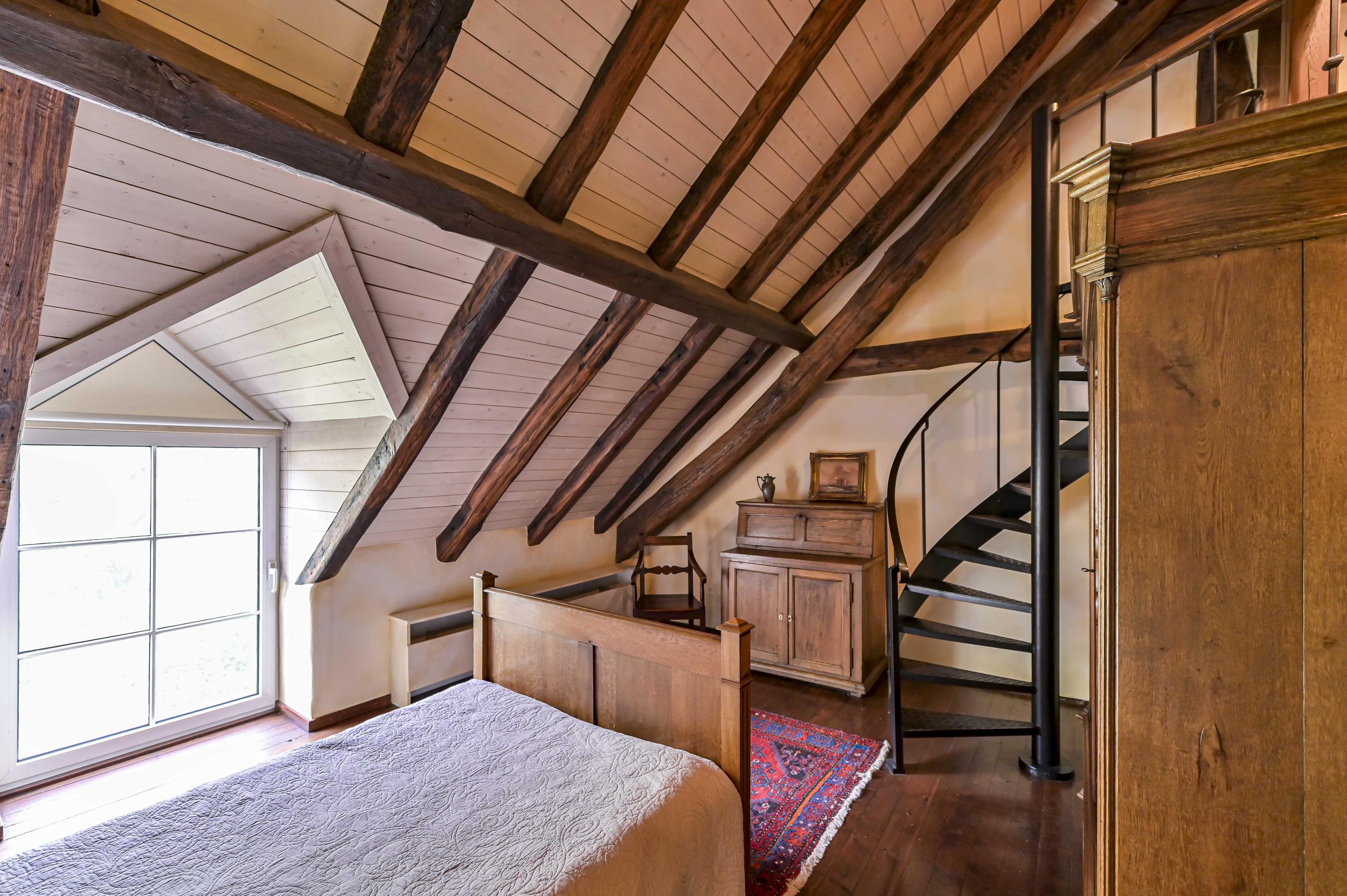 Bedroom 2: approx. 17 m², spiral staircase to mezzanine, washbasin.