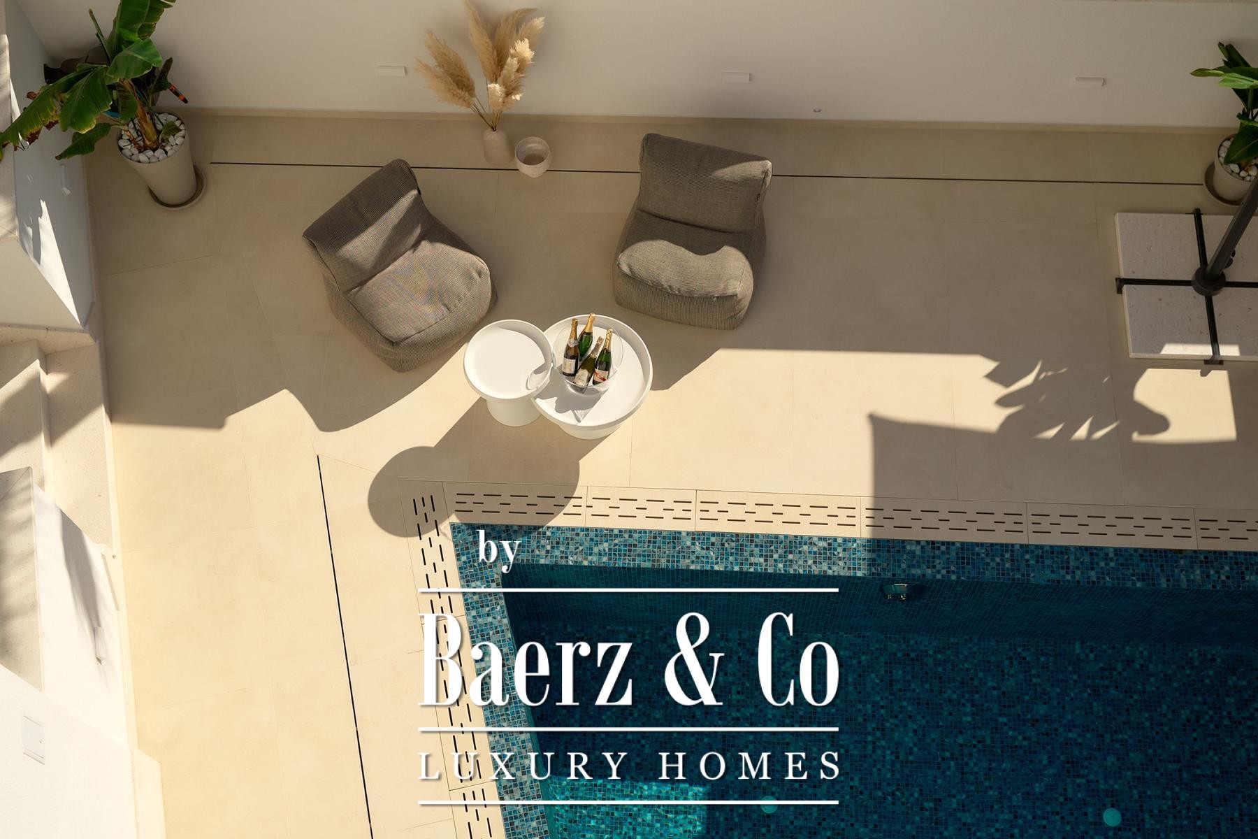 Three bedrooms with en suite bathrooms on the ground floor enjoy direct access to an 18.8 m² loggia. A private garage of 31 m², features electric vehicle charging. The first floor introduces a voluminous 52 m² living area, complemented by a fourth bedroom, additional bath, and expanses of terrace, each vantage point oriented toward the shimmering horizon.