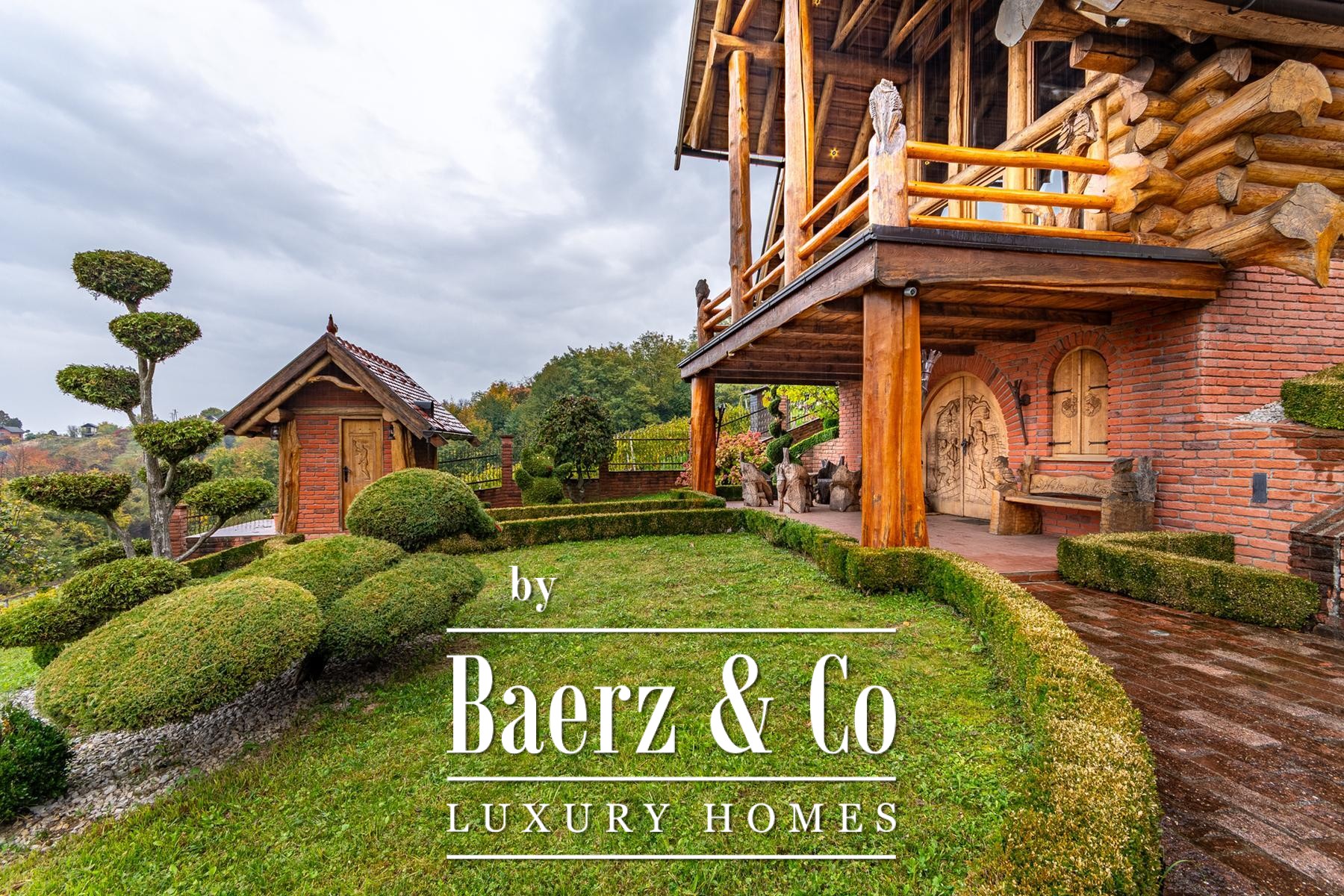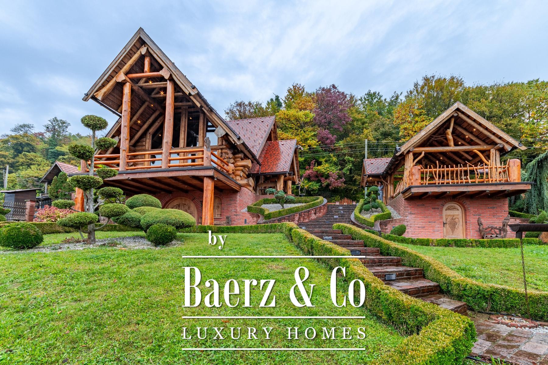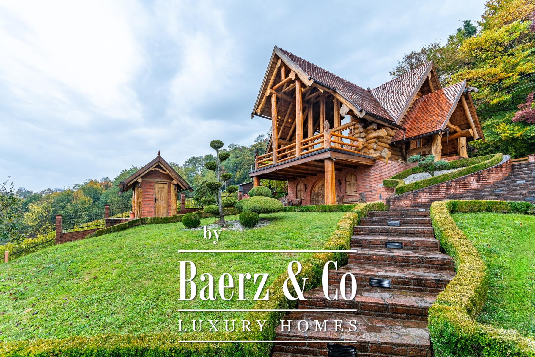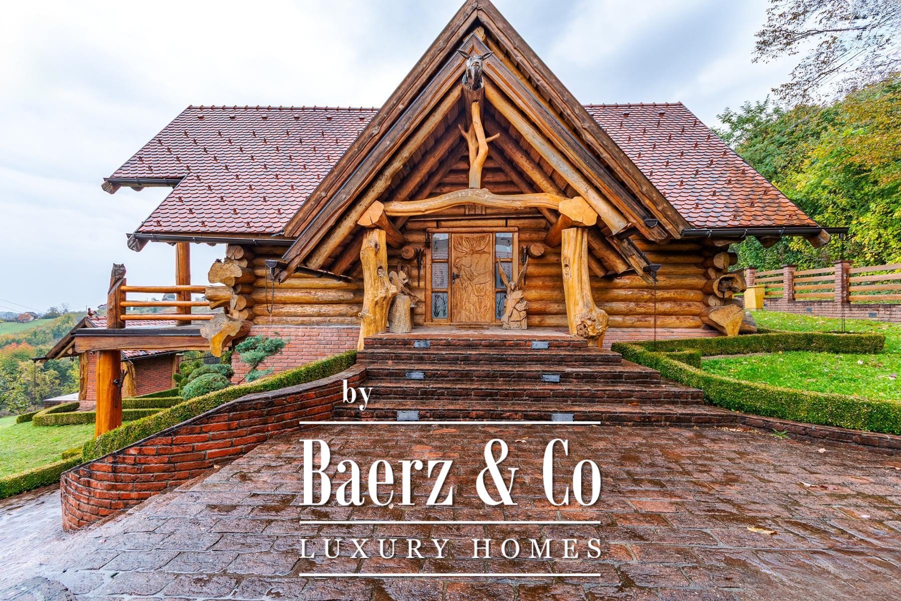 Log House Varaždinske Toplice presents a measured tribute to natural solitude and thoughtful design. This log house in Varaždinske Toplice offers 190 m² of internal space set on 3,378 m² of private land, bordered by forest and vineyards. The approach is marked by a gentle rhythm of landscaped paths and fruit orchards, providing a context of privacy and understated elegance.