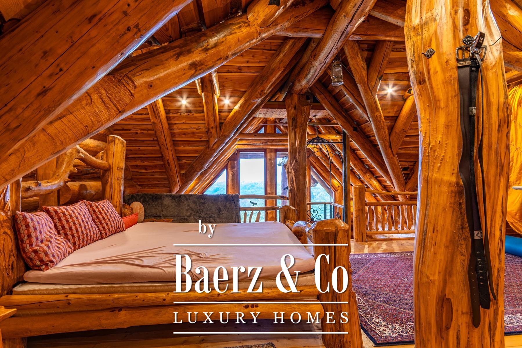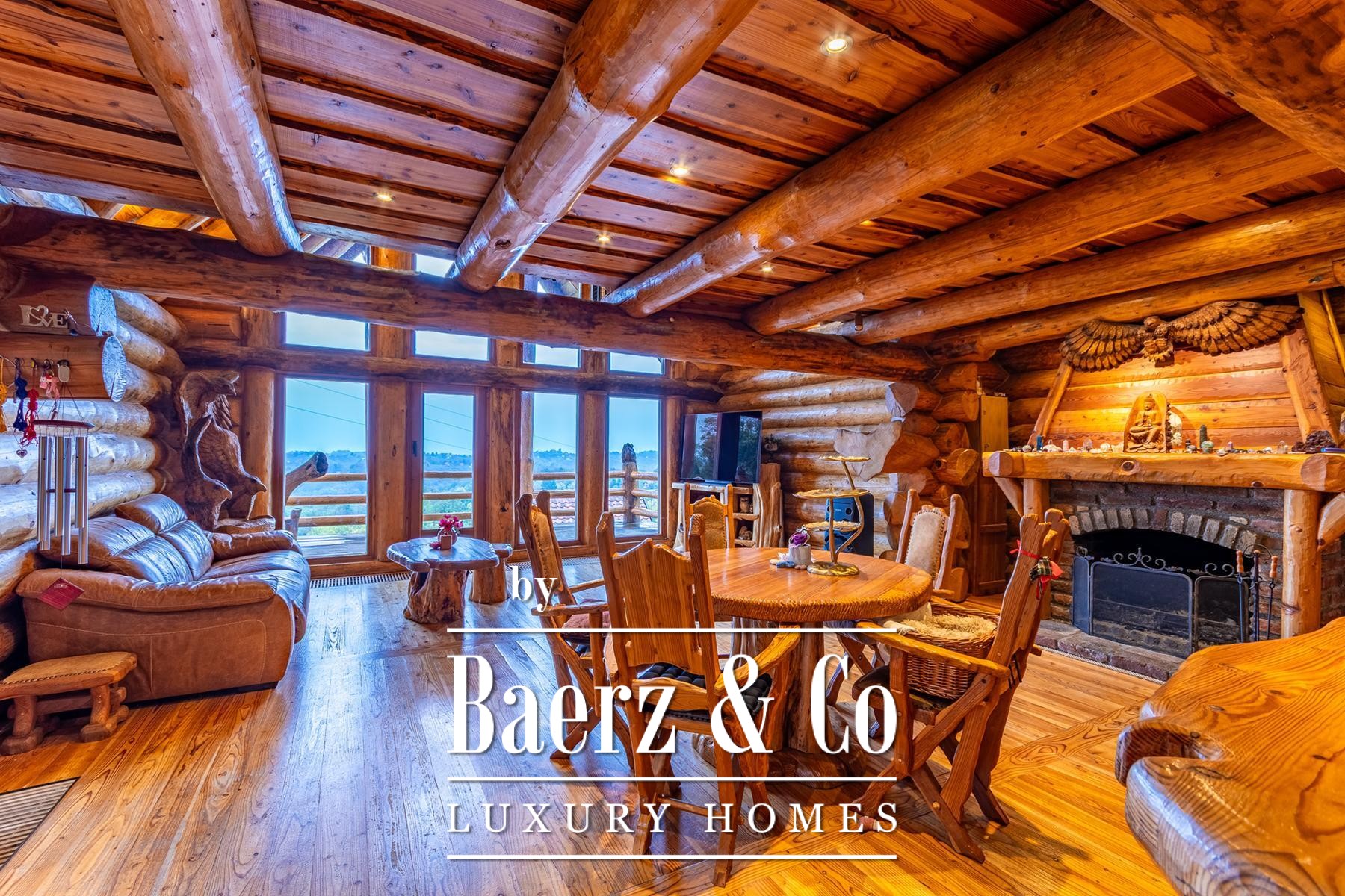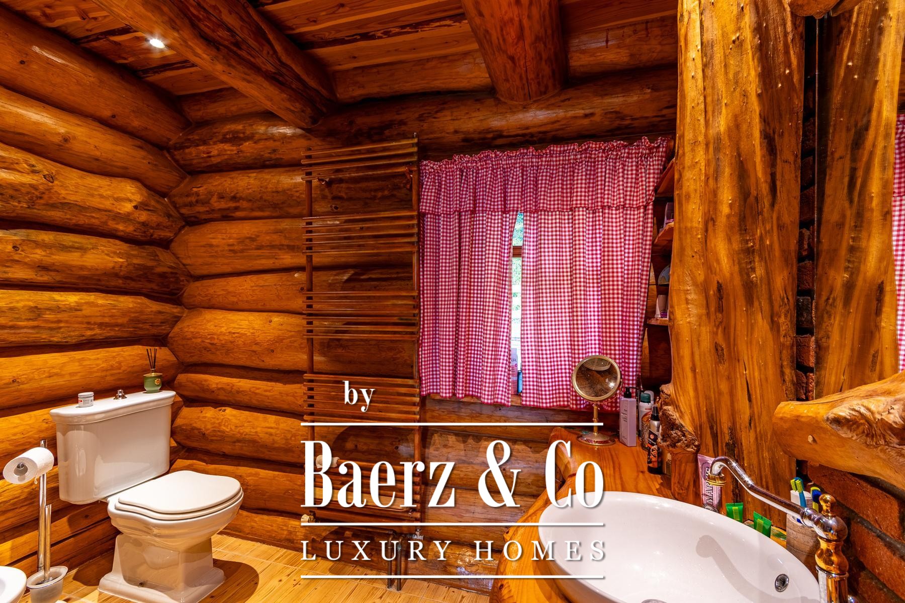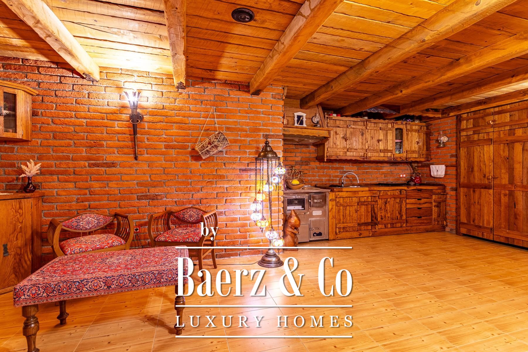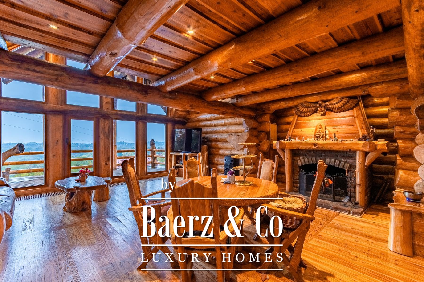 Three auxiliary buildings—a pavilion, workshop, and outdoor toilet—echo the authentic rural character. The grounds, meticulously curated with apple, plum, fig, aronia, and raspberry trees, offer spaces of contemplation and retreat. Panoramic views and deep privacy create a singular atmosphere. This is not simply a log house for sale in Varaždinske Toplice, but a considered retreat grounded in place and material.