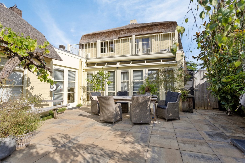 In this stately 1920s villa you immediately experience how authentic charm and contemporary luxury can reinforce one another. The home offers 211 m² of living space and provides generous living areas, an atmospheric living room with multiple seating areas, a beautiful live-in kitchen, four bedrooms, two bathrooms and a spacious garden that feels like an extension of the living comfort. The thatched roof and the warm colour scheme of the façade give the villa its distinctive, almost romantic appearance, while inside everything has been modernised with an eye for quality and ambiance. From the ground-floor bedroom to the large roof terrace and the large detached garage at the rear of the garden: every space tells the same story. This is a home that has been lived in with care and lovingly maintained and improved over the years. A house that feels grand without being distant, inviting you to truly make it your home.