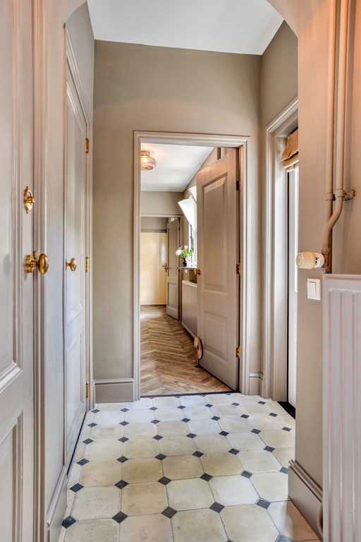 Detached house Veenendaal is where period architecture meets contemporary refinement in the heart of the Netherlands. This stately townhouse, built in 1908, offers 180 m² of living space on a 340 m² plot, distinguished by well-preserved historical features and considered modern updates. From the moment you enter, the atmosphere speaks of authenticity—wooden floors, high ceilings with decorative cornices, and tall windows blending effortlessly with a harmonious extension and thoughtful cabinetry.