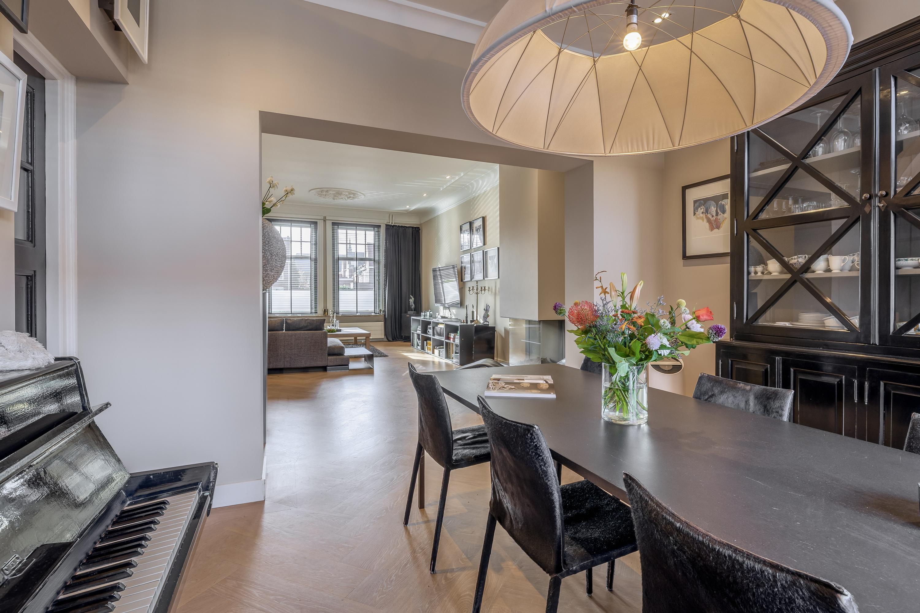 Townhouse Venlo is a remarkable example of 1920s architecture set in the heart of the city, combining historic character with contemporary comfort and a privileged outlook over the Rosarium. This residence spans 225 m² across three levels, offering five bedrooms, two bathrooms, and an abundance of natural light throughout. From the wide entrance hall with its Bianco Carrara marble tile floor to the spacious living room finished in French oak herringbone parquet, every space resonates with quiet refinement and authenticity.