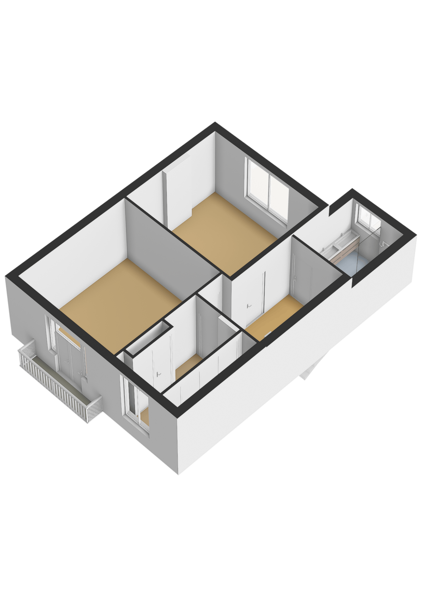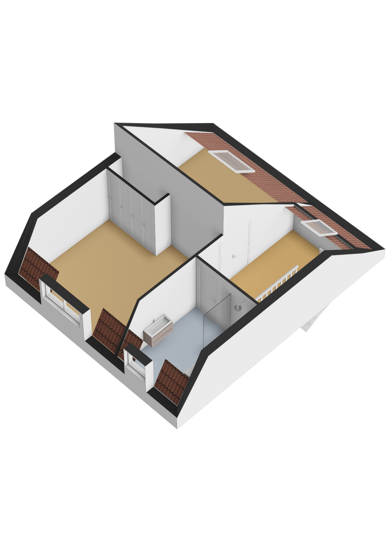 From the landing, the two bedrooms, the walk-in closet (optional fifth bedroom) and the bathroom are accessible.