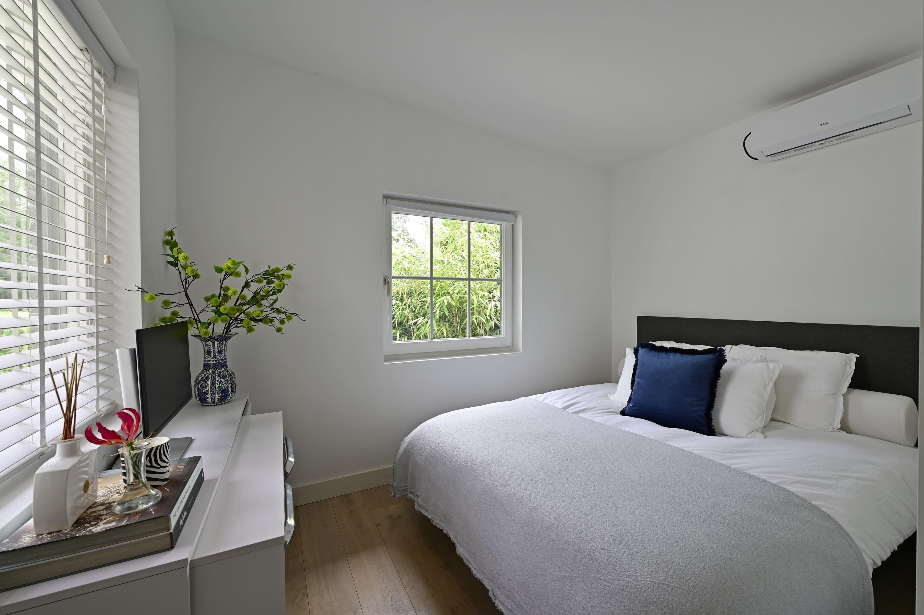 Stepping inside, the open-plan living area flows around a premium kitchen fitted with Siemens appliances and a dedicated barista corner, designed for culinary clarity and effortless gatherings. Three serene bedrooms on the ground floor, each with en-suite bathrooms, offer flexible arrangements for family and guests, as well as a separate office for privacy and focus. The master suite above features a lounge, walk-in closet, and its own bath, easily reconfigurable for adaptive needs.