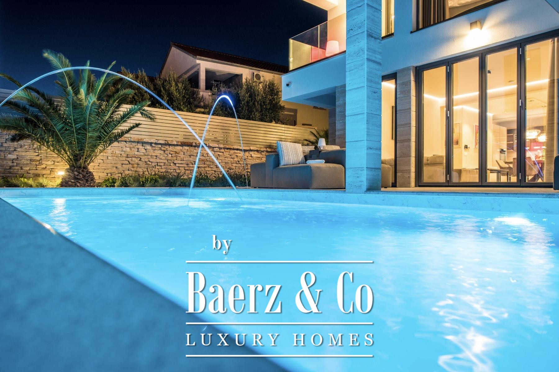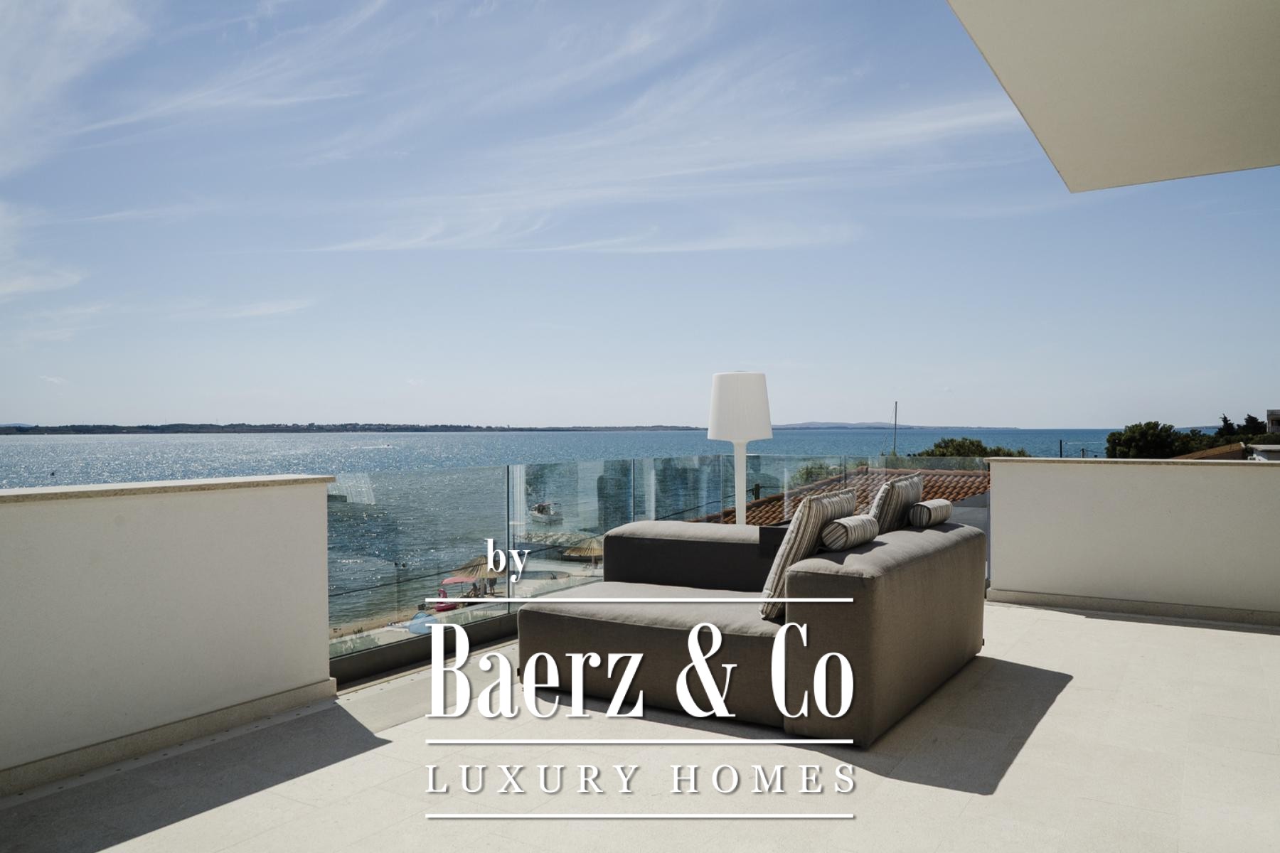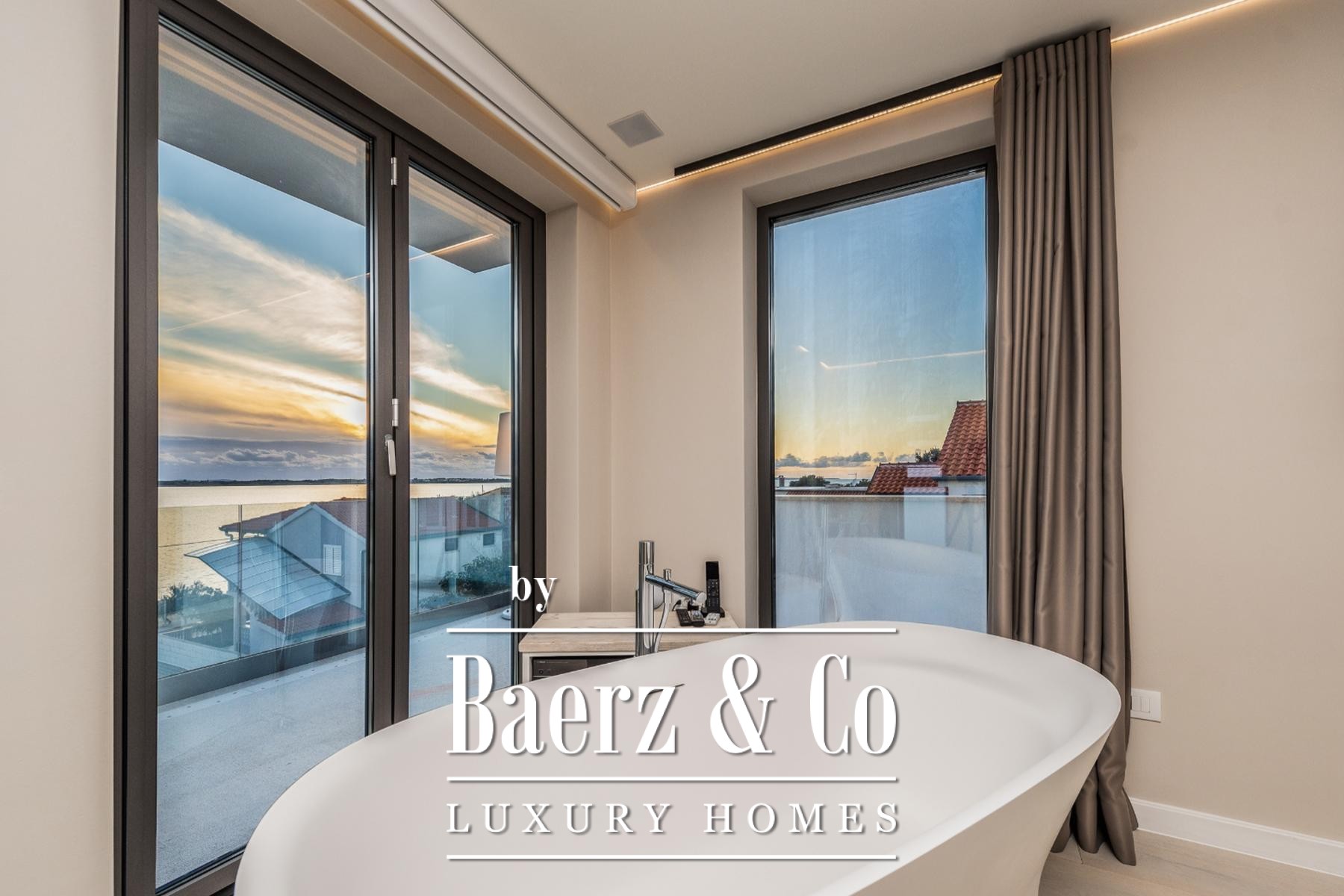 Beachfront villa complex Vrsi presents a rare opportunity to acquire two modern, fully equipped villas with direct contact to the Adriatic Sea. Completed in 2020, this exclusive property occupies the first line to the beach, where open sea and bay views define the experience from every room. Generous floor-to-ceiling windows invite Mediterranean light and vistas into carefully curated interiors, balancing privacy and openness for family gatherings or time with friends.