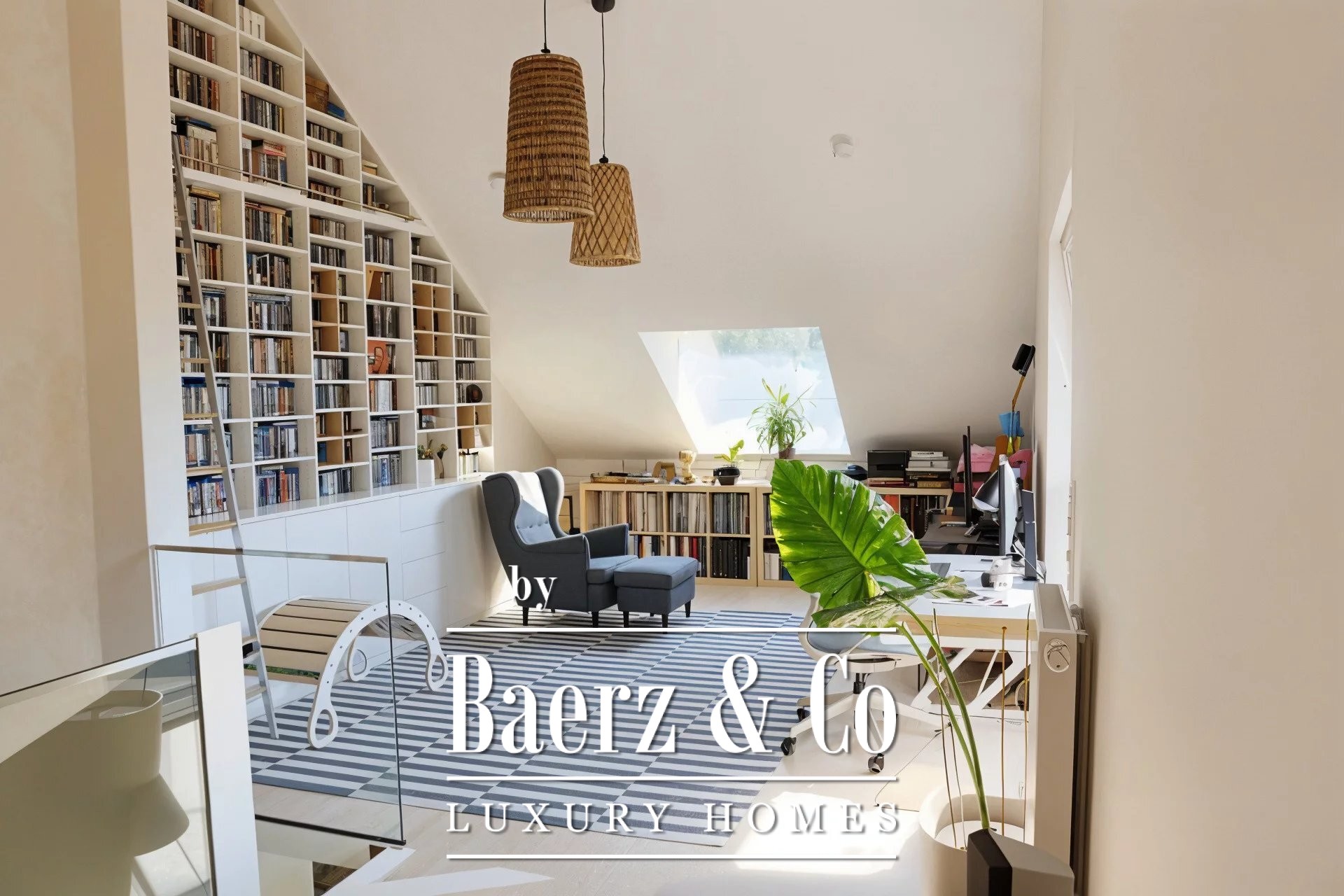 The attic has been converted into a large 37 m² office-library, a versatile space that can become a games room, guest bedroom or relaxation area, depending on your desires, ideal for those who practice Home Office.