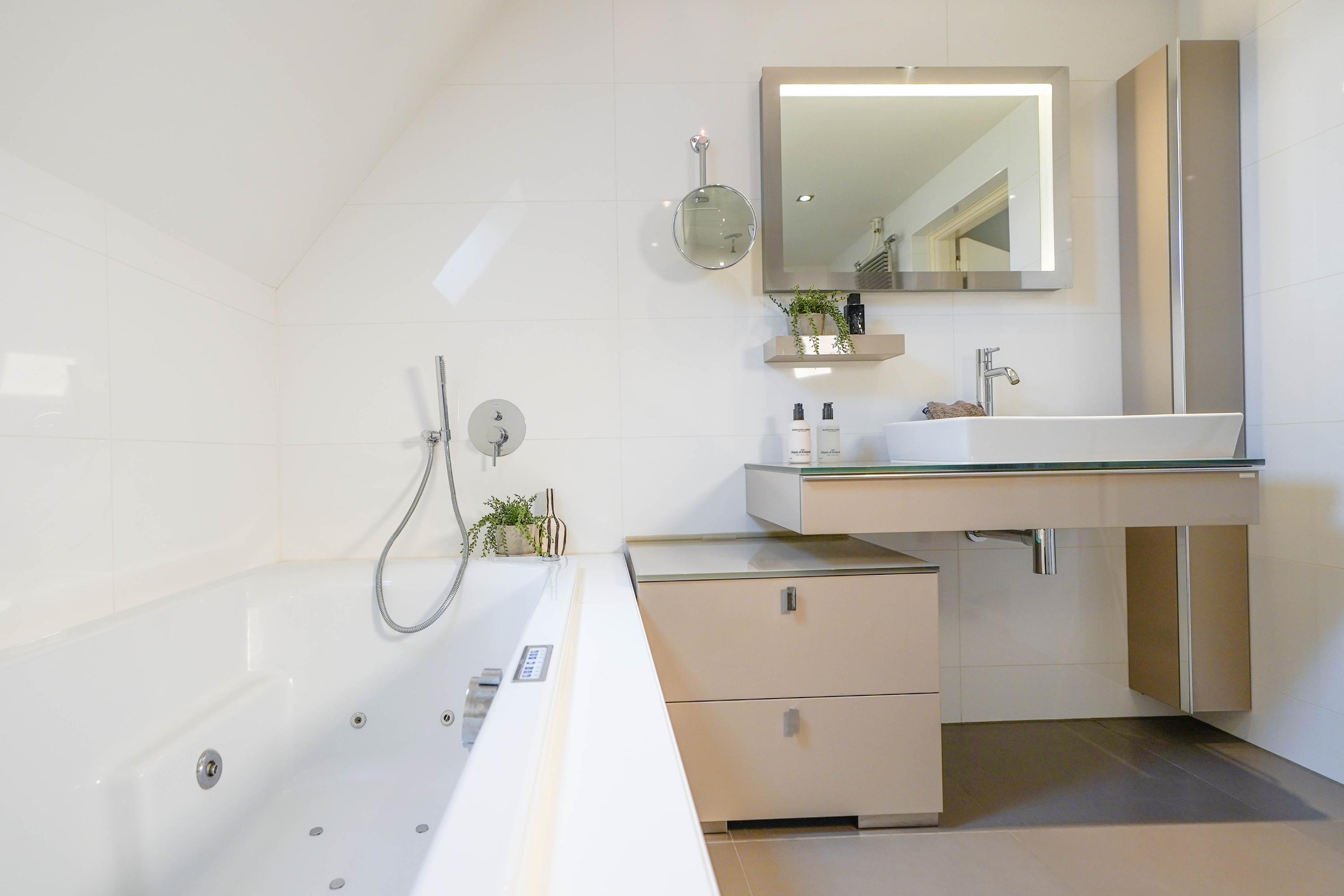 Upstairs, the master suite stands apart with a private bathroom, underfloor heated, and access to a roof terrace. Children’s bedrooms offer sleeping lofts, and a dedicated study with water views and custom cabinetry completes the first floor. Throughout, insulation and double glazing create quiet comfort. Communal gardens and the inner harbour are professionally maintained, while mooring for a boat is included.