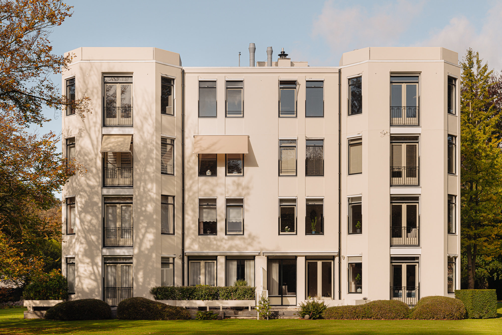Prachtig gelegen 4-kamer penthouse (ca. 265 m2 woonoppervlak) met grote balkons op de derde verdieping van een kleinschalig appartementencomplex op het Landgoed Rust en Vreugd. Oorspronkelijk waren het twee appartementen, maar in 2009 is het geheel verbouwd en met zorg opnieuw ingedeeld. Hier treft u hoogwaardige materialen en luxe details aan, waaronder een op maat gemaakt interieur en airconditioning. Tevens twee parkeerplaatsen en een berging in de onderbouw.