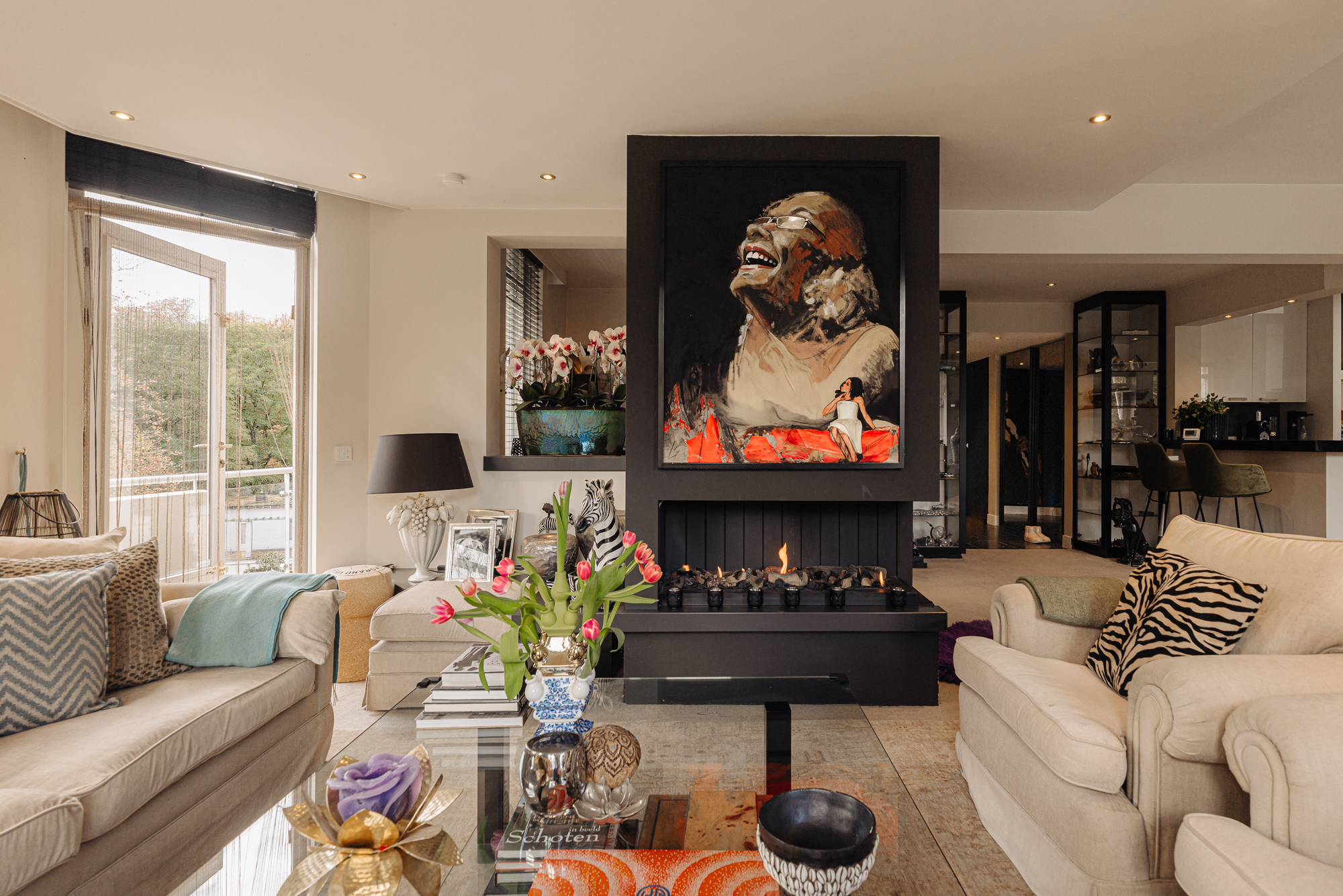 Beautifully situated 4-room penthouse (approx. 265 m² living space) with large balconies on the third floor of a small apartment complex on the Rust en Vreugd Estate. Originally two apartments, it was completely renovated and redesigned in 2009. You will find high-quality materials and luxurious details, including a custom-made interior and air conditioning. There are also two parking spaces and a storage unit in the basement.
