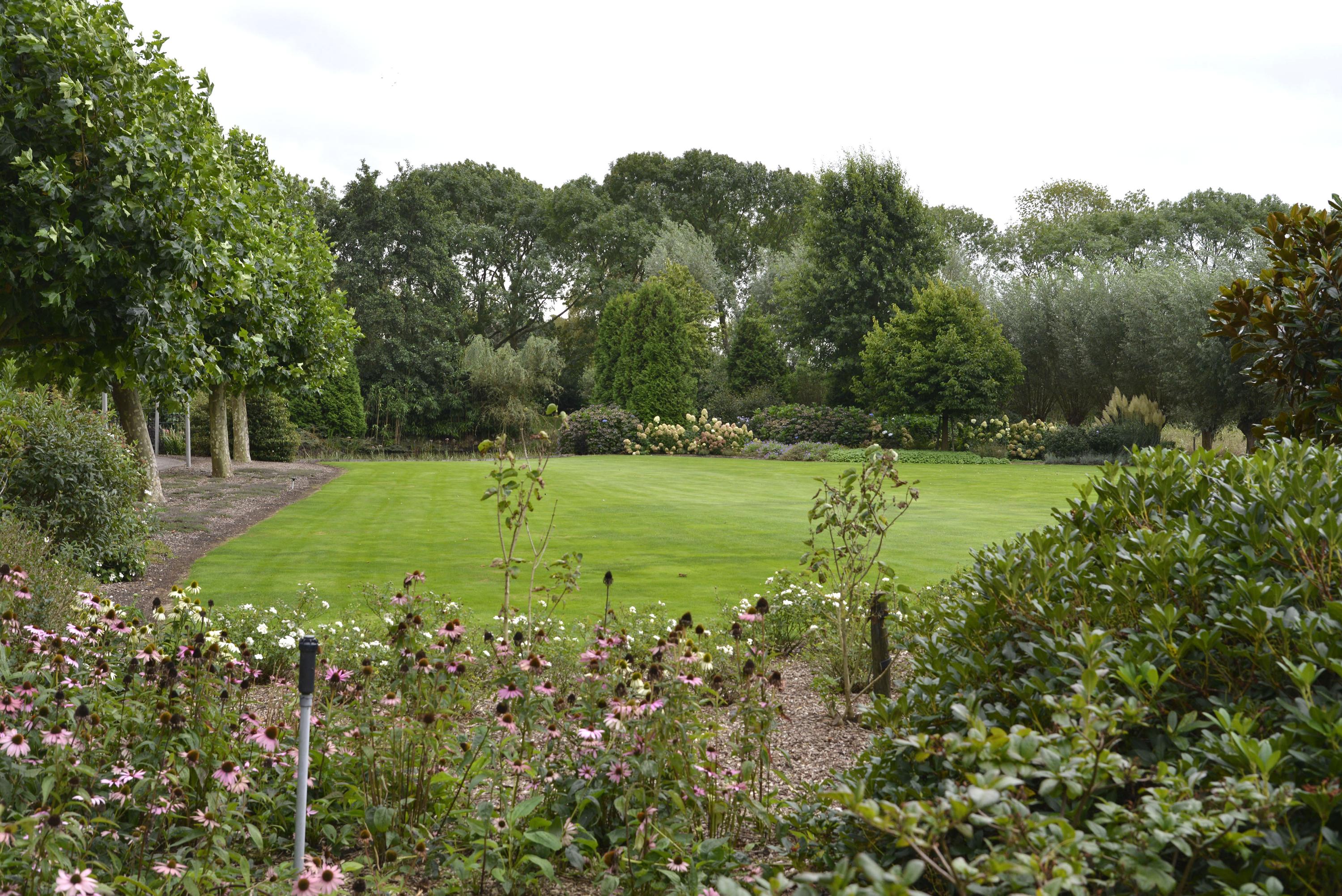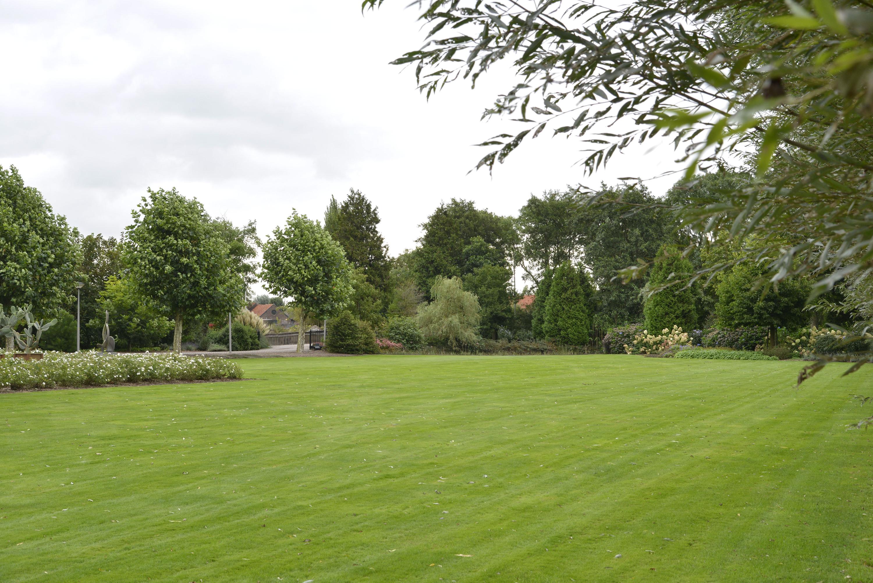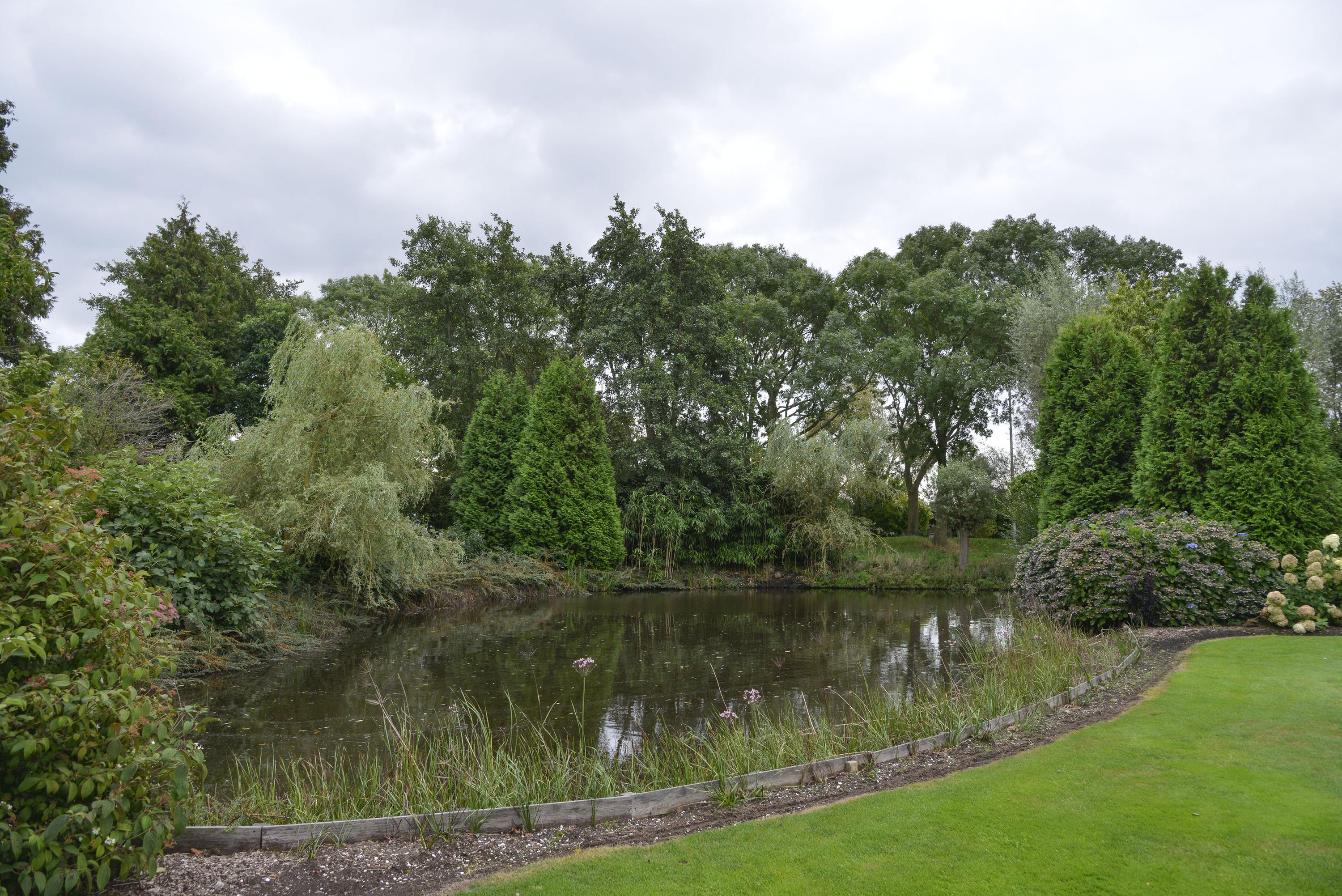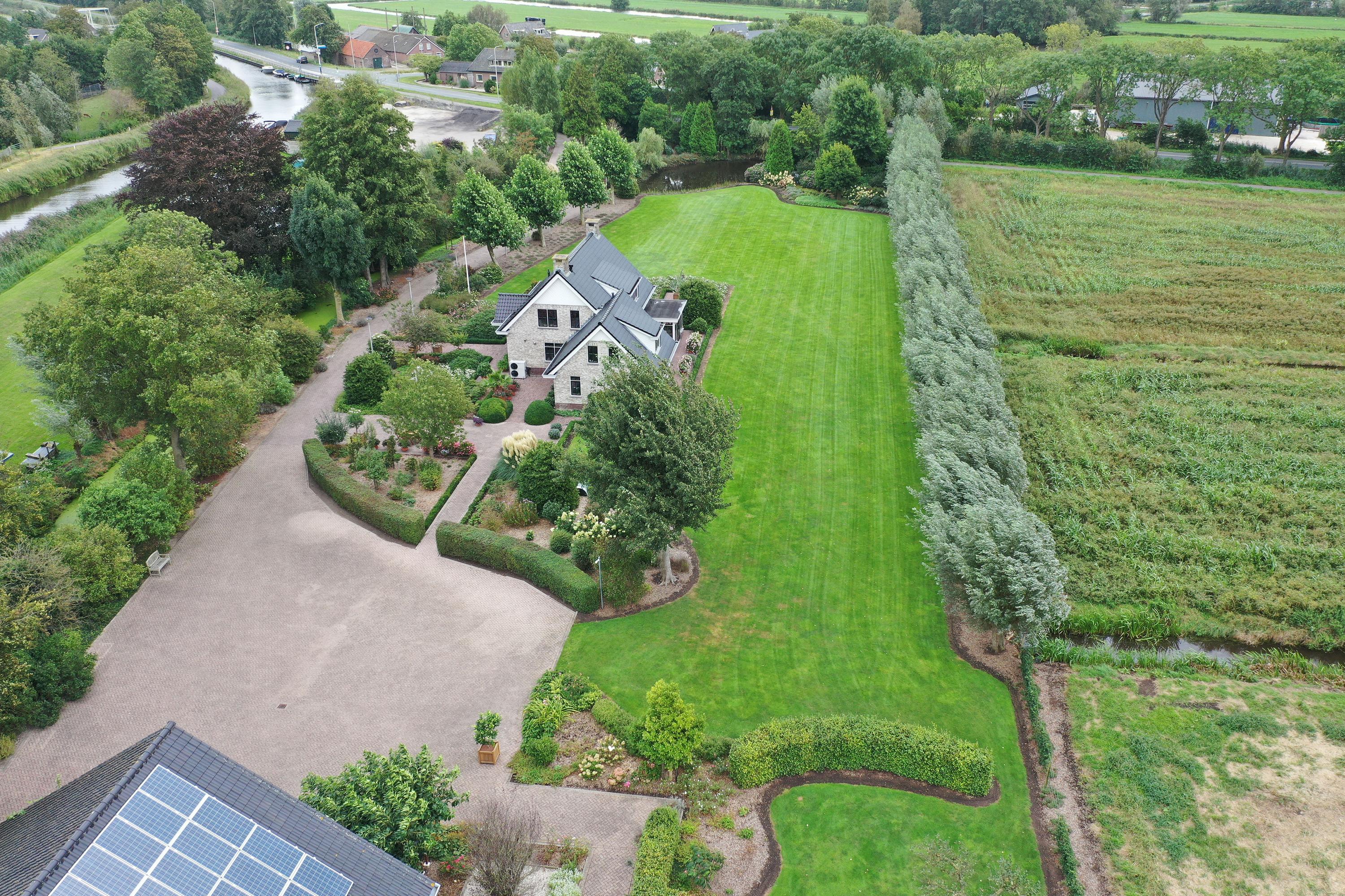 Behind the shed extends an expansive grassy field of over 30,000 m², ideal for nature and space lovers. Keeping animals such as horses, sheep, goats, or chickens is no problem here. The garden around the house is a true masterpiece of greenery and tranquility. With beautifully maintained (fruit) trees, shrubs, blooming plants, and an abundance of greenery, this garden offers an idyllic retreat for relaxation and experiencing nature. Additionally, next to the dike is a captivating natural garden where you can enjoy wildflowers and the beauty of nature in its purest form.