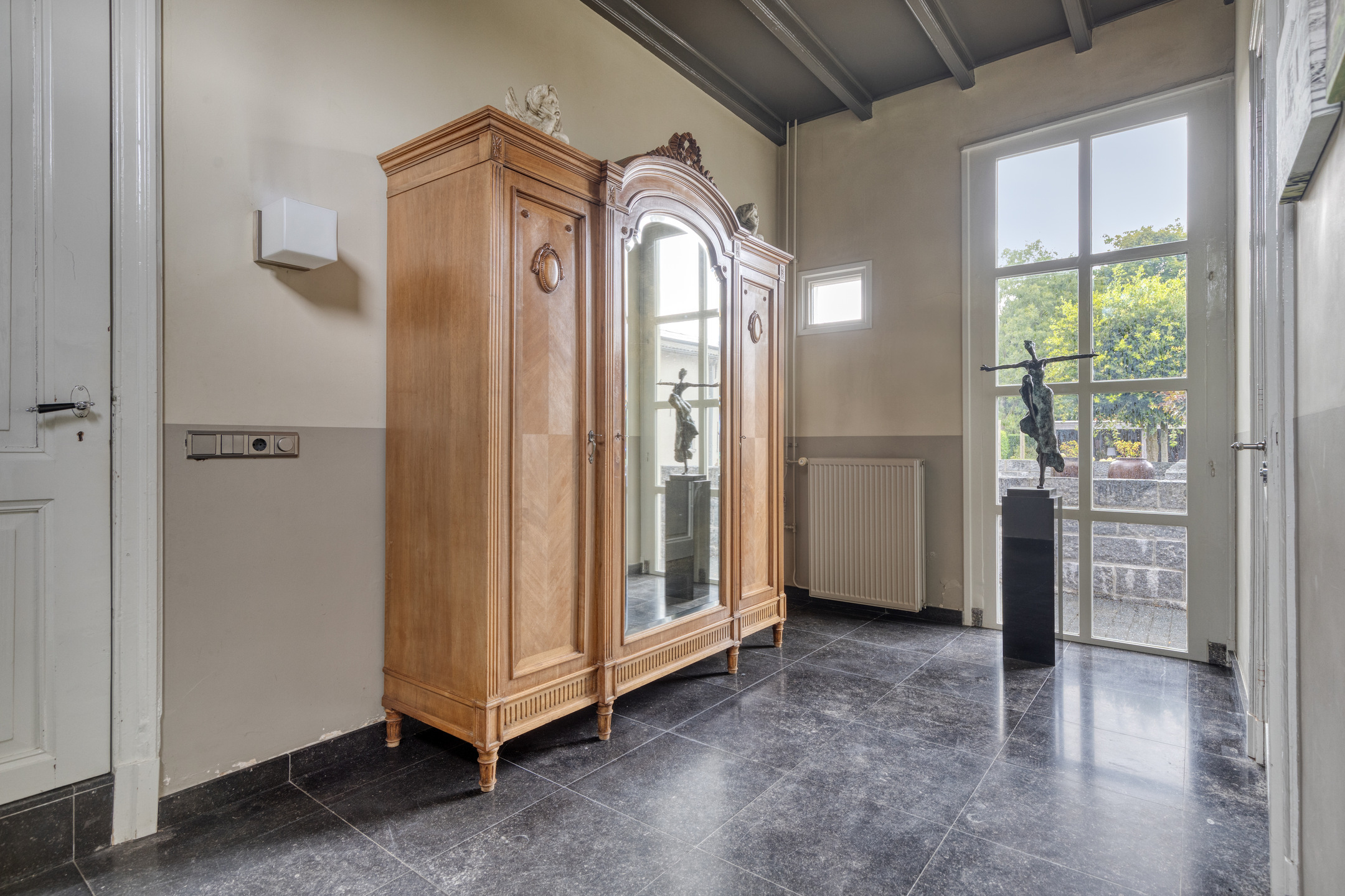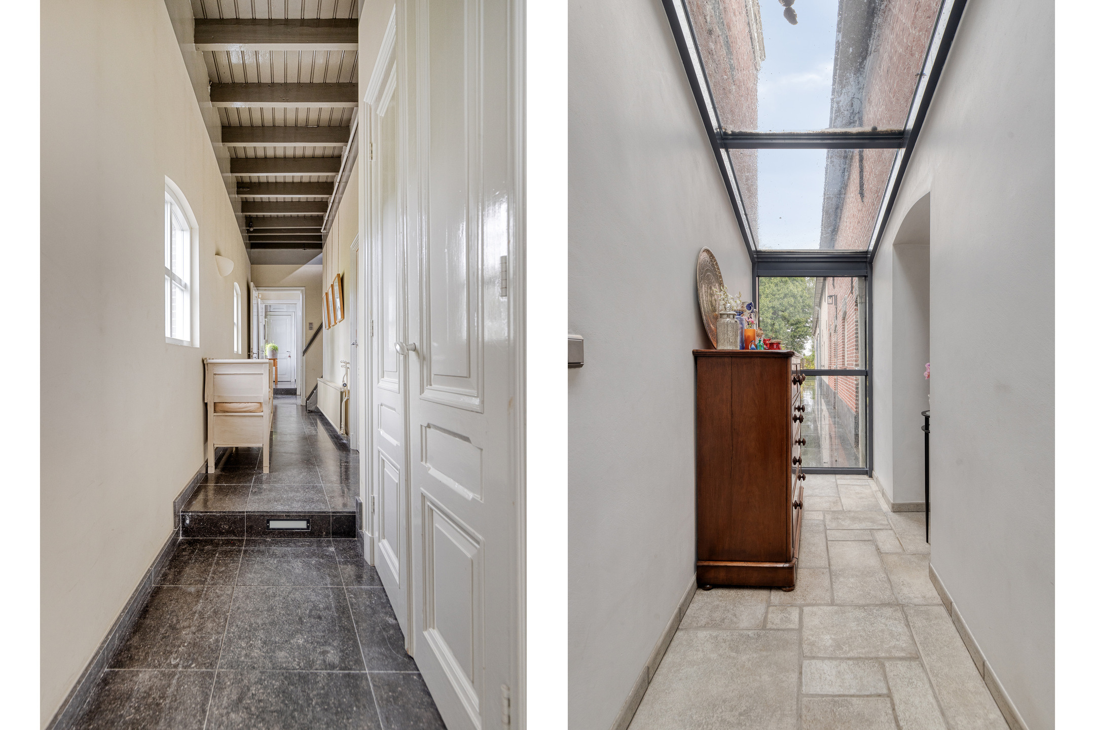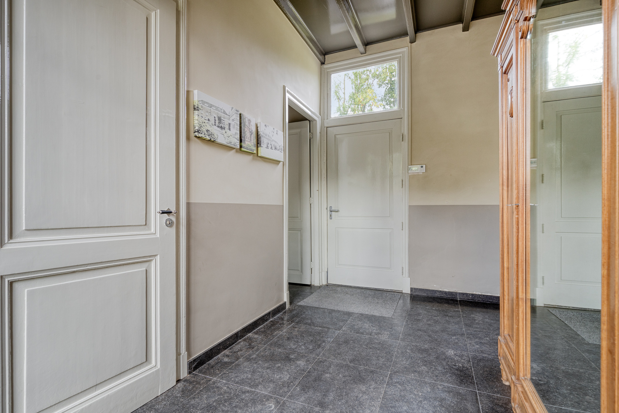 Hal/entree voorzien van een authentieke lambrisering en granieten vloer, authentiek bewerkt plafond;