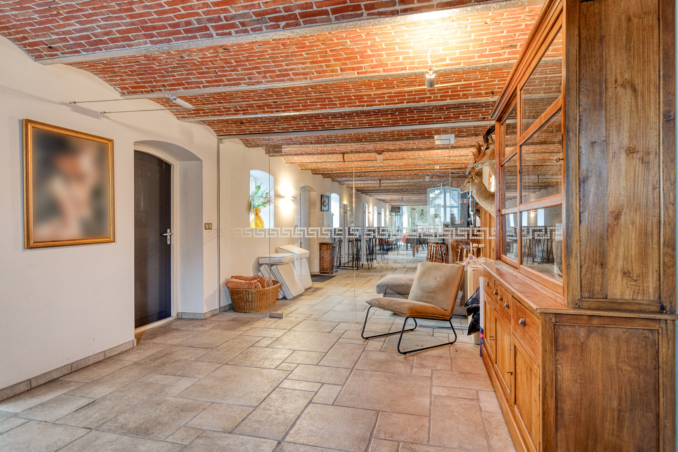 ontspanningsruimte met een complete barinrichting, wandafwerking stucwerk, tegelvloer, gewelvenplafond;