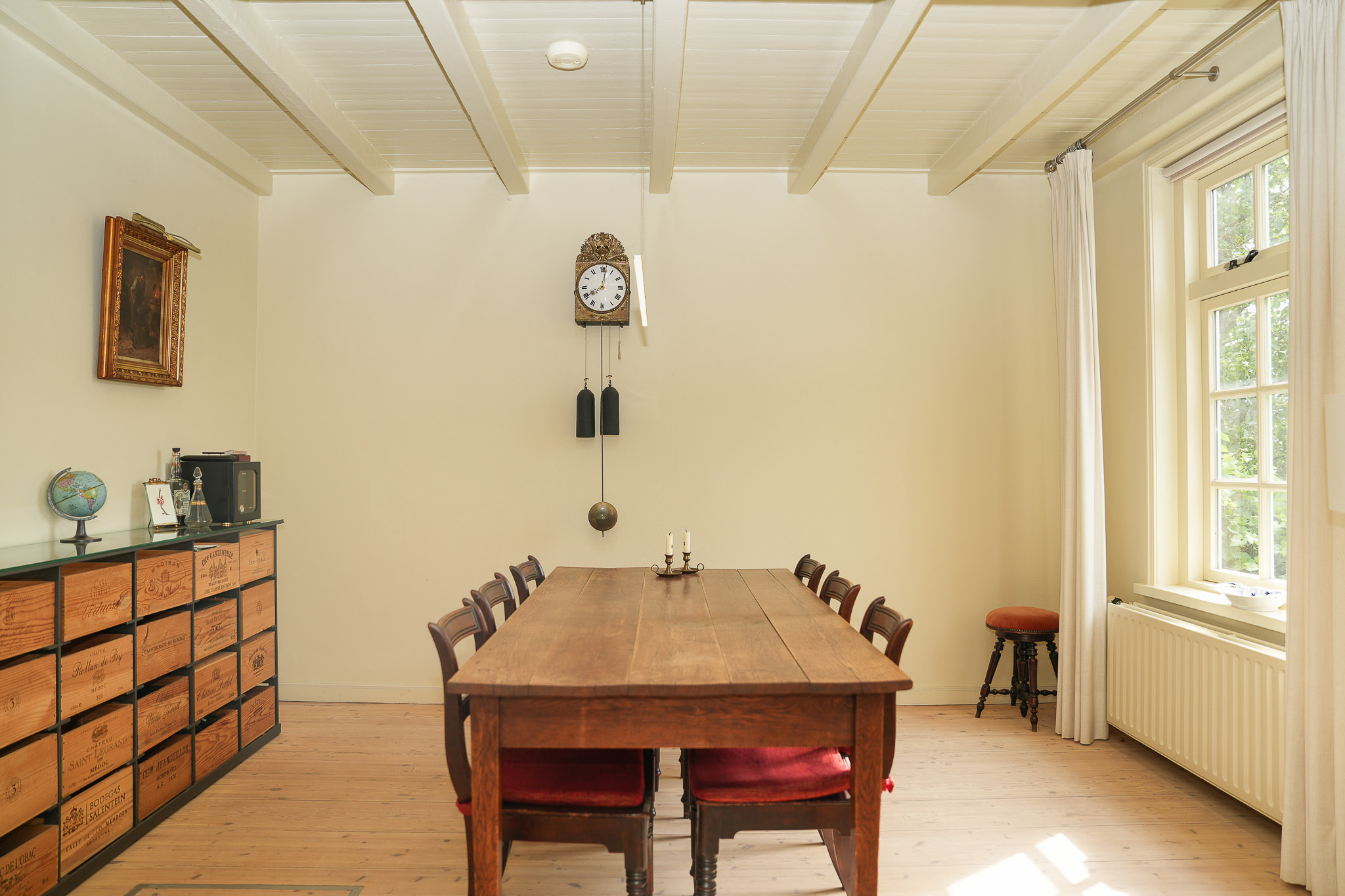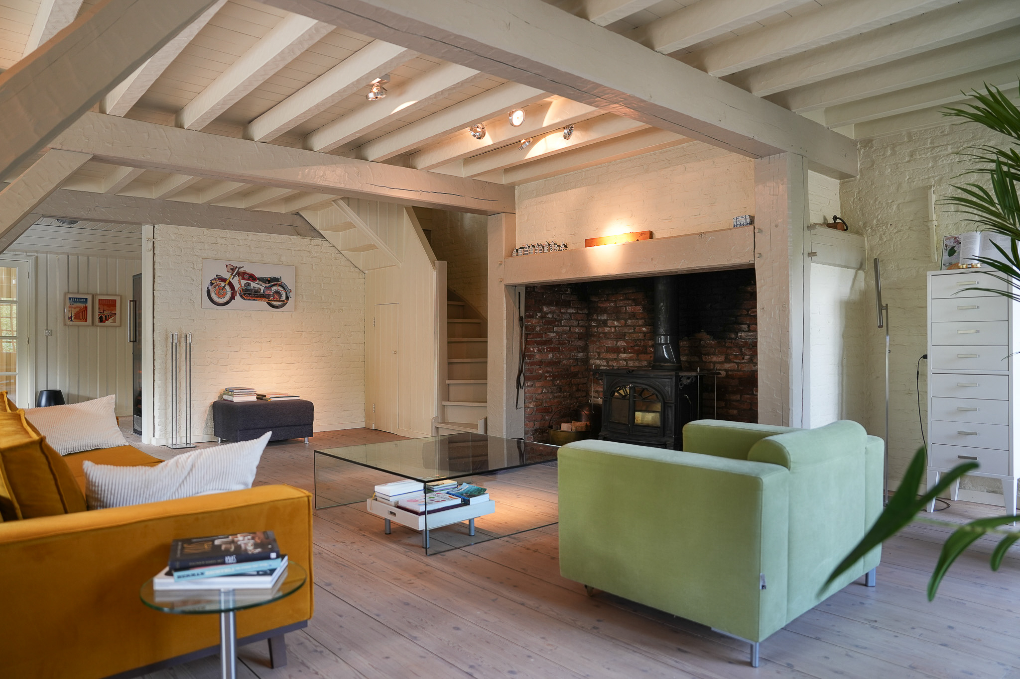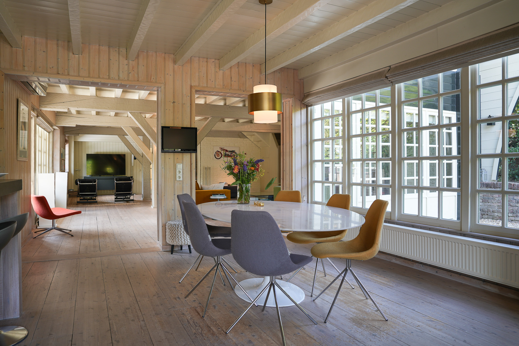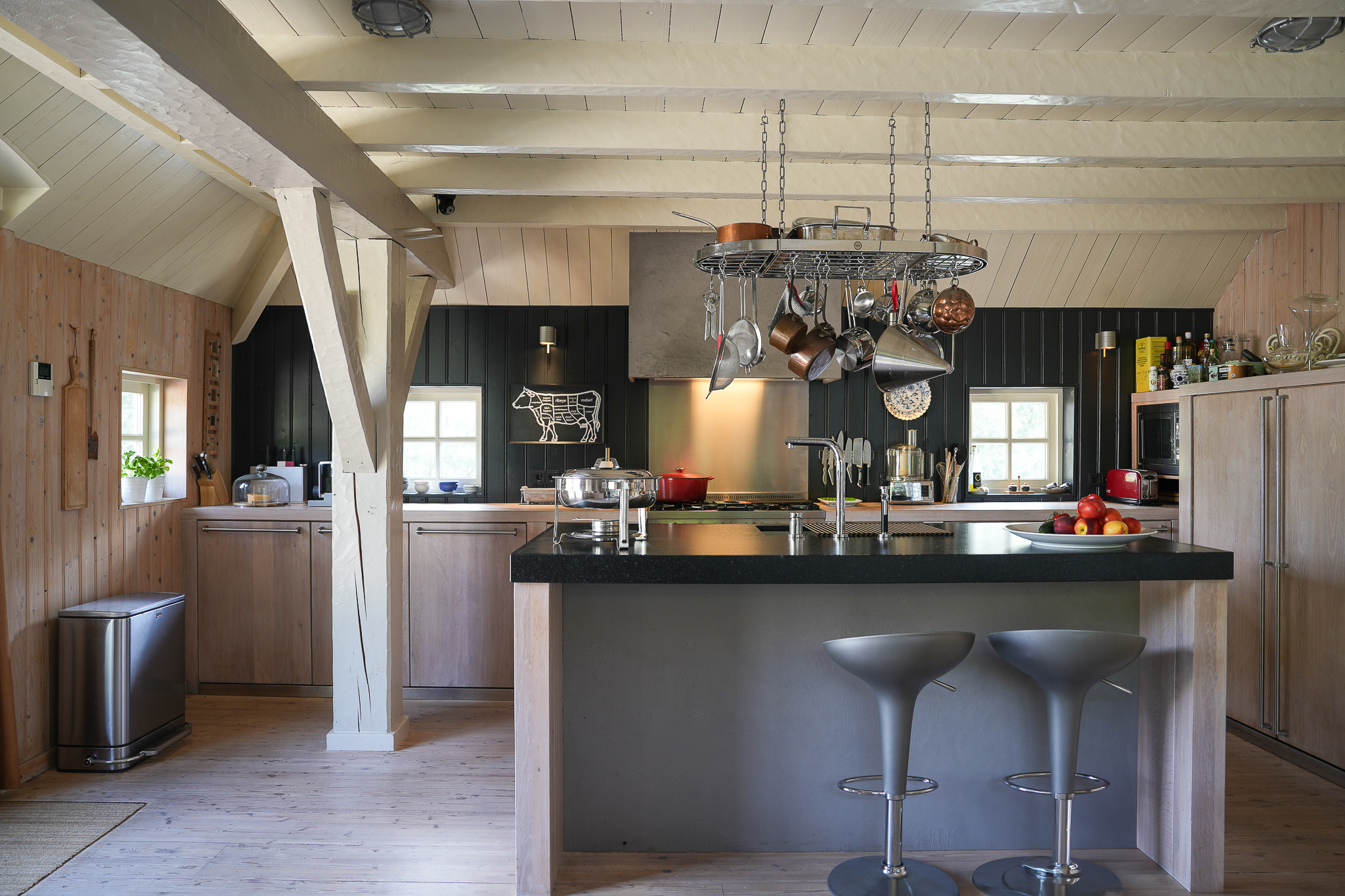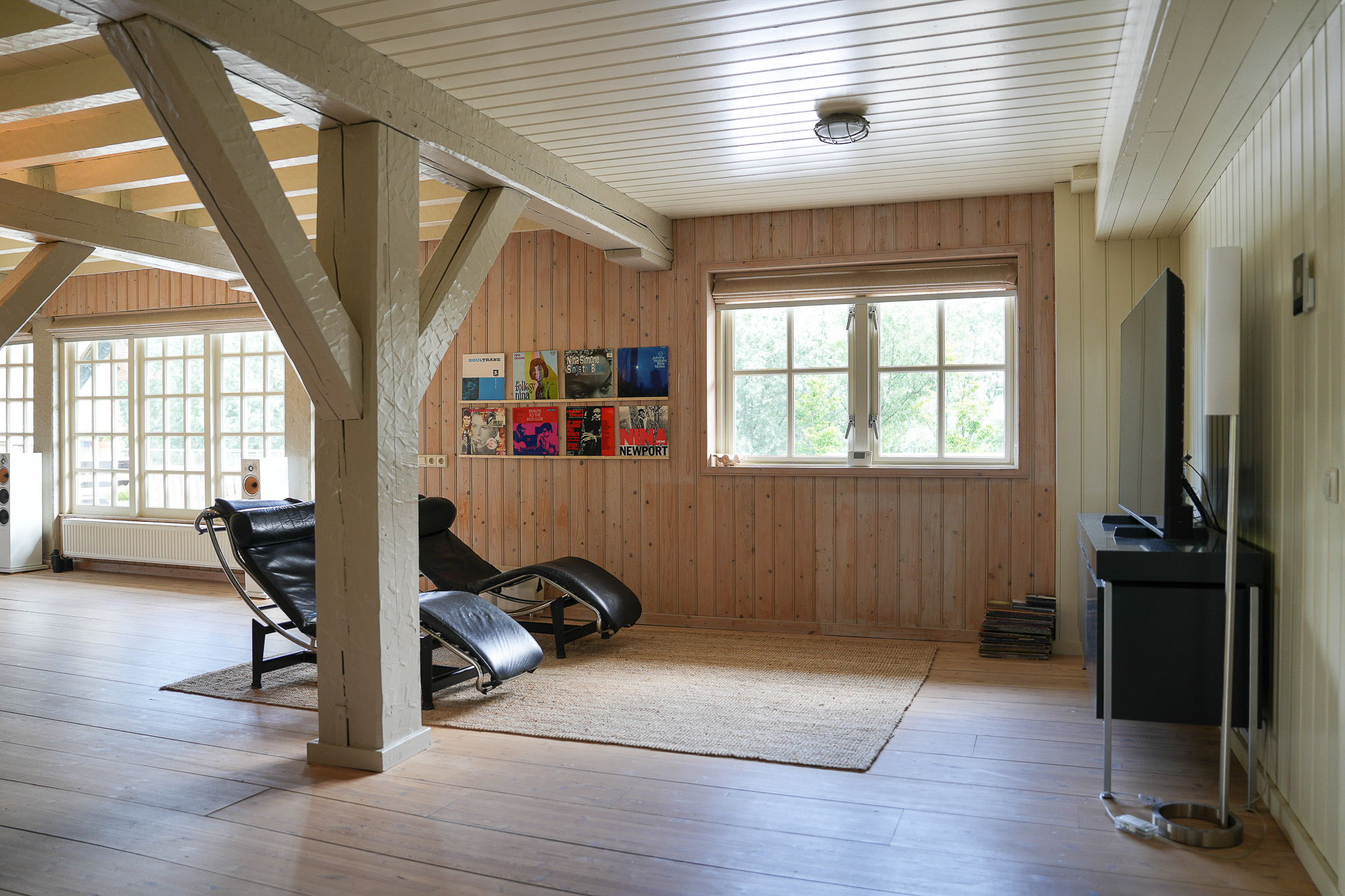 Country house Zuilichem stands in a tranquil rural setting near the banks of the river Maas, offering a calm retreat on a plot spanning 2,060 m². The country house presents 328 m² of living space, enhanced by a gross volume of approximately 1,090 m³, with a layout and material palette that prioritise sense of place and timeless comfort. Arriving via the elevated hardwood terrace, the entrance opens into a generous 140 m² living area where wide wooden floorboards, a wood-burning stove, and ample natural light set a warm, inviting tone. The fully fitted kitchen contains premium appliances and accommodates both daily routines and gathering spaces, leading out to a second terrace adjoining the driveway.