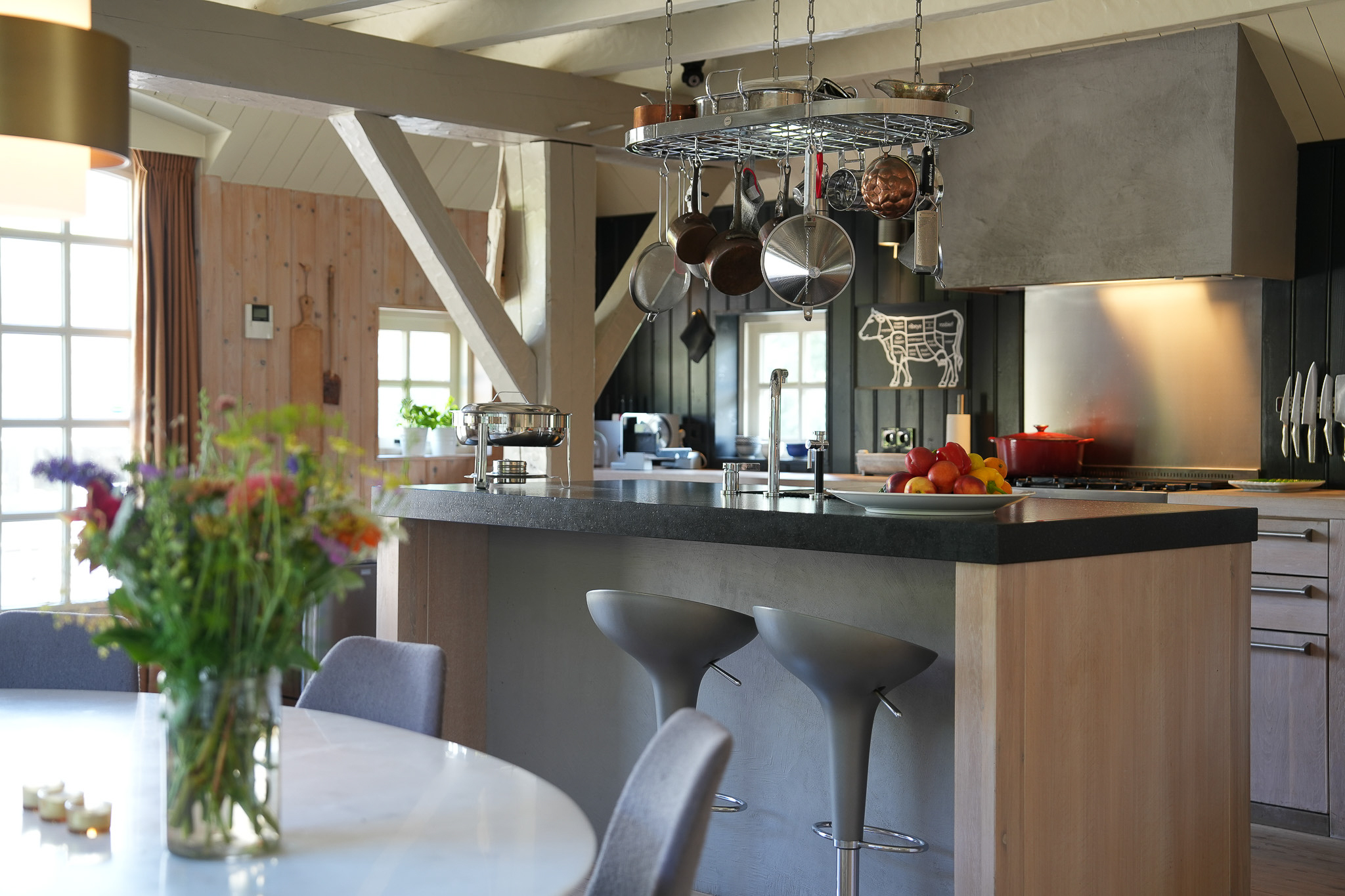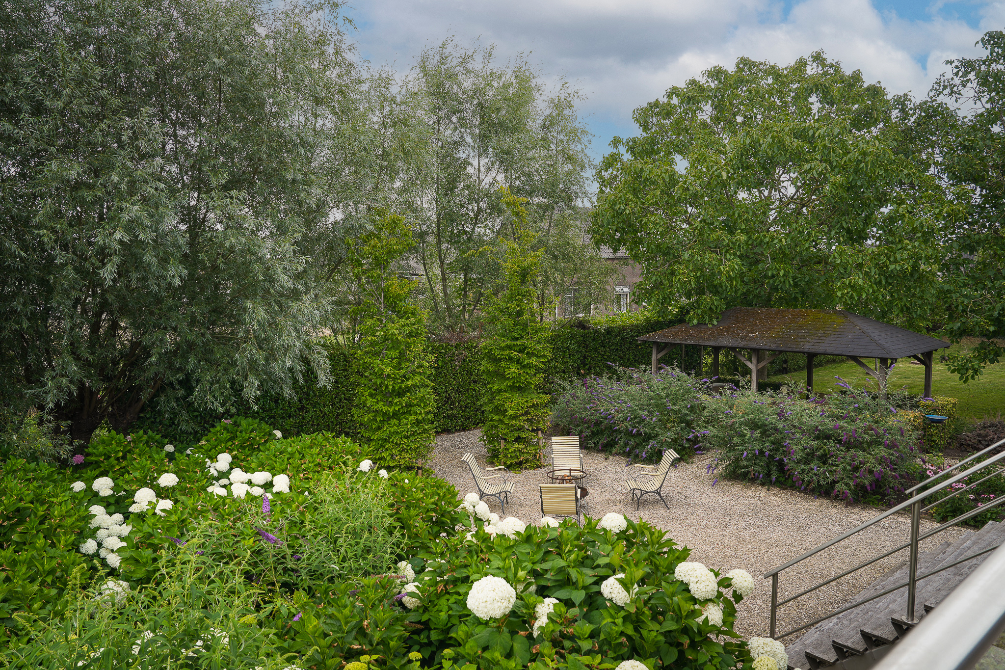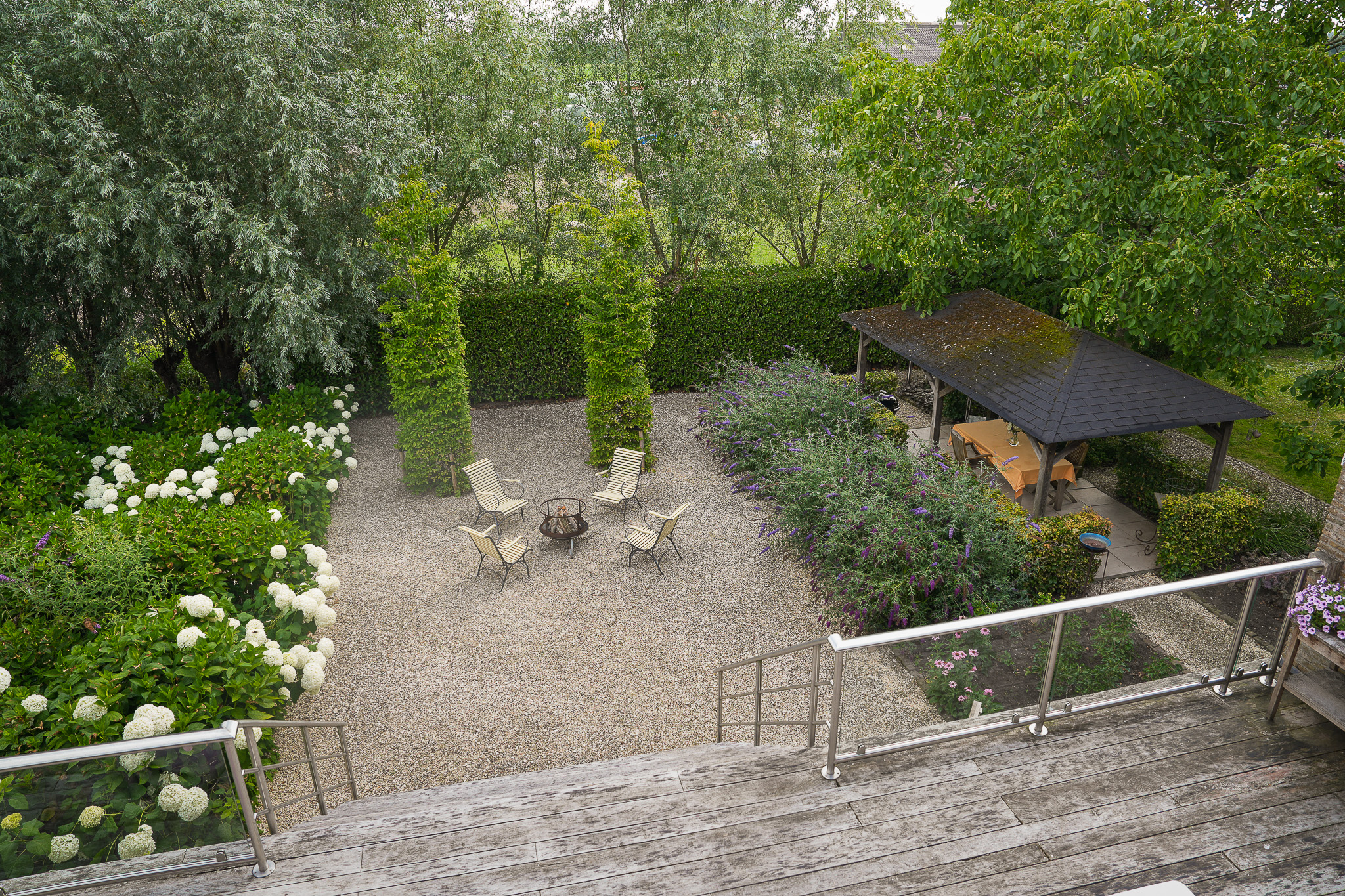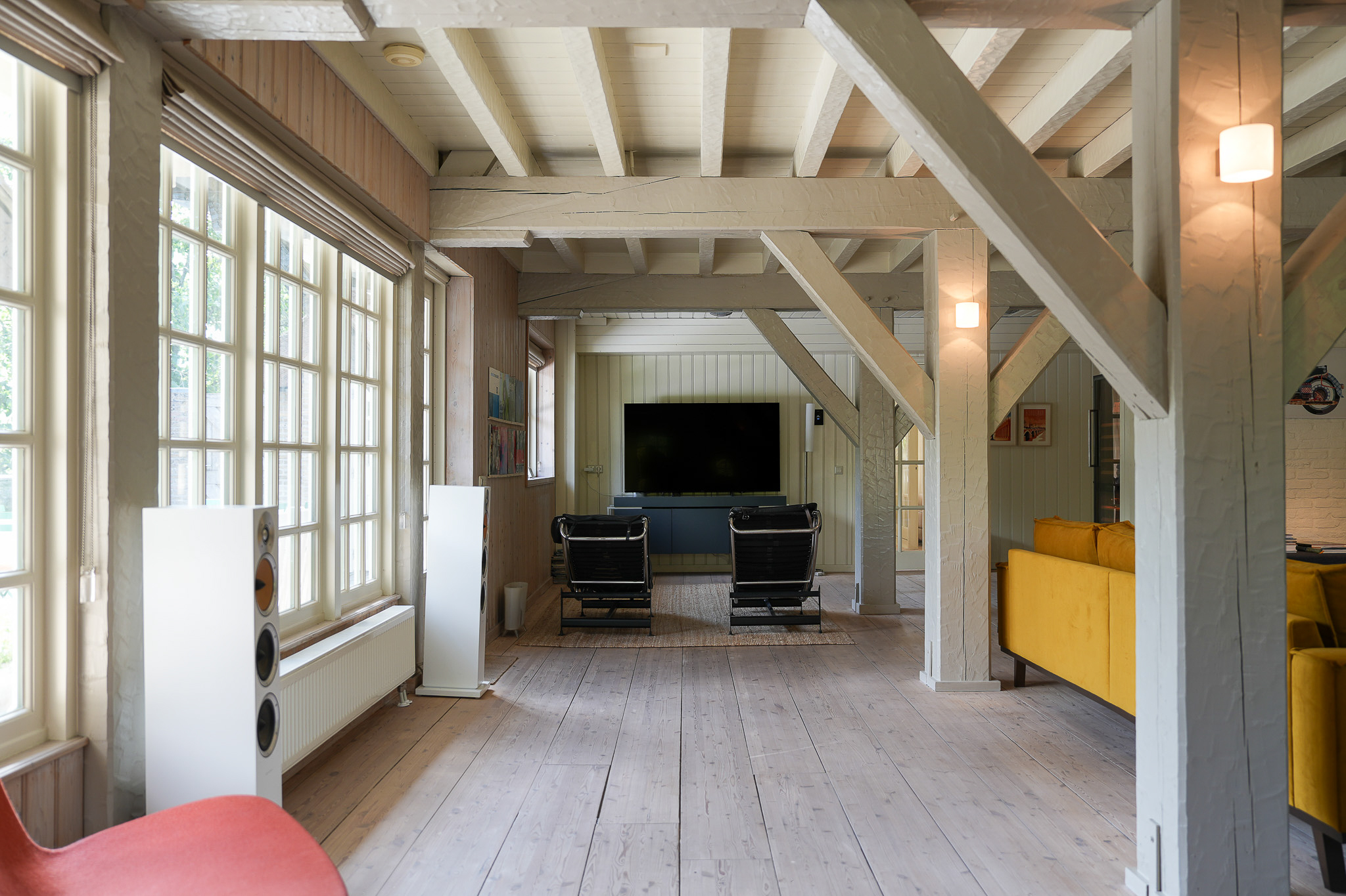 Country house Zuilichem stands in a tranquil rural setting near the banks of the river Maas, offering a calm retreat on a plot spanning 2,060 m². The country house presents 328 m² of living space, enhanced by a gross volume of approximately 1,090 m³, with a layout and material palette that prioritise sense of place and timeless comfort. Arriving via the elevated hardwood terrace, the entrance opens into a generous 140 m² living area where wide wooden floorboards, a wood-burning stove, and ample natural light set a warm, inviting tone. The fully fitted kitchen contains premium appliances and accommodates both daily routines and gathering spaces, leading out to a second terrace adjoining the driveway.