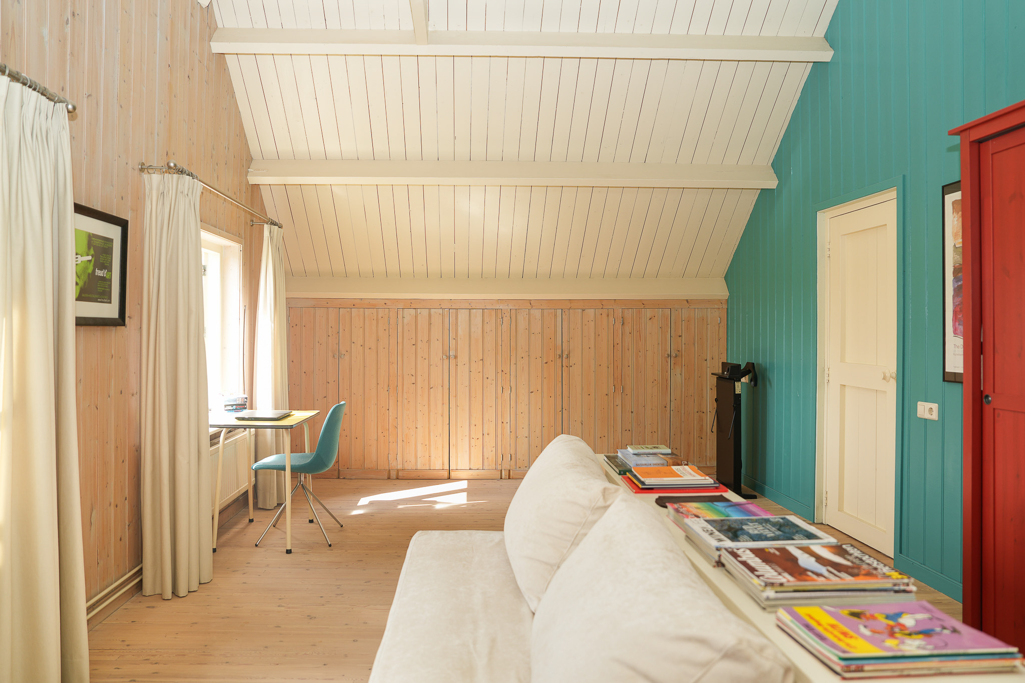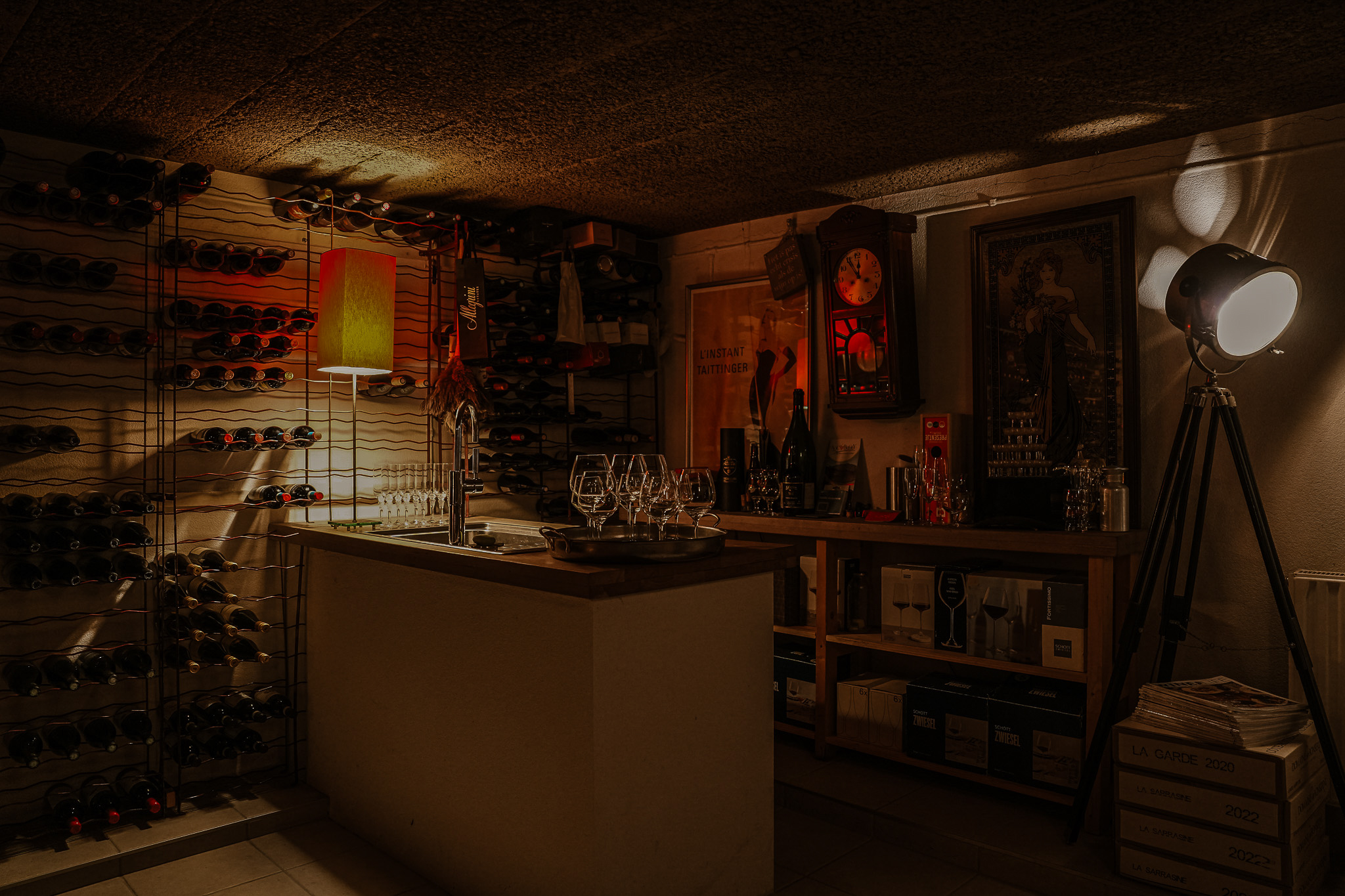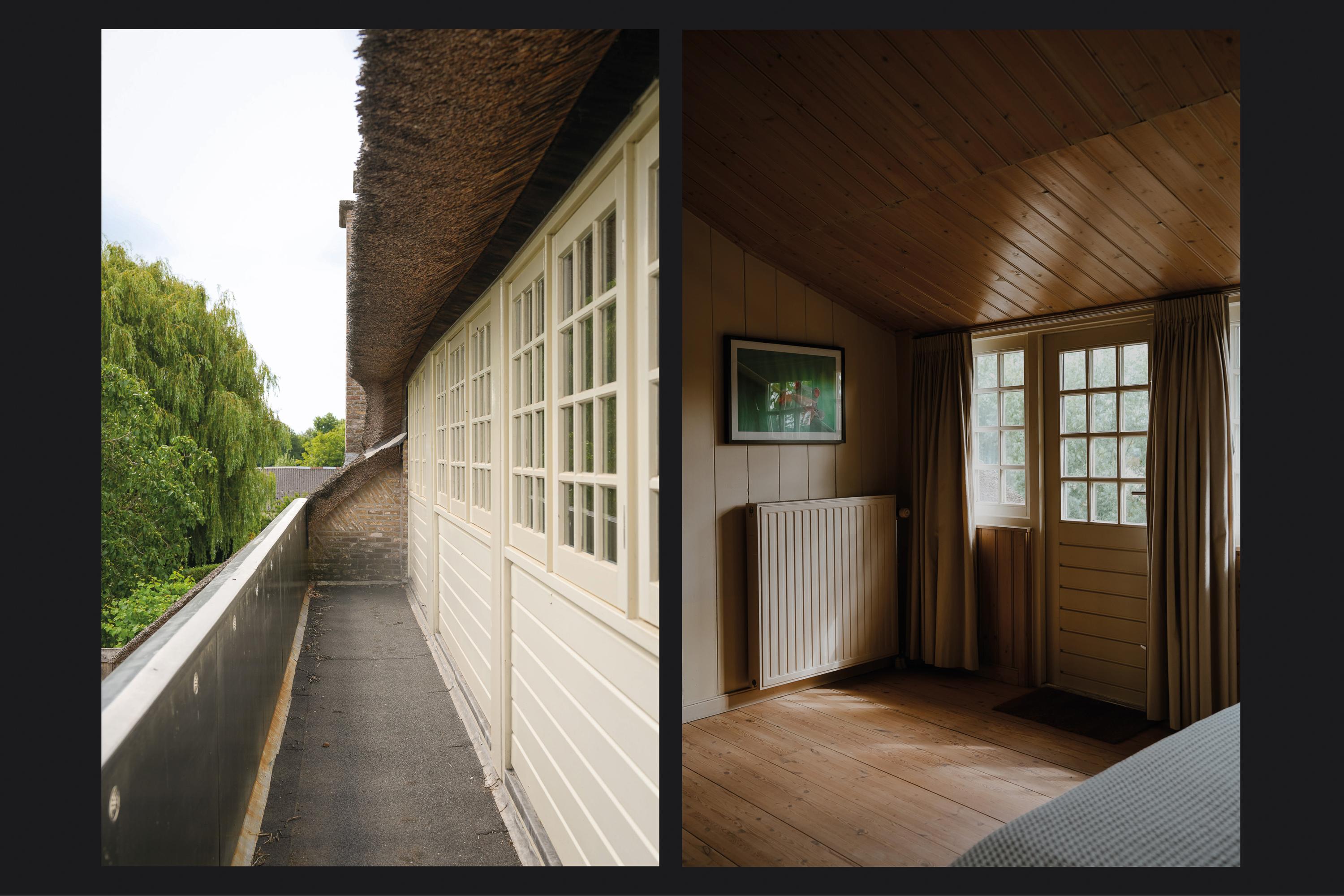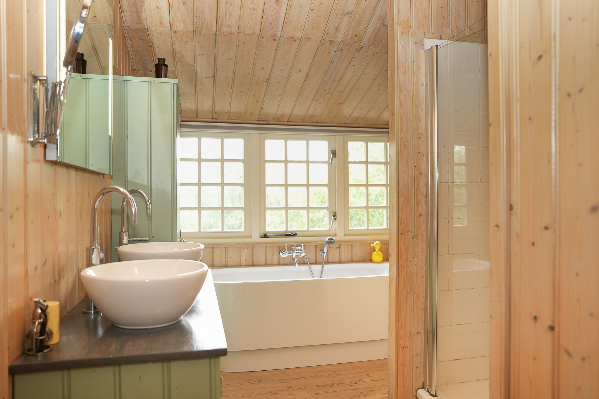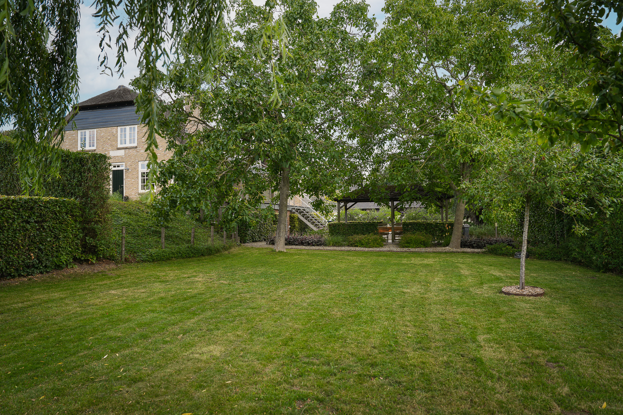 On the ground floor, two multifunctional rooms offer flexibility for study, guest accommodation with a private shower, or additional living. Upstairs, four bedrooms include a master suite with balcony and dressing room, and a complete bathroom designed for quiet retreat. The east-facing bedroom features built-in wardrobes under the eaves, while the remaining rooms are marked by exposed beams and expansive views over the surrounded gardens. The basement, with 56 m² and 2.10 metres ceiling height, currently serves as a wine cellar and offers further versatility.