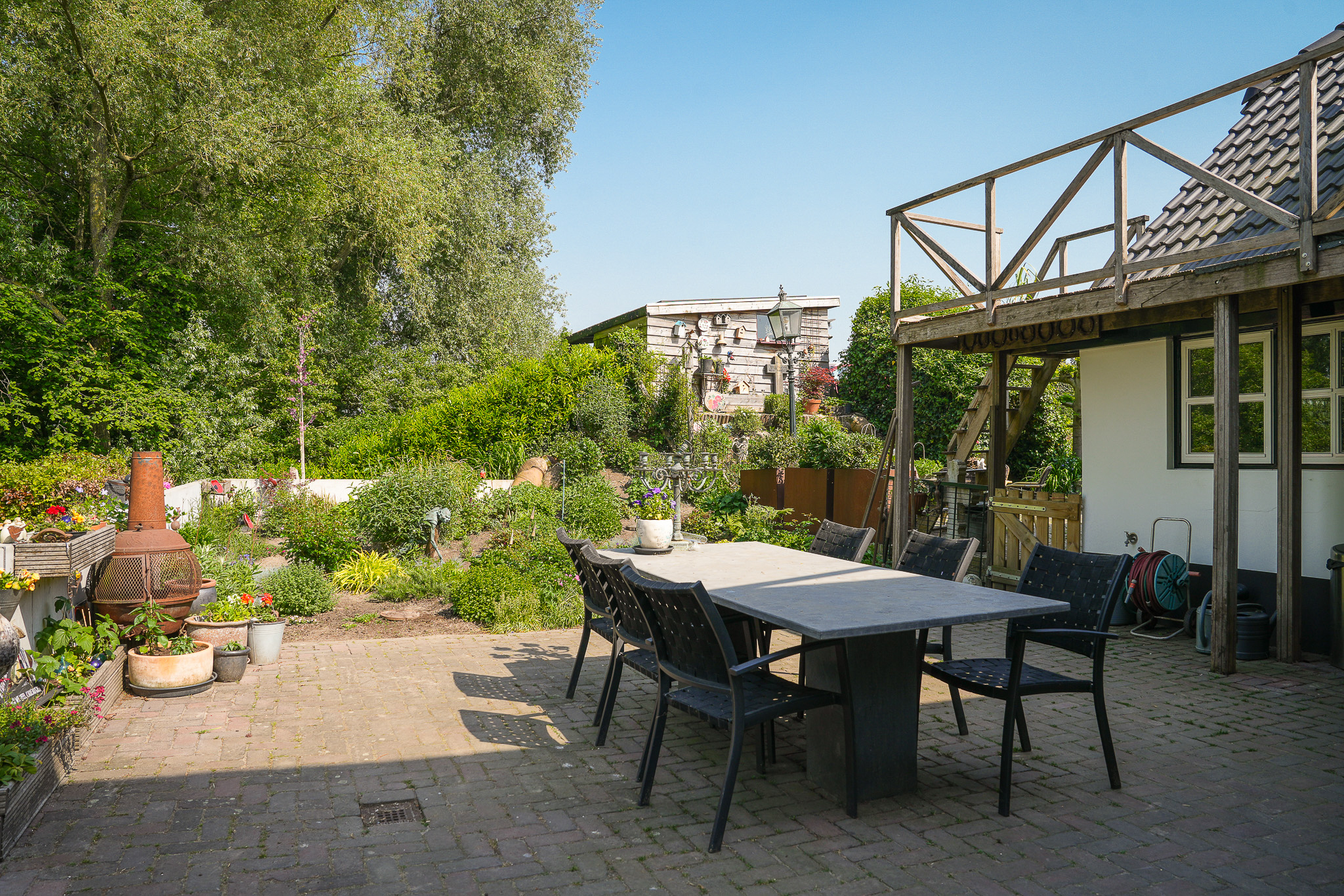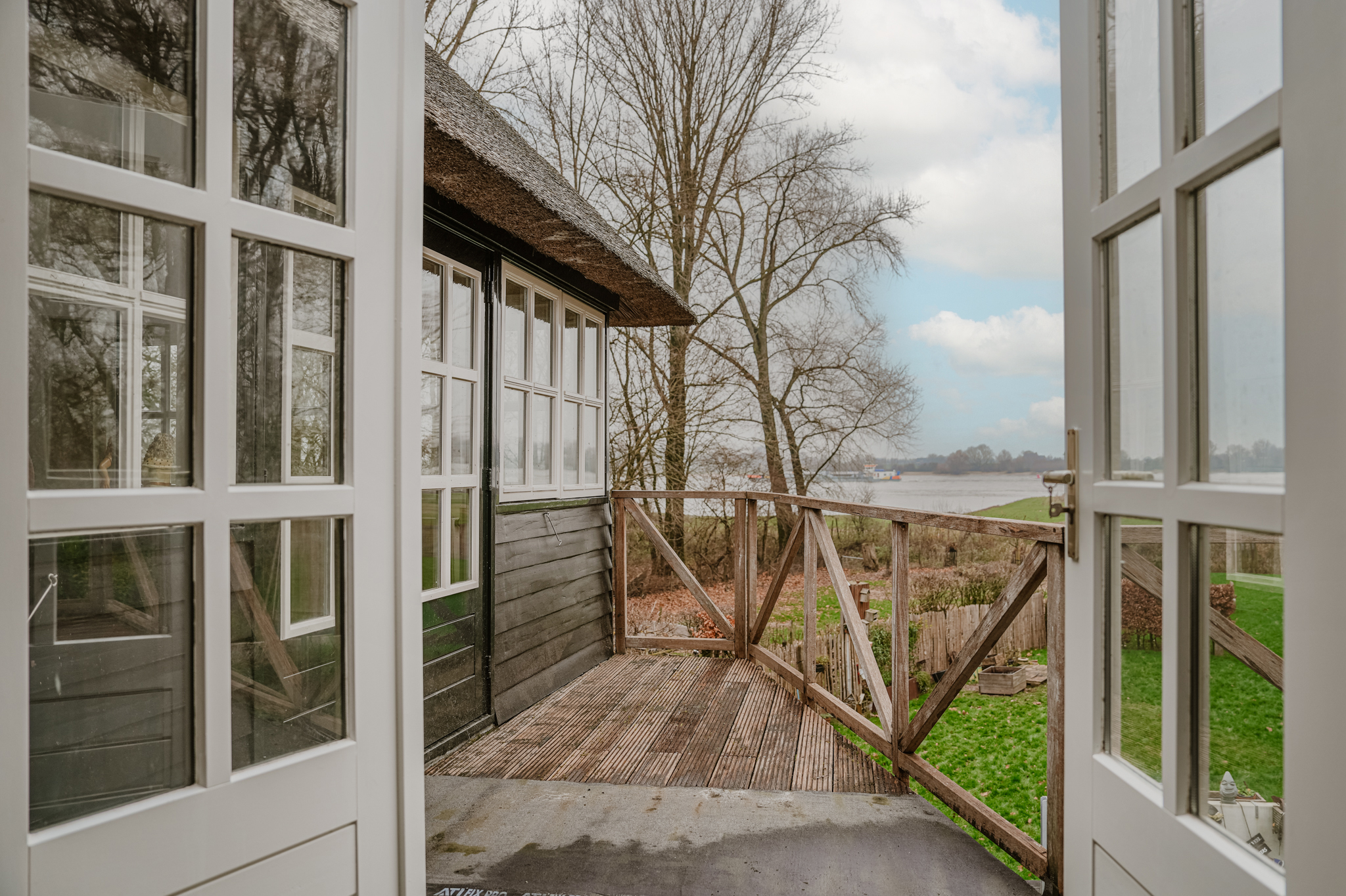 A wooden shed is located on the dike, and the property offers parking space for three cars. This is the perfect home for those who love outdoor living and value space, water, and privacy. From the property, you can walk directly to the river and enjoy your own private beach.