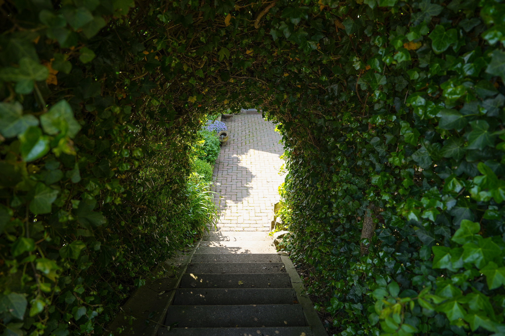 The bedroom, accessible via a second dike staircase on the west side of the house, is ideal as a practice space or guest room due to its private entrance.