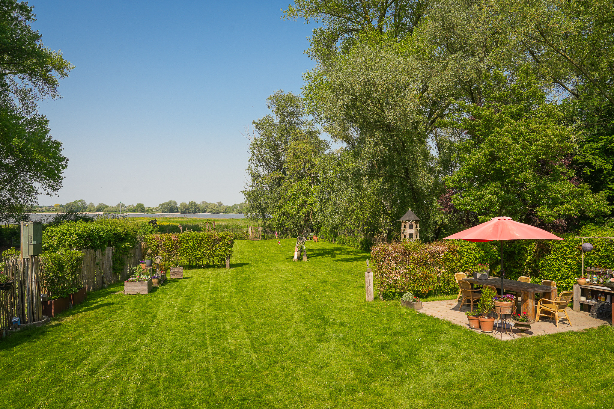 This idyllic 18th-century former village blacksmith’s house is located in a stunning location, directly on the floodplains of the River Waal and the nature reserve 'De Breemwaard'. From both the house and the property, you can enjoy expansive views of the river, garden, and surrounding nature.