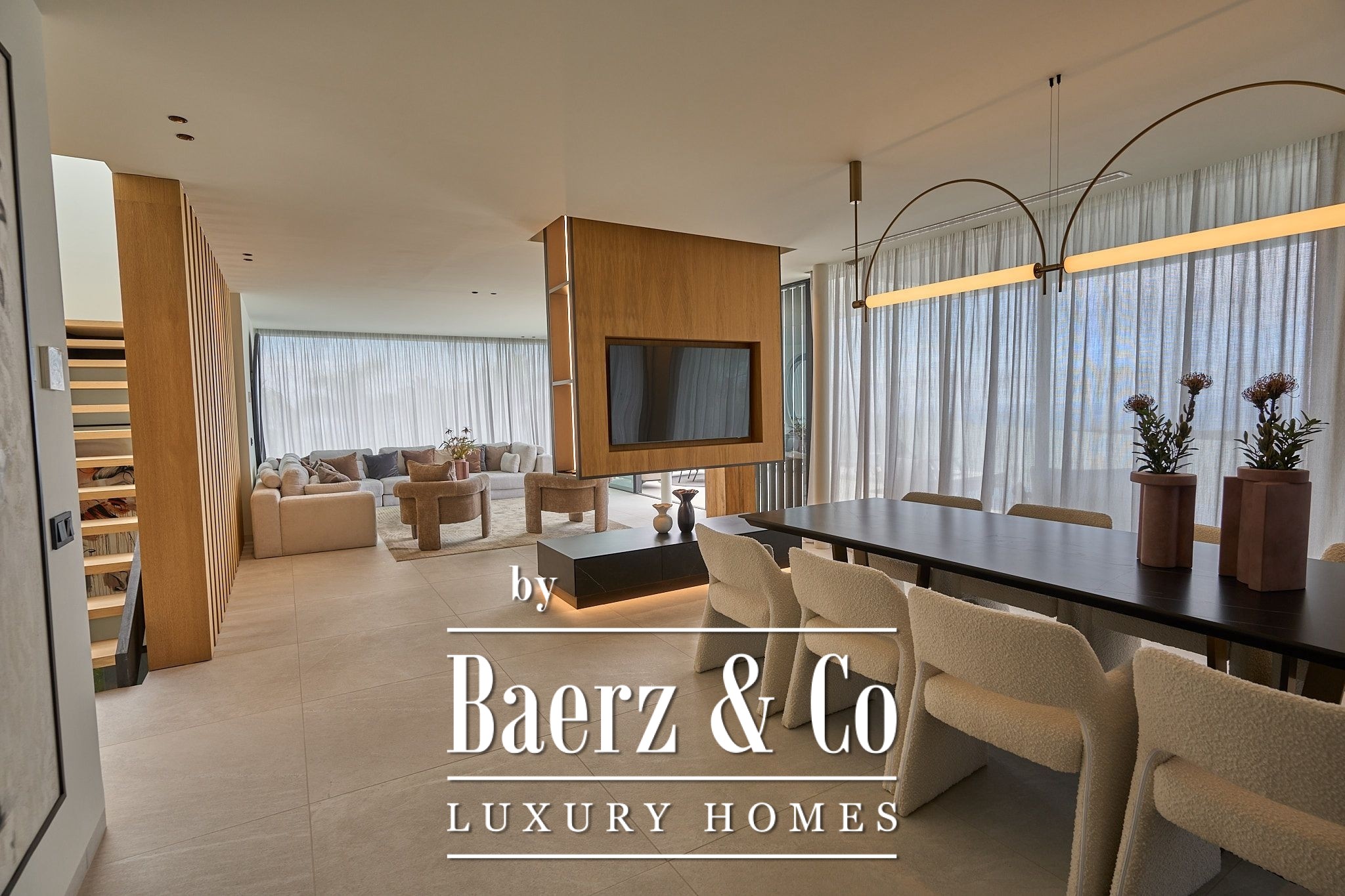 De direct bewoonbare woning, ingericht met luxe meubels, omvat 430 m² woonruimte op een perceel van 772 m². De indeling is ontworpen om ruimtelijkheid, overvloedig natuurlijk licht en een naadloze verbinding met de buitenruimte te bieden.