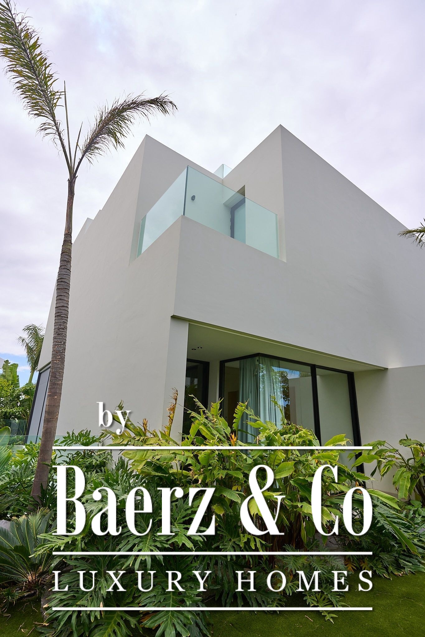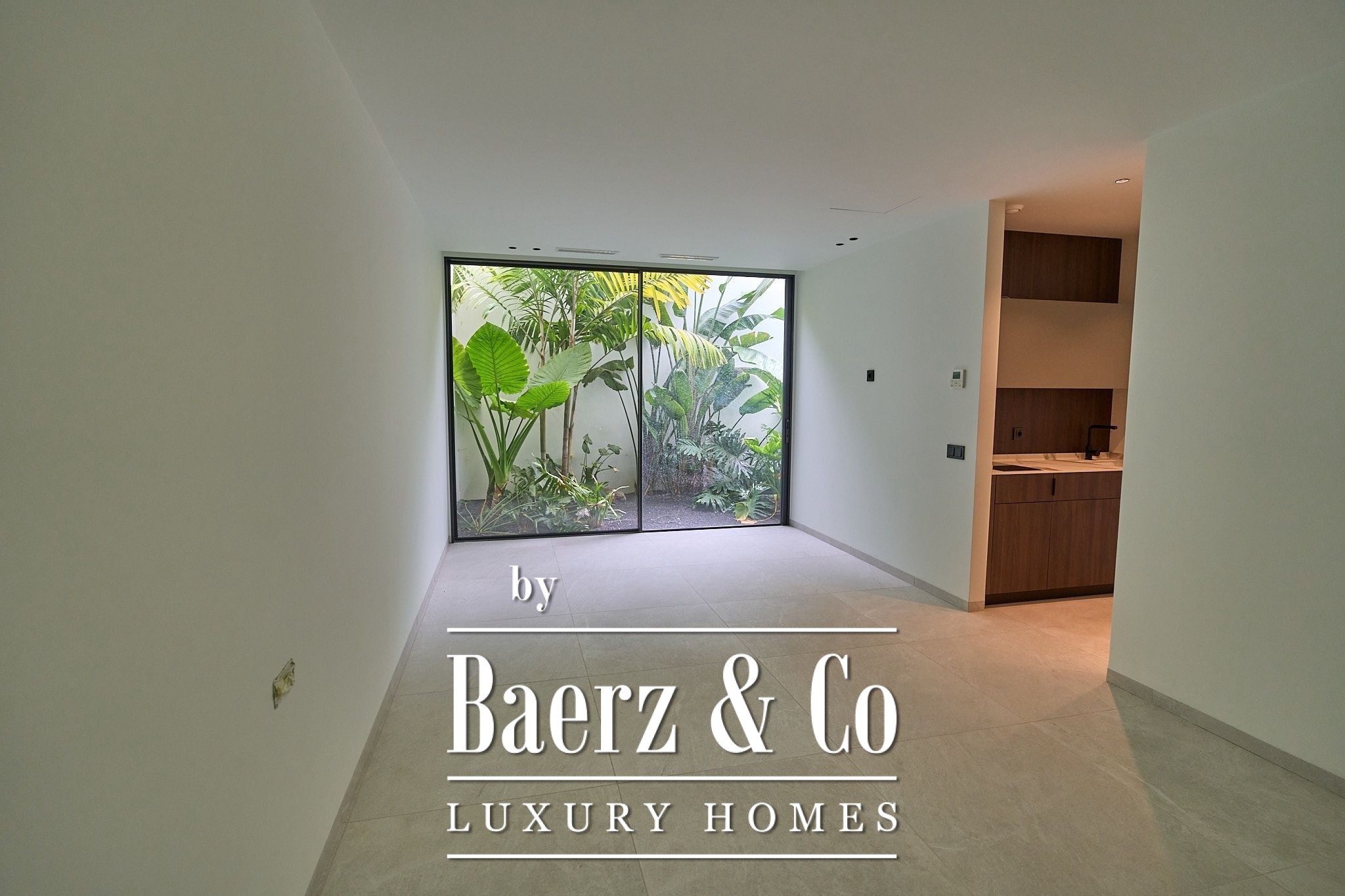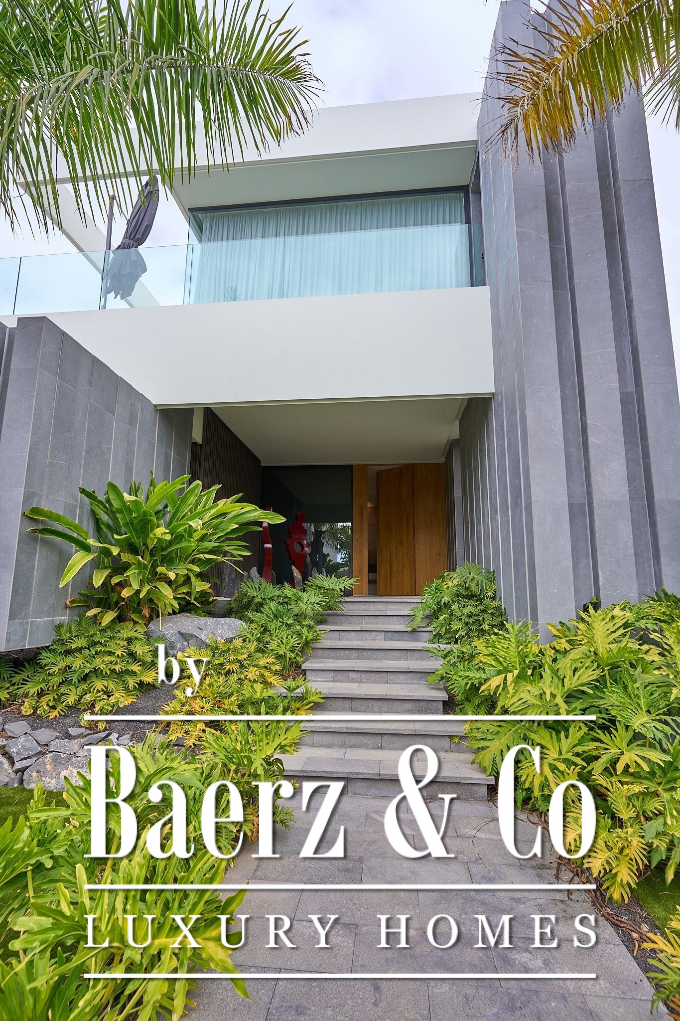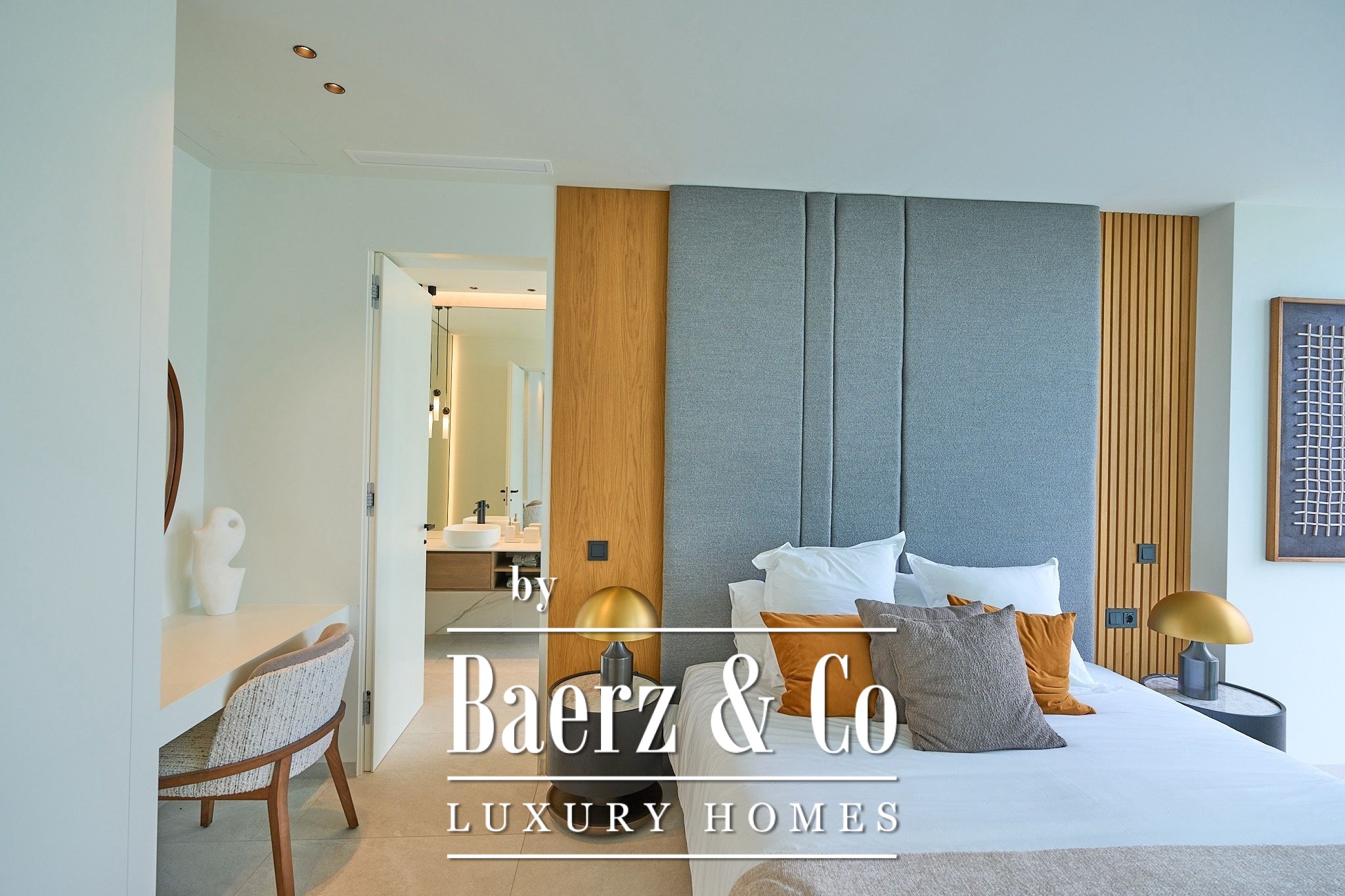 De villa beschikt over vier elegante slaapkamers met eigen badkamer, elk met inbouwkasten en directe toegang tot de tropische tuin, wat zorgt voor een intieme en ontspannen sfeer. Op de bovenverdieping bevindt zich een ruime woon- en eetkamer die uitkomt op een volledig uitgeruste moderne keuken, inclusief een wijnkelder – perfect voor wijnliefhebbers.