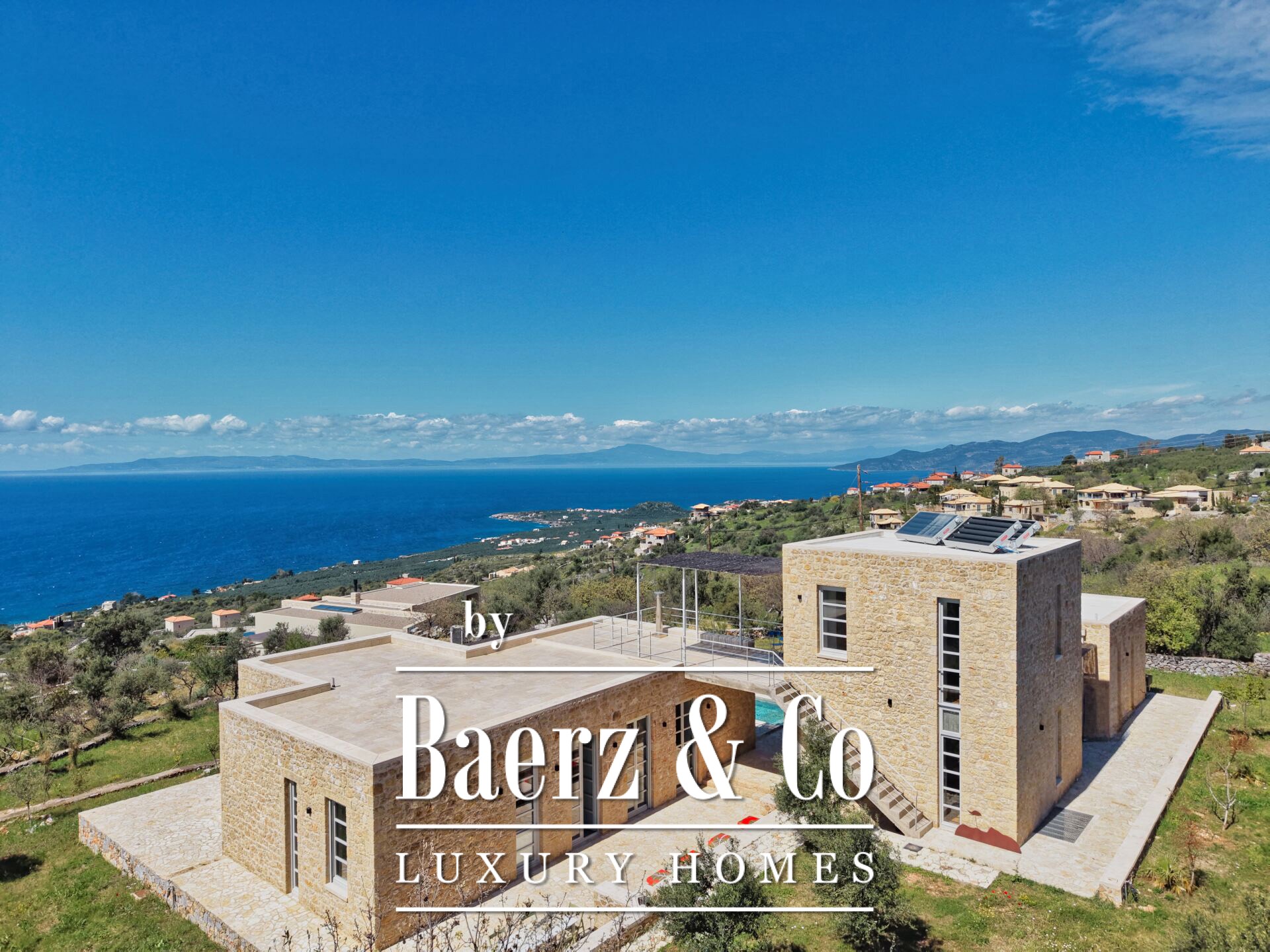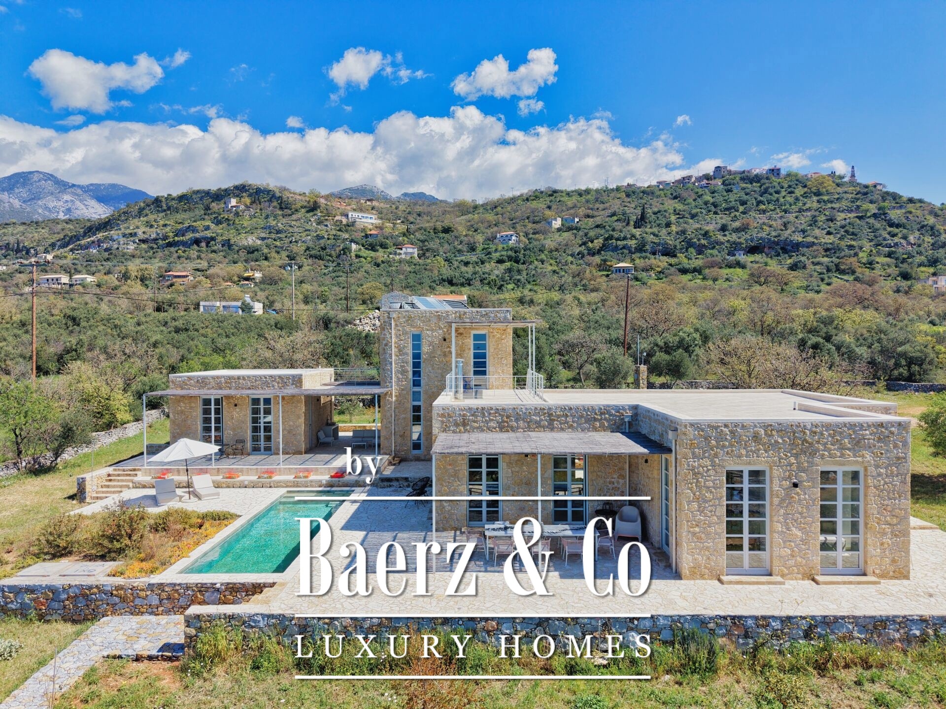 De stenen villa Agios Nikolaos bevindt zich in het gewilde landschap van de Messinias Mani en biedt verfijnd wonen met panoramisch, onbelemmerd zeezicht. Deze nieuw gebouwde villa, gelegen op een perceel van 2.029 m², beschikt over 260 m² woonoppervlakte, verdeeld over drie zelfstandige gebouwen. Hierdoor wordt maximale privacy en flexibiliteit geboden.