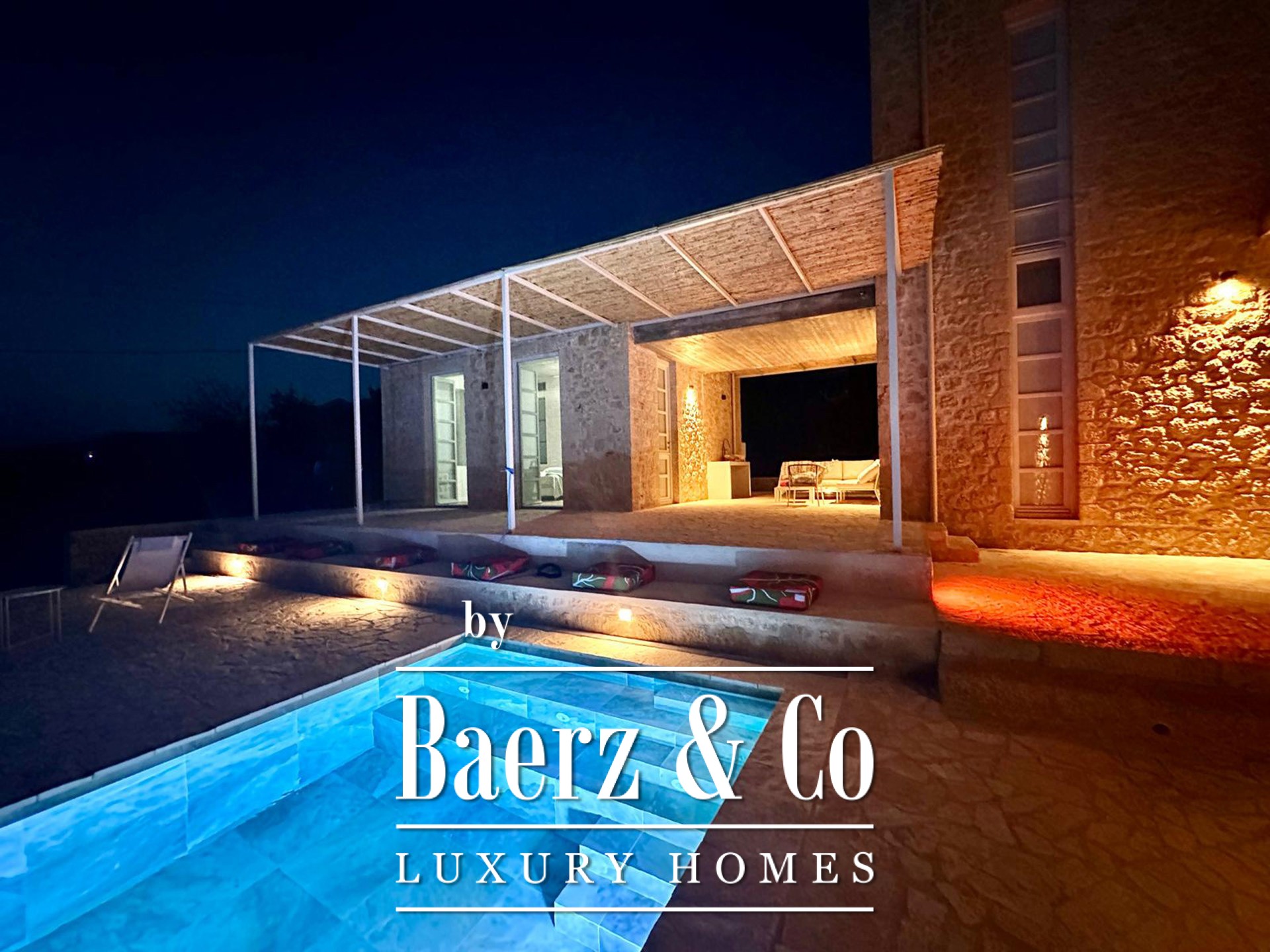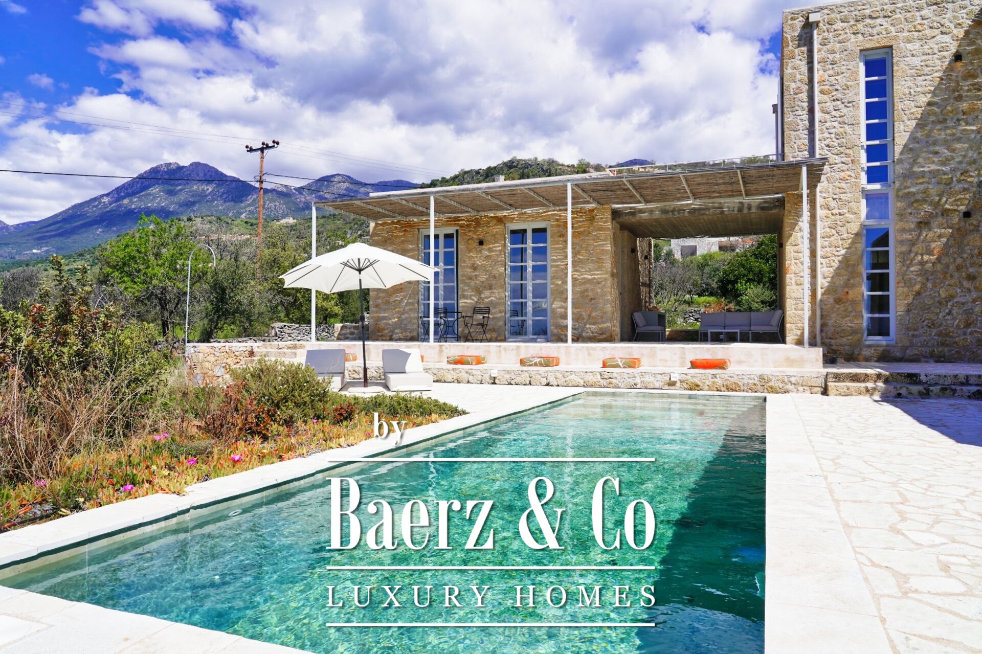 De stenen villa Agios Nikolaos biedt een uitzonderlijke combinatie van privacy, luxe en de pure schoonheid van de Griekse kustlijn.