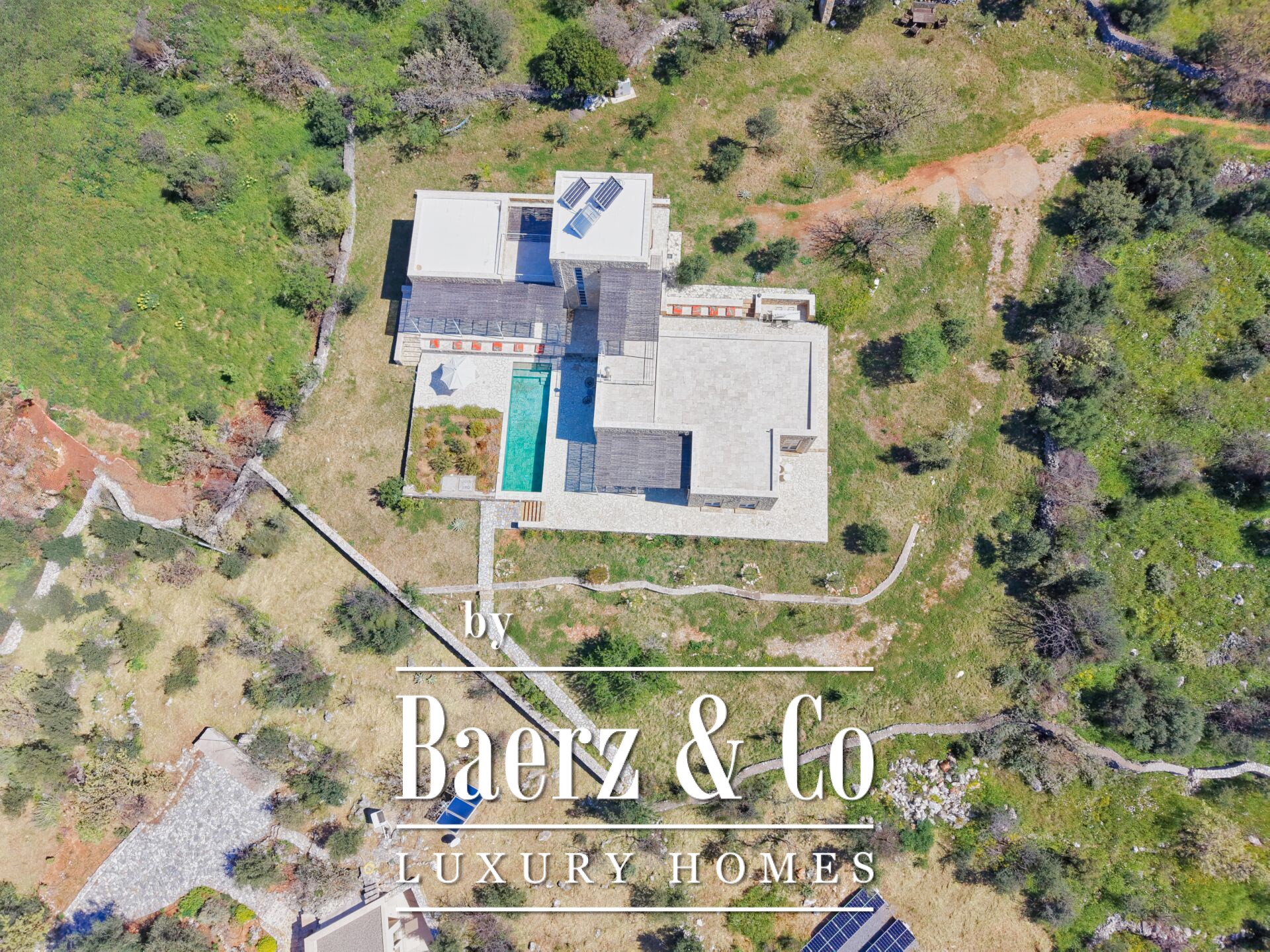 Buiten omringt een aangelegde tuin met volwassen bomen het privézwembad van 30 m² en een barbecueplek. Tot de voorzieningen behoren beveiligingscamera’s, internet, watertanks, een berging, horren en elektrische apparatuur. Op slechts 2,5 km van het dichtstbijzijnde strand en 2,9 km van het centrum van Agios Nikolaos biedt deze locatie een perfecte balans tussen rust en bereikbaarheid.
