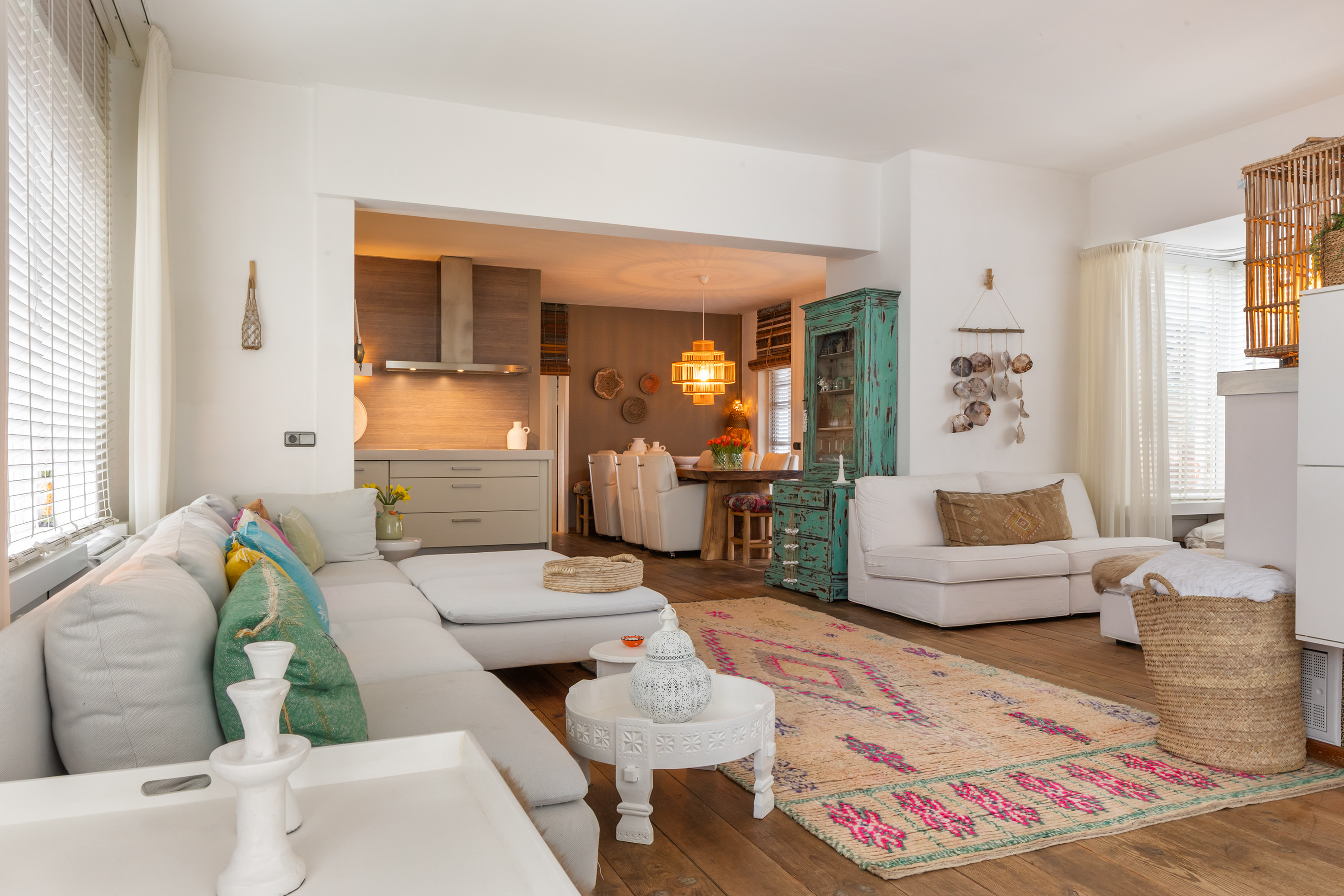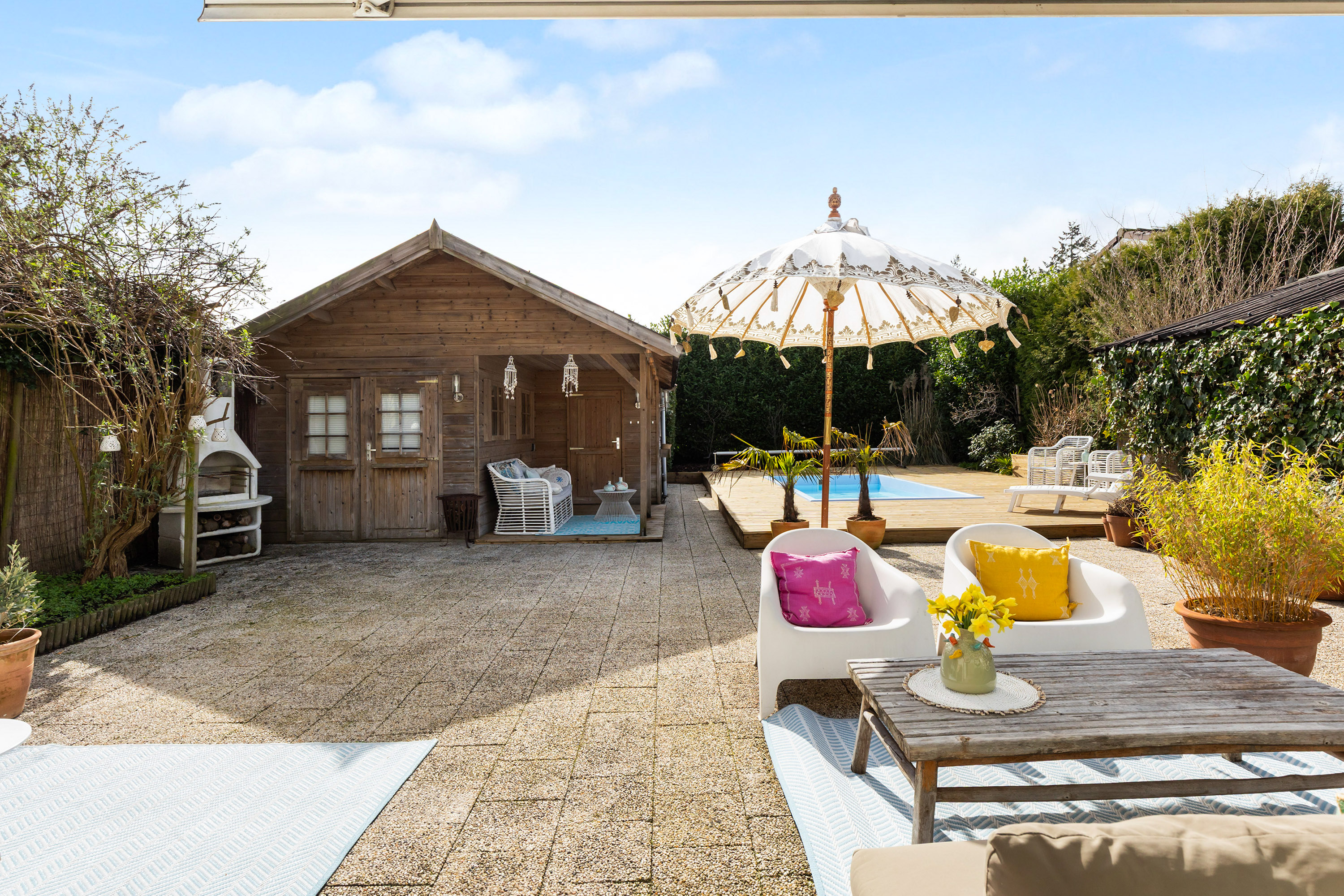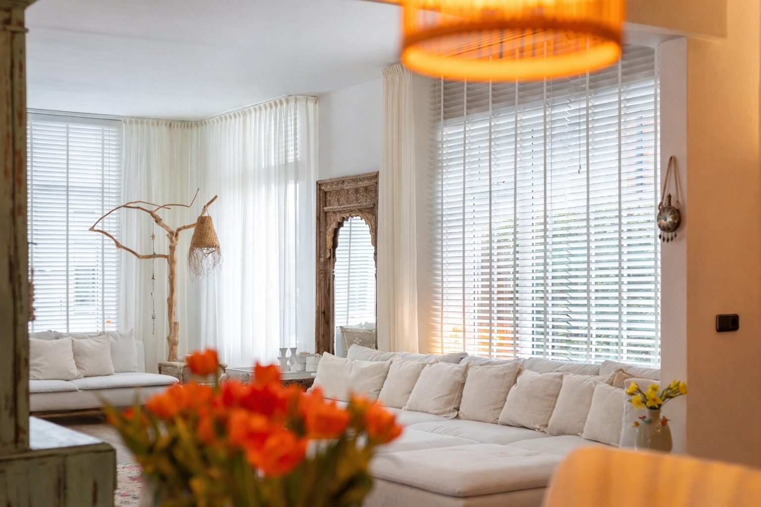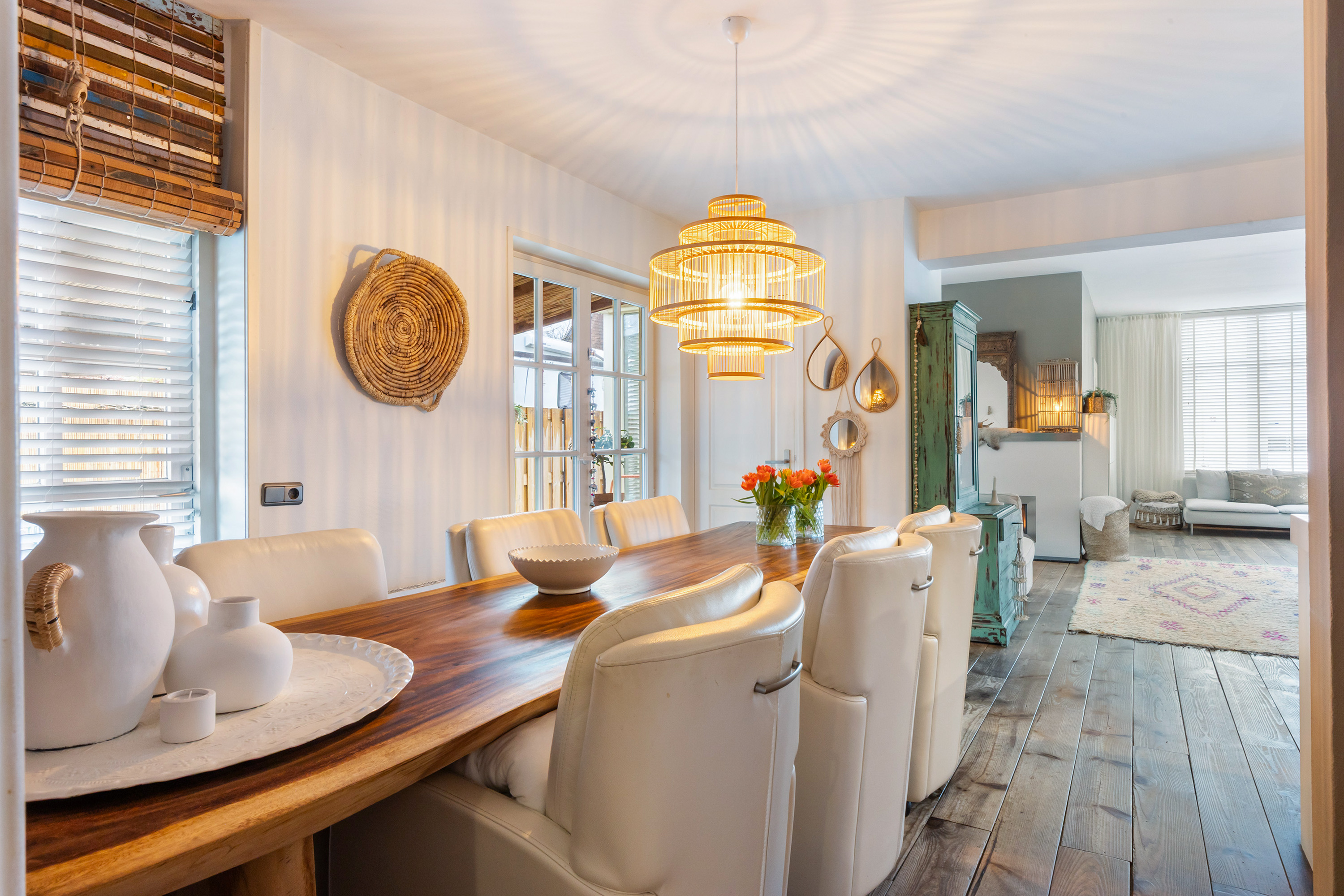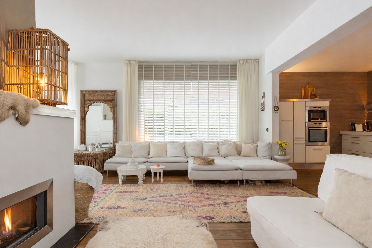De omvang van de leefruimte is aan de voorzijde van de woning nauwelijks waarneembaar. Pas bij binnenkomst ontvouwt zich de volledige ruimte, met meerdere woon- en slaapmogelijkheden, twee badkamers, twee garages, twee veranda’s en een zonnige, volledig besloten tuin met zwembad. De huidige afwerking is geheel eigentijds en geïnspireerd op een warme Zuid-Europese Ibiza-stijl. De gevels zijn in 2026 in een warme tint uitgevoerd en voorzien van karakteristieke louvre-luiken. In combinatie met de zonnige terrassen en het zwembad ontstaat een ontspannen, bijna mediterrane woonbeleving.
