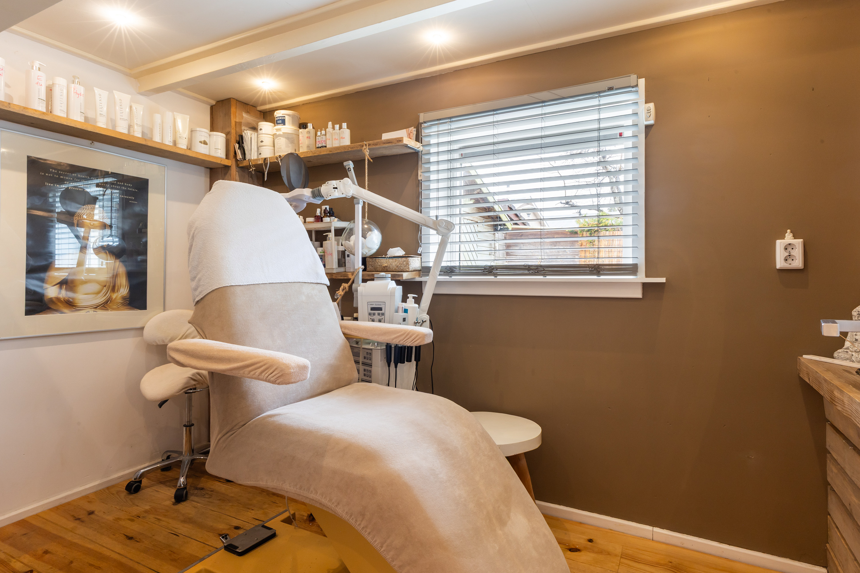 Vanuit de woonkeuken leidt een tussenhal naar een kamer die momenteel in gebruik is als schoonheidssalon. Deze kamer is geschikt voor werken aan huis, maar kan ook als slaapkamer worden ingericht.