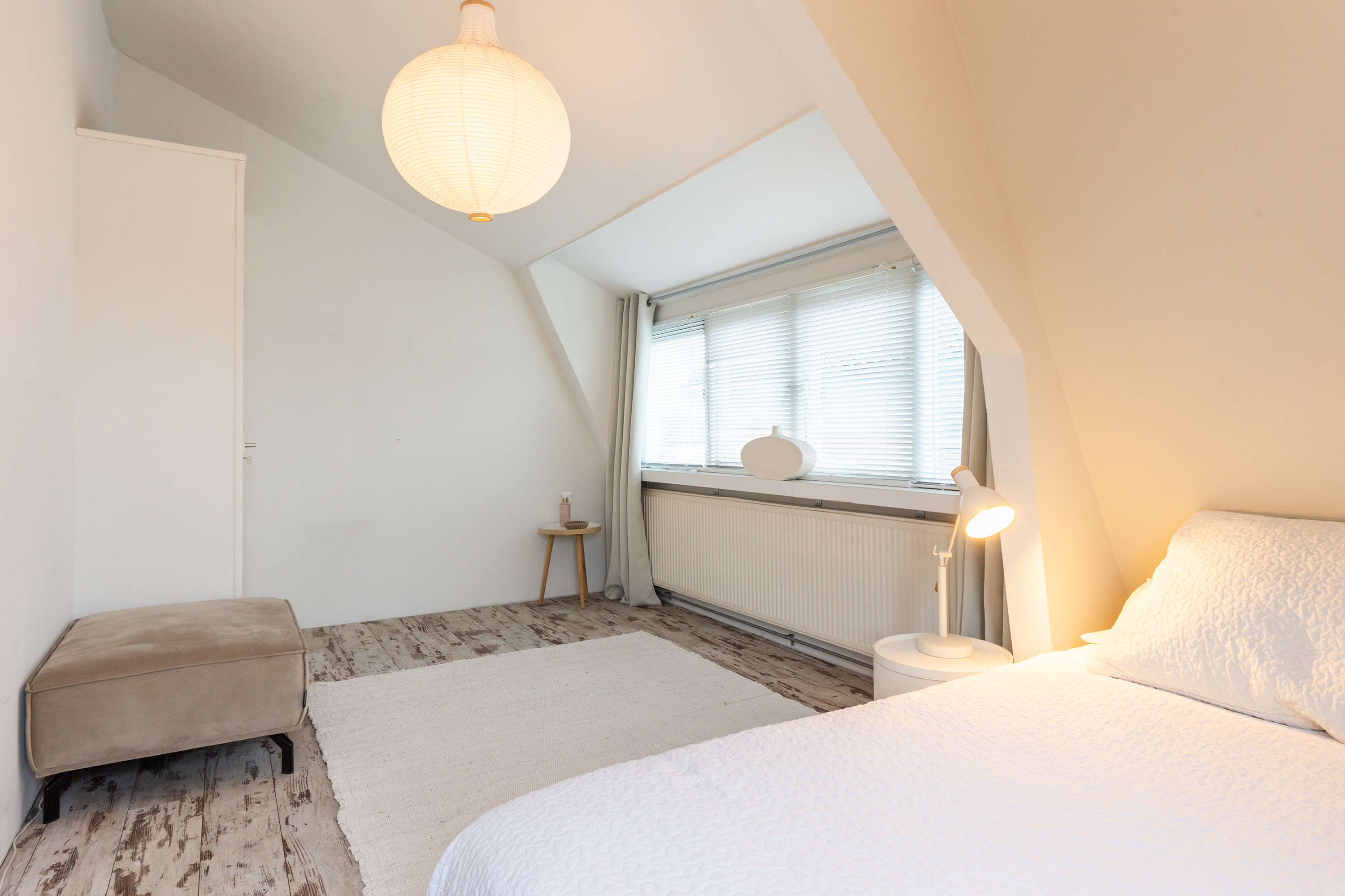 Achter een deur bevindt zich een ruimte met dakkapel die momenteel als loungekamer is ingericht. Aan de achterzijde van de woning bevinden zich nog twee royale slaapkamers van elk circa 16 m². Beide kamers beschikken over een eigen deur naar het dakterras. Aangrenzend ligt een praktische inloopkast.