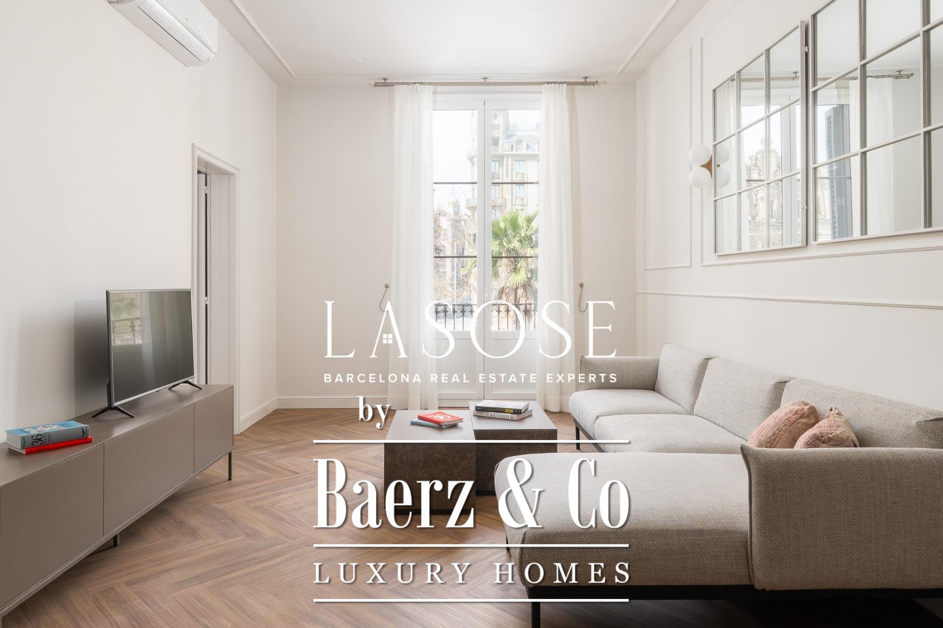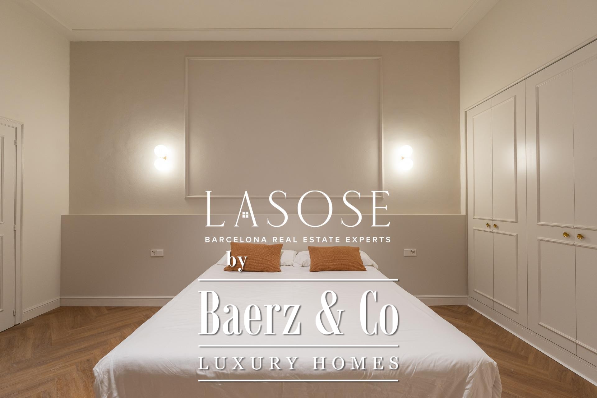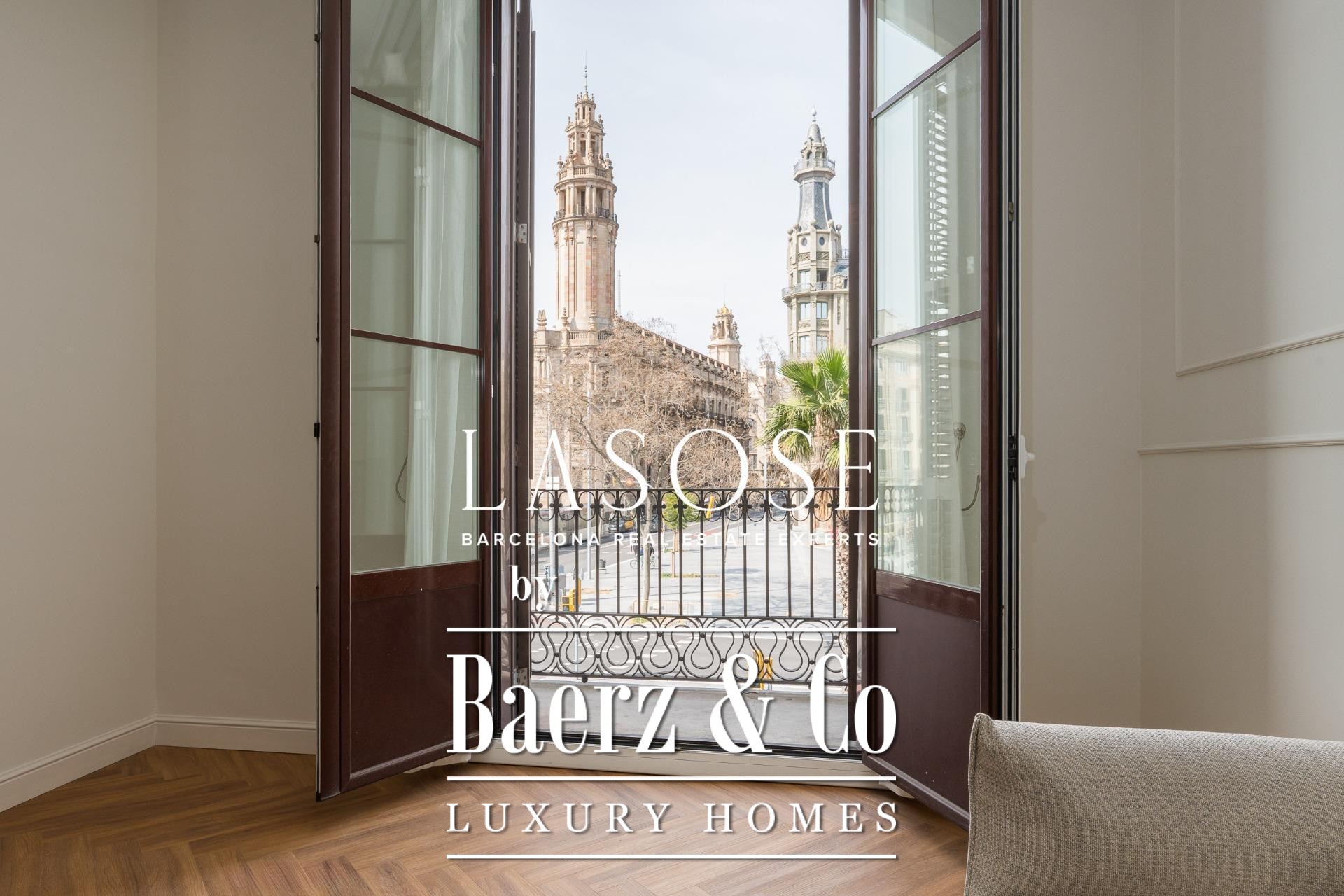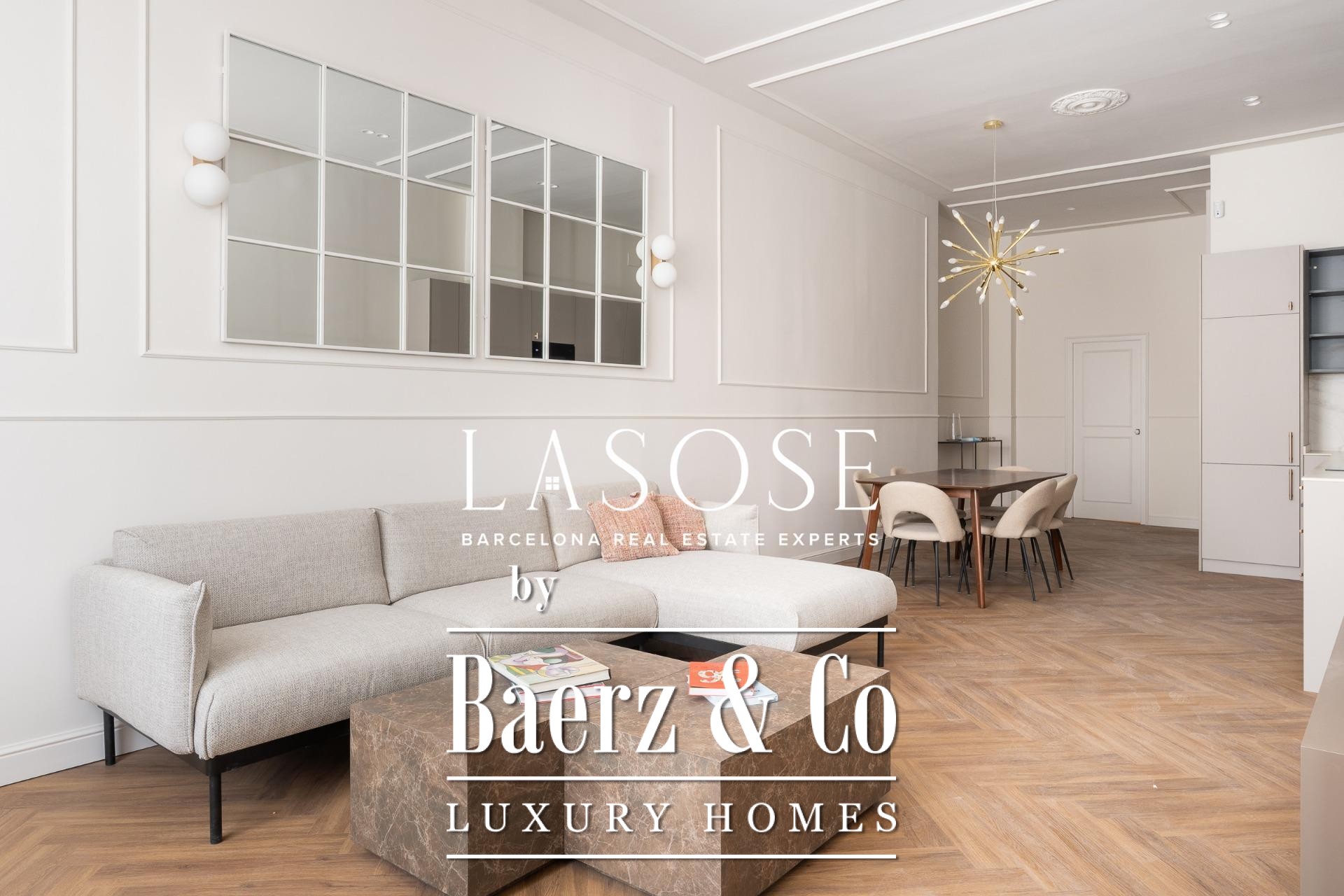 Appartement Barcelona bereikt een nieuwe betekenis in deze uitzonderlijke residentie van 118 m², gelegen in een nauwgezet gerenoveerd historisch pand uit 1850 dat nu als Lokaal Erfgoed is aangemerkt. De woning vormt een zeldzame balans tussen het behouden architecturale karakter en de eisen van hedendaagse luxe. Zodra u binnenkomt, ervaart u direct een gevoel van ruimte en verfijning, dankzij de open woon- en eetkamer die baadt in natuurlijk licht via royale ramen aan de zijde van de Paseo Isabel II. Designmeubilair en hoogwaardige afwerkingen verrijken iedere beleving.