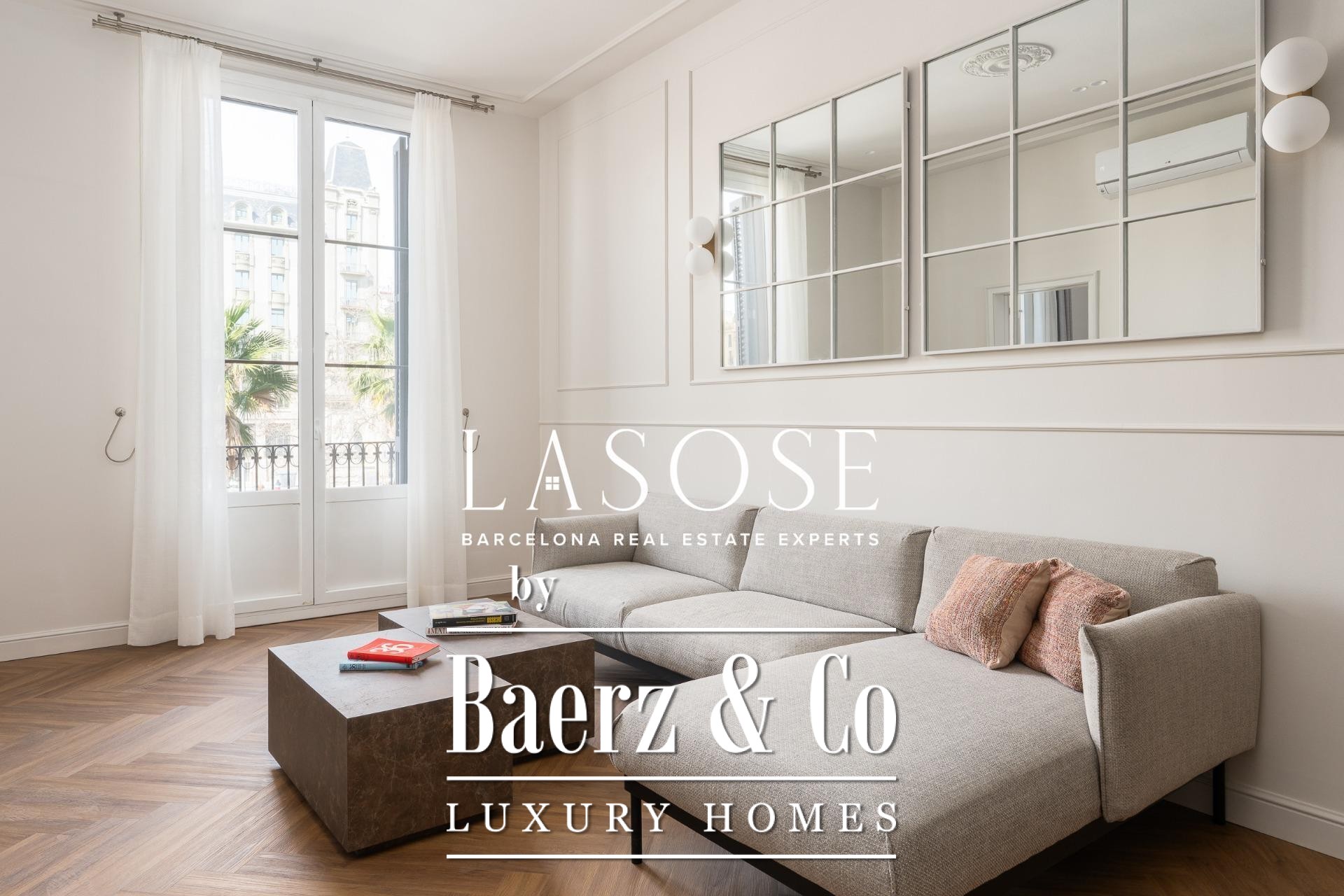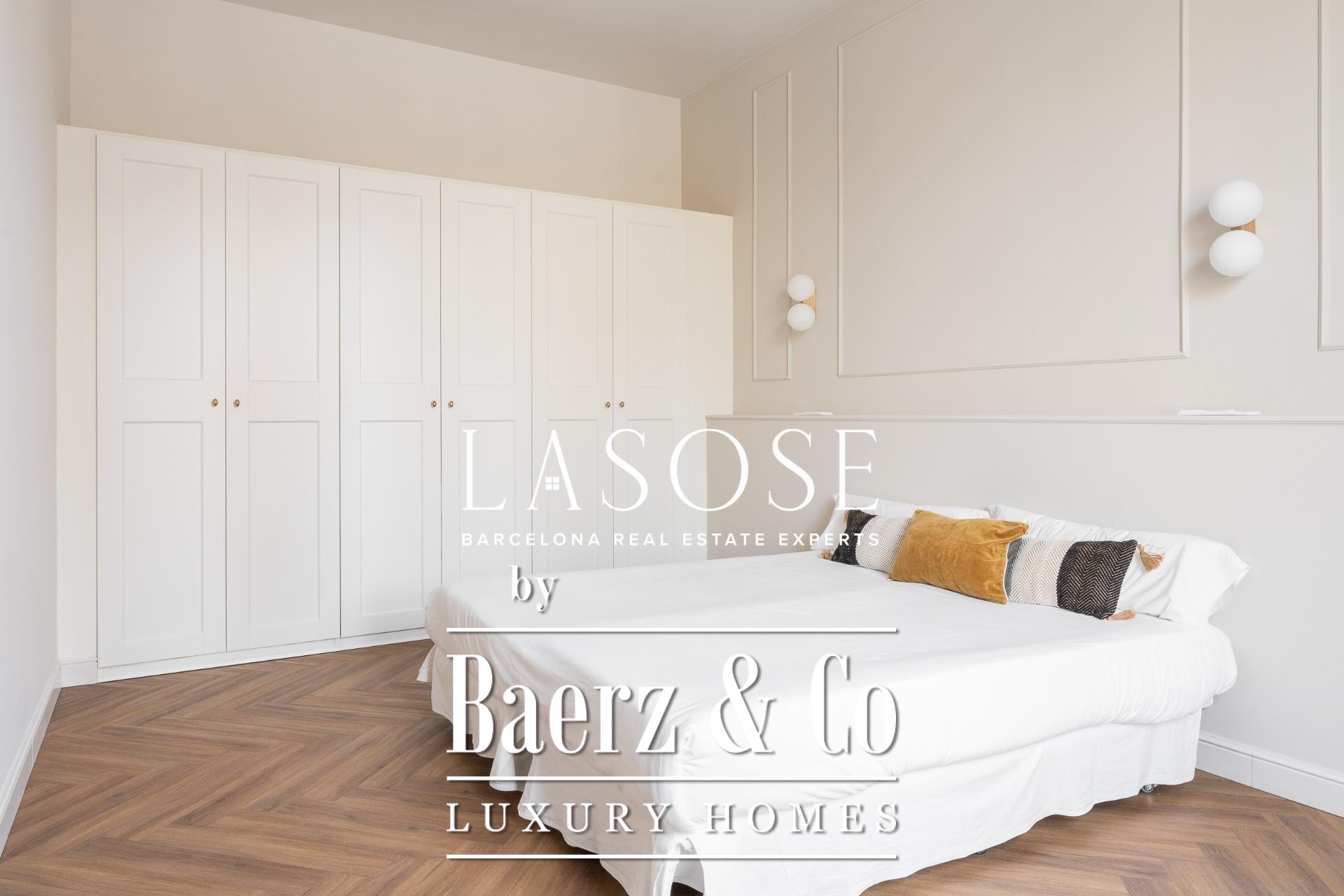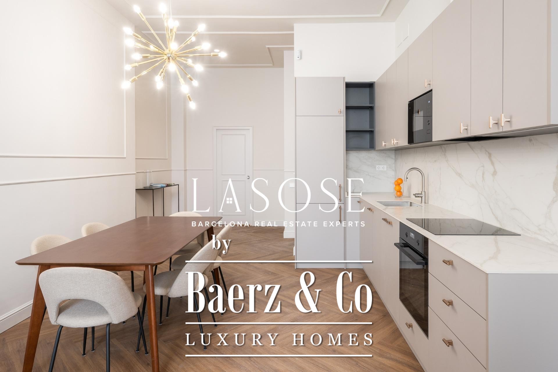 Appartement Barcelona bereikt een nieuwe betekenis in deze uitzonderlijke residentie van 118 m², gelegen in een nauwgezet gerenoveerd historisch pand uit 1850 dat nu als Lokaal Erfgoed is aangemerkt. De woning vormt een zeldzame balans tussen het behouden architecturale karakter en de eisen van hedendaagse luxe. Zodra u binnenkomt, ervaart u direct een gevoel van ruimte en verfijning, dankzij de open woon- en eetkamer die baadt in natuurlijk licht via royale ramen aan de zijde van de Paseo Isabel II. Designmeubilair en hoogwaardige afwerkingen verrijken iedere beleving.