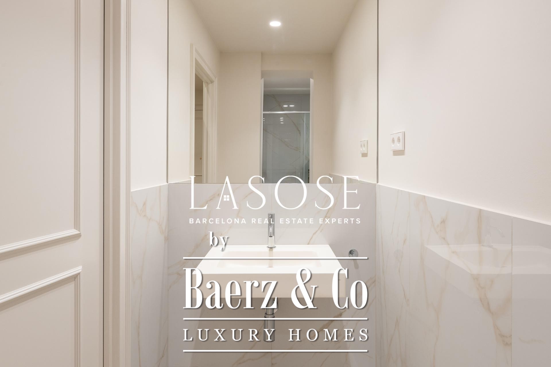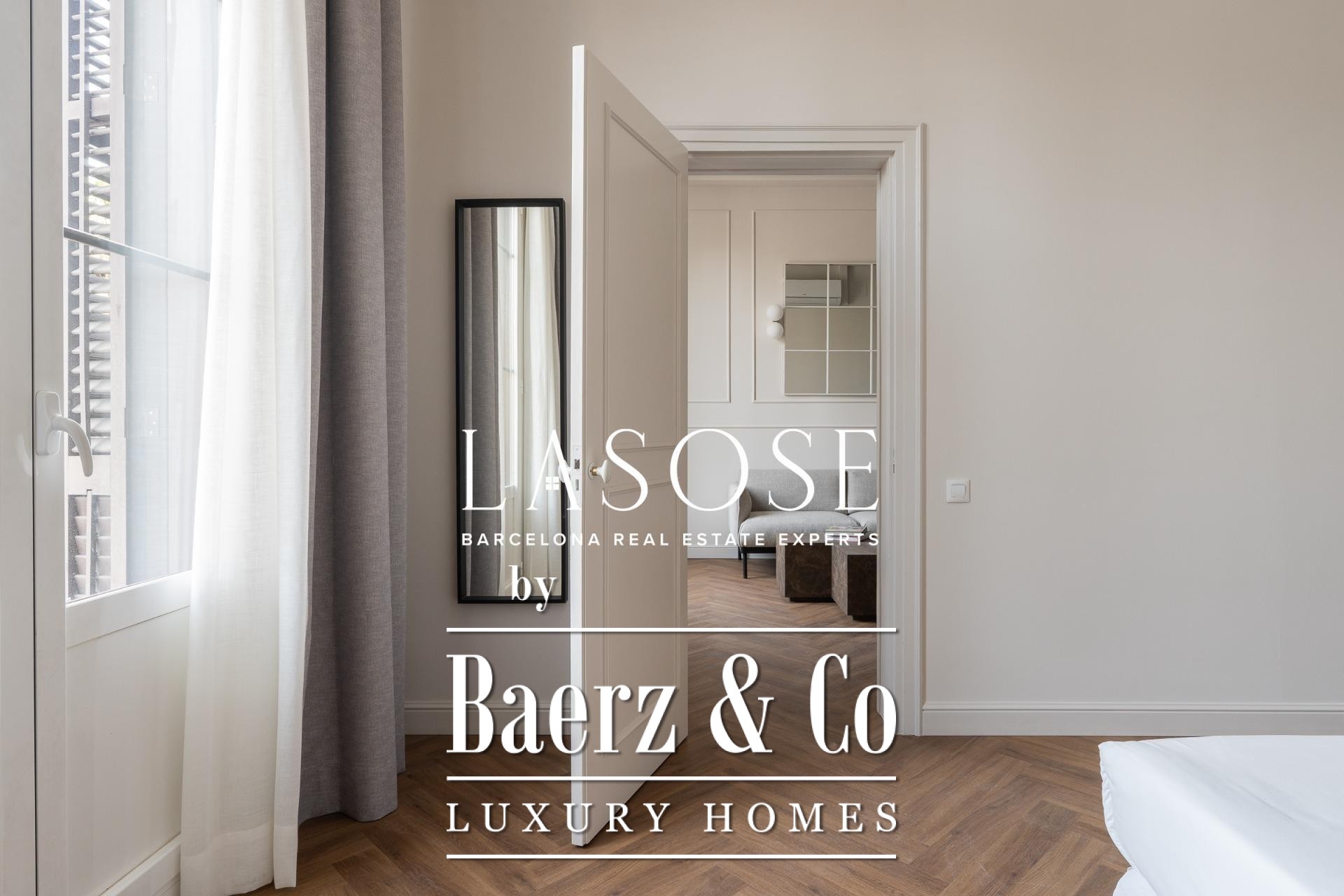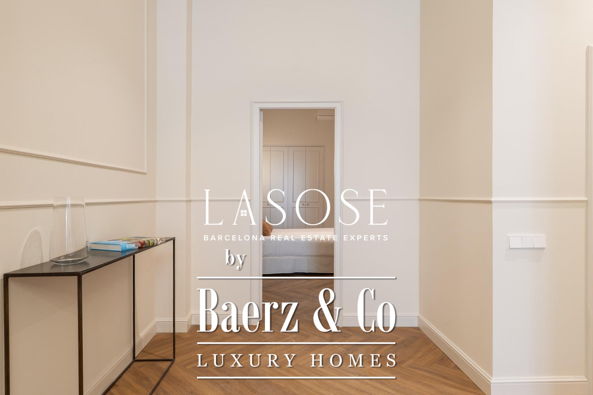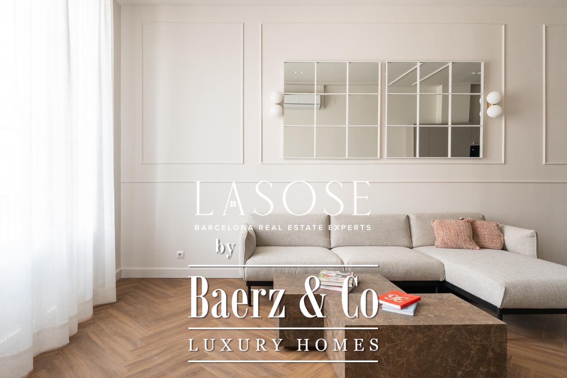 Appartement Barcelona bereikt een nieuwe betekenis in deze uitzonderlijke residentie van 118 m², gelegen in een nauwgezet gerenoveerd historisch pand uit 1850 dat nu als Lokaal Erfgoed is aangemerkt. De woning vormt een zeldzame balans tussen het behouden architecturale karakter en de eisen van hedendaagse luxe. Zodra u binnenkomt, ervaart u direct een gevoel van ruimte en verfijning, dankzij de open woon- en eetkamer die baadt in natuurlijk licht via royale ramen aan de zijde van de Paseo Isabel II. Designmeubilair en hoogwaardige afwerkingen verrijken iedere beleving.