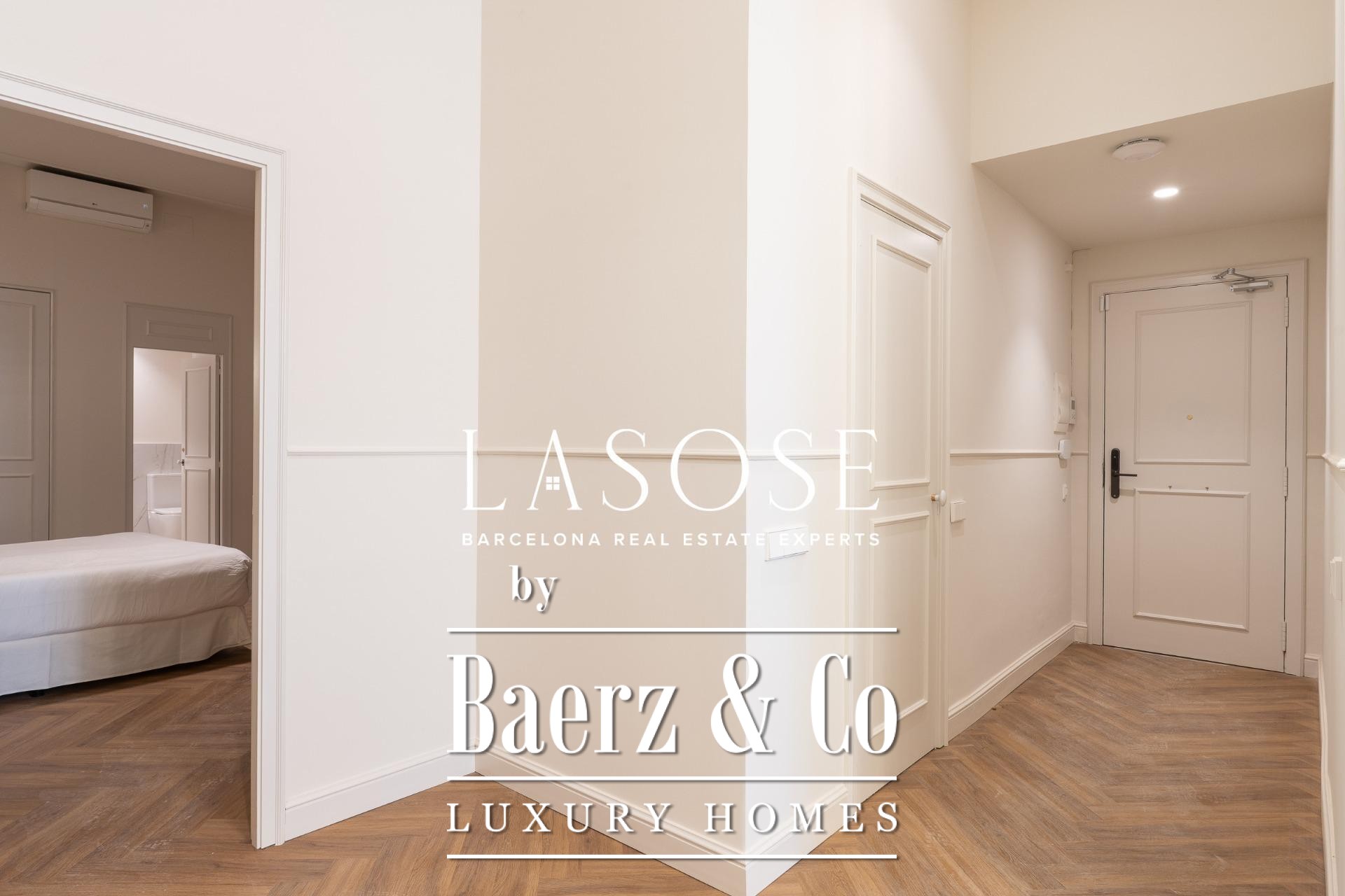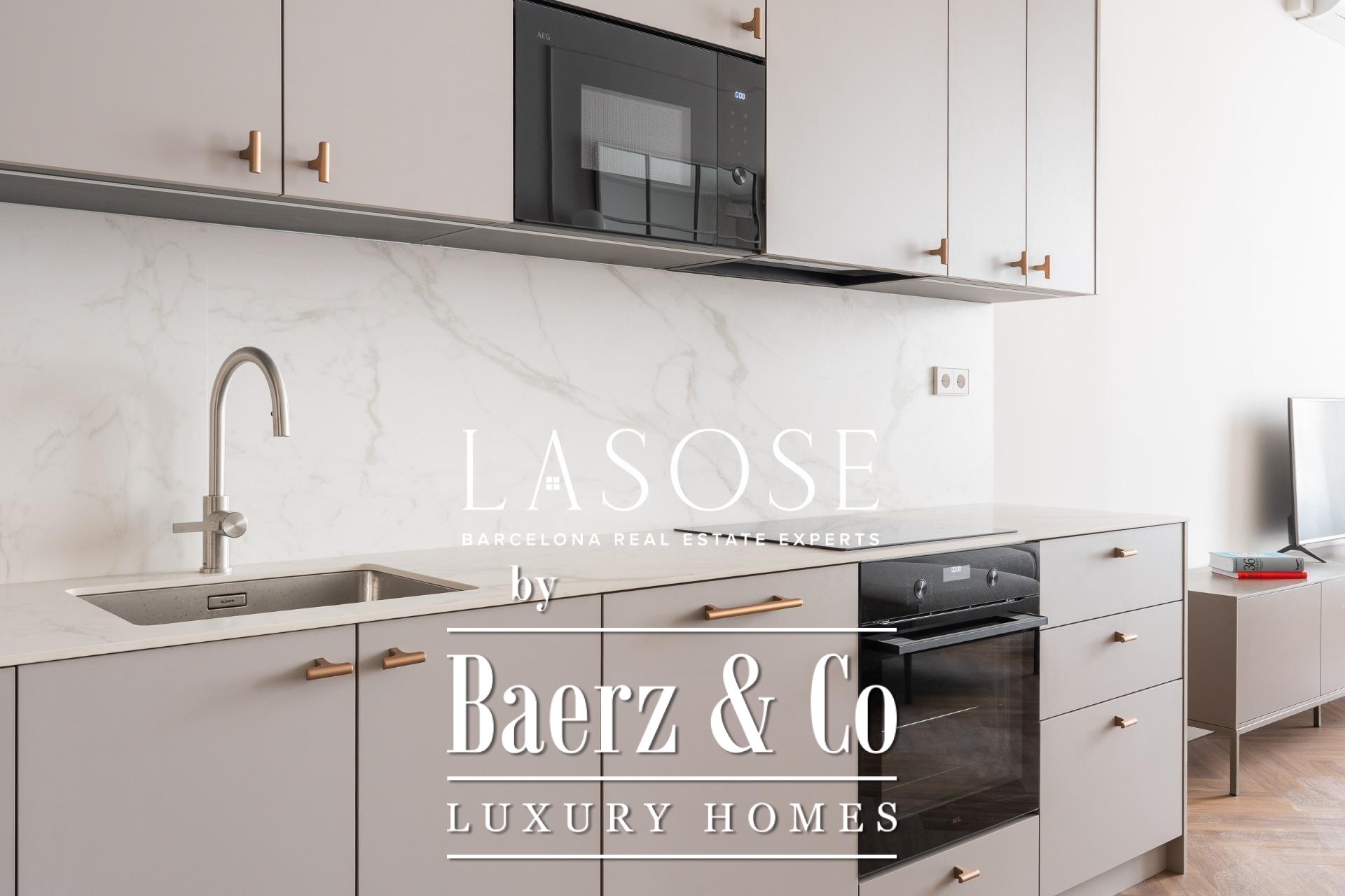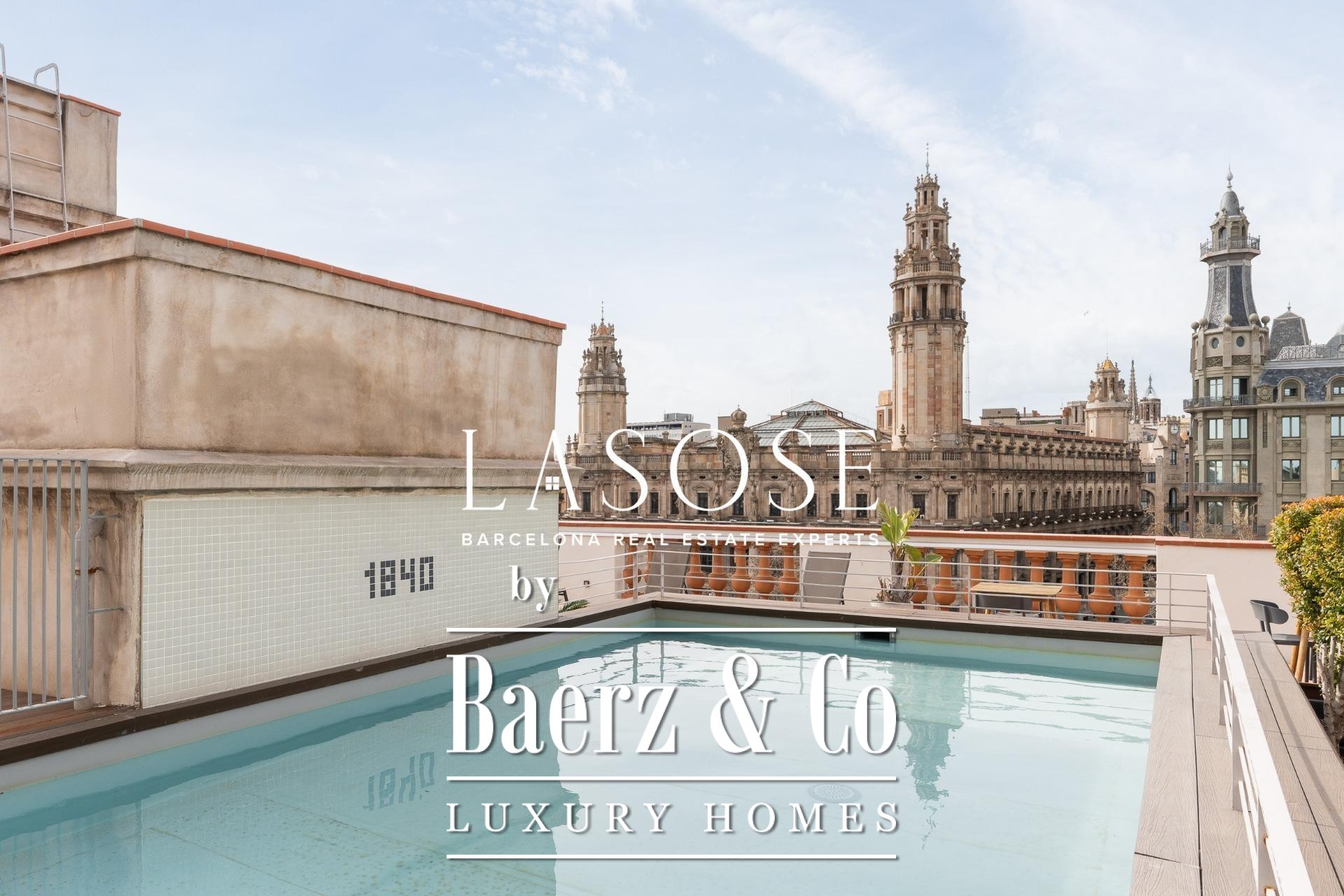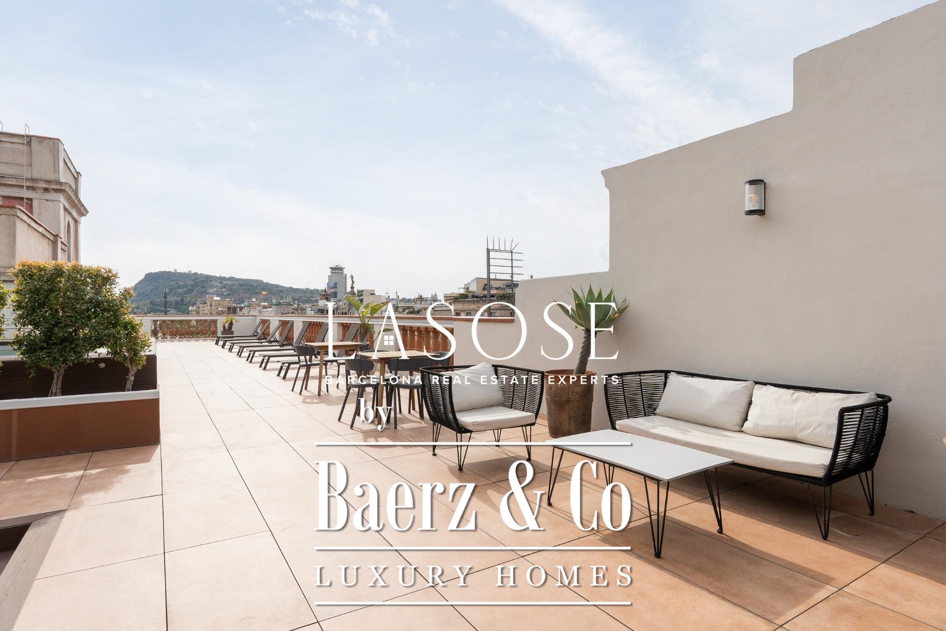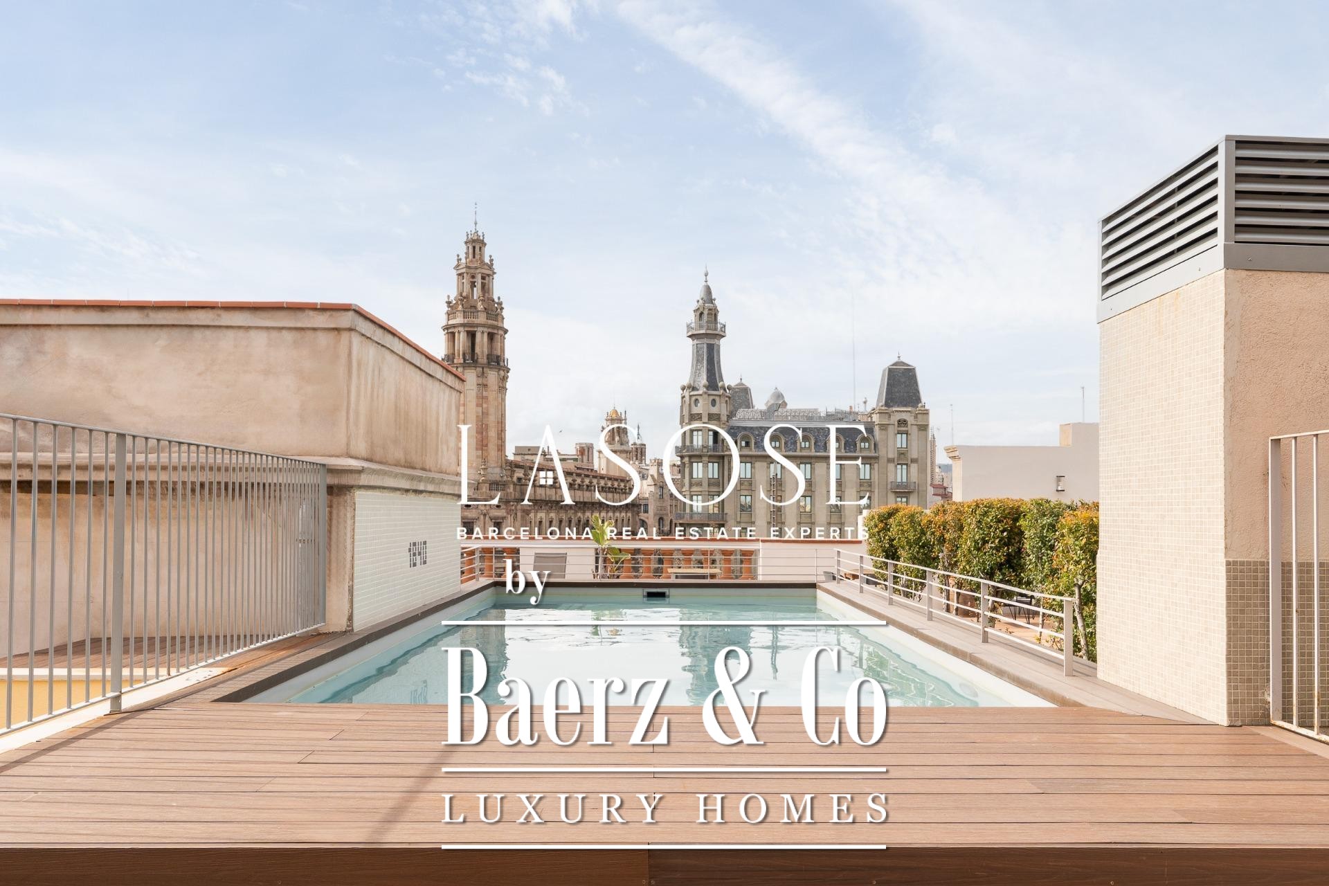 Bewoners genieten van voorzieningen zoals een dakterras met zwembad, panoramisch zeezicht en conciërgeservice. Door de ligging in de wijk La Ribera bent u op korte afstand van de kustlijn van Barcelona, Port Vell en exclusieve winkelbestemmingen, allemaal eenvoudig bereikbaar via het efficiënte openbaar vervoer. Deze instapklare woning biedt een overtuigende kans voor liefhebbers van geïntegreerd design, privacy en toegang tot het beste van het stadsleven.