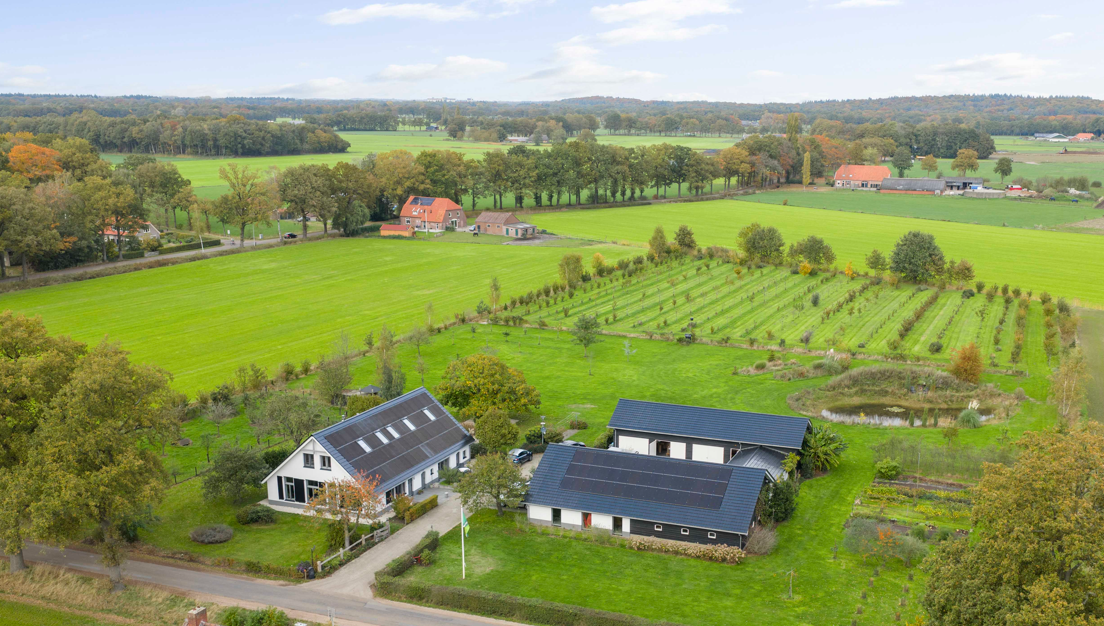 Buitengewoon buiten – Elegant, eigentijds en energieneutraalste woonboerderij met multifunctioneel bijgebouw (288 m²) bestaande uit kantoor-, opslag- of hobbyruimte, een wagenloods en een unieke fruit- en notengaard met fenomenale uitzichten