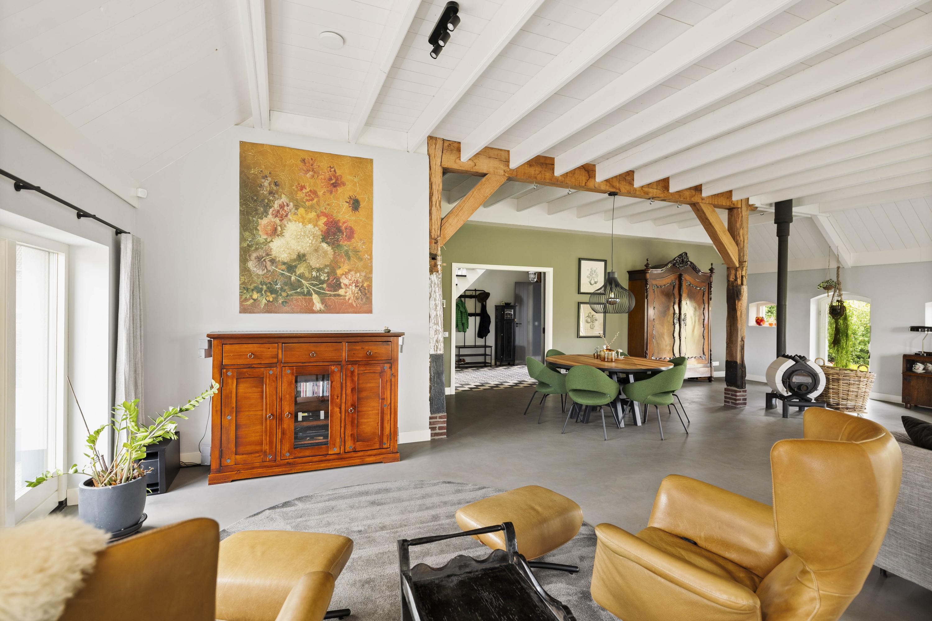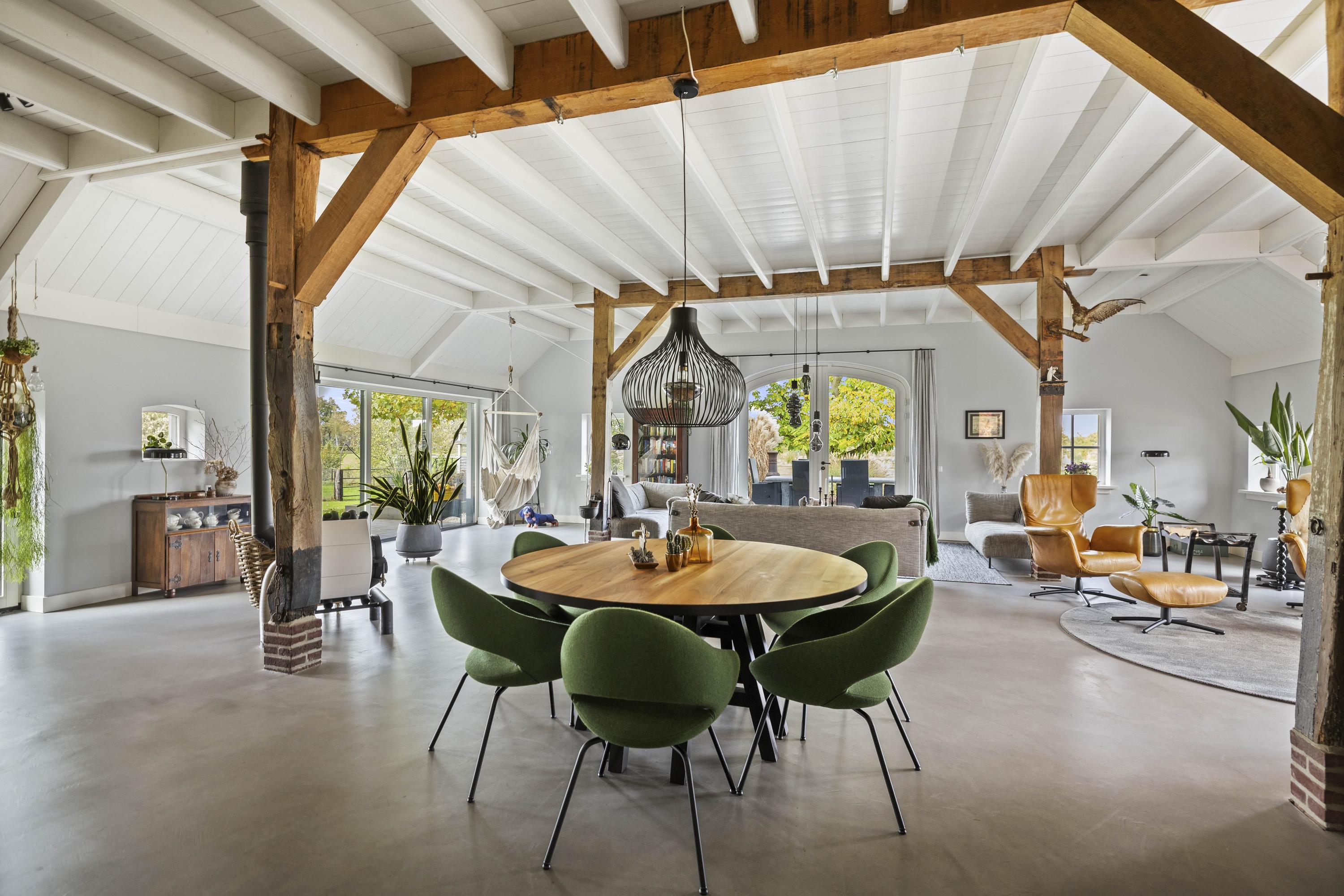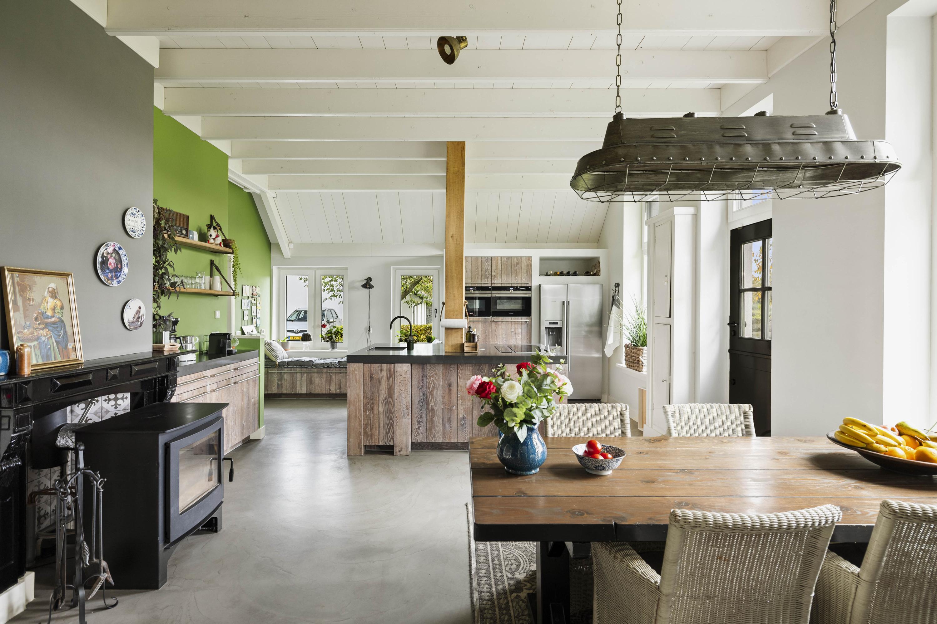 De keuken is maatwerk van Scheffer Keukens Zelhem en is ronduit indrukwekkend; met een dik, composiet werkblad, robuuste massief eiken fronten en alle moderne inbouwapparatuur – van inductieplaat tot Quooker - is het een heerlijke plek om je als chef-kok uit te leven. In de oude schouw staat nog een stoere Nordic Fire-houtkachel, die de keuken voorziet van extra sfeer en warmte.