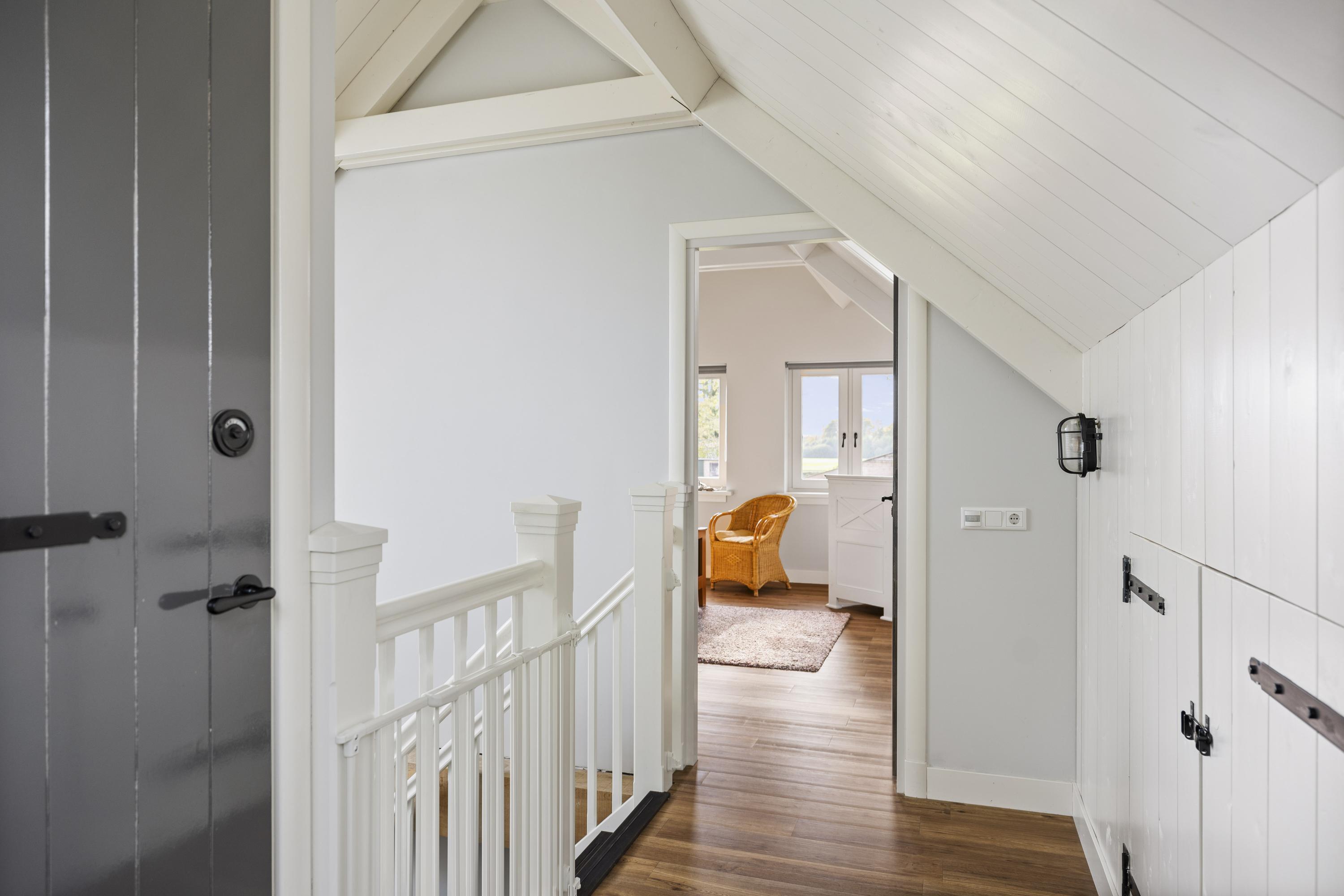 Deze magnifieke woonboerderij kreeg in 2016 haar huidige gestalte; toen werd de boerderij, die in 1924 gebouwd werd, van onder tot boven gerenoveerd. Hierbij lag de nadruk op verduurzaming; de buitenzijde werd volledig geïsoleerd met blokken styrofoam, rondom kreeg het huis nieuw HR+++-glas, er werd een water-water-warmtepomp aangelegd (die op 75 m diepte de warmte uitwisselt en ophaalt), de vloer binnen werd voorzien van een robuuste gietvloer – ideaal in combinatie met de vloerverwarming - en op de daken werden in totaal 110 (nee, dit is géén typfout) zonnepanelen gelegd. Onder de motorkap is dit huis één en al state-of-the-art technisch vernuft. Zelfs het kleurenpalet – de buitenzijde is wit gekeimd met grijs houtwerk en kraalrand – draagt bij aan het energiezuinige karakter van het huis, want waar de witte gevels het zonlicht reflecteren, absorbeert het grijs de warmte. Dit huis heeft niet alleen nul op de meter, het levert ook nog eens fiks terug! Een thuisbatterij is hier dus een prima aanvulling.