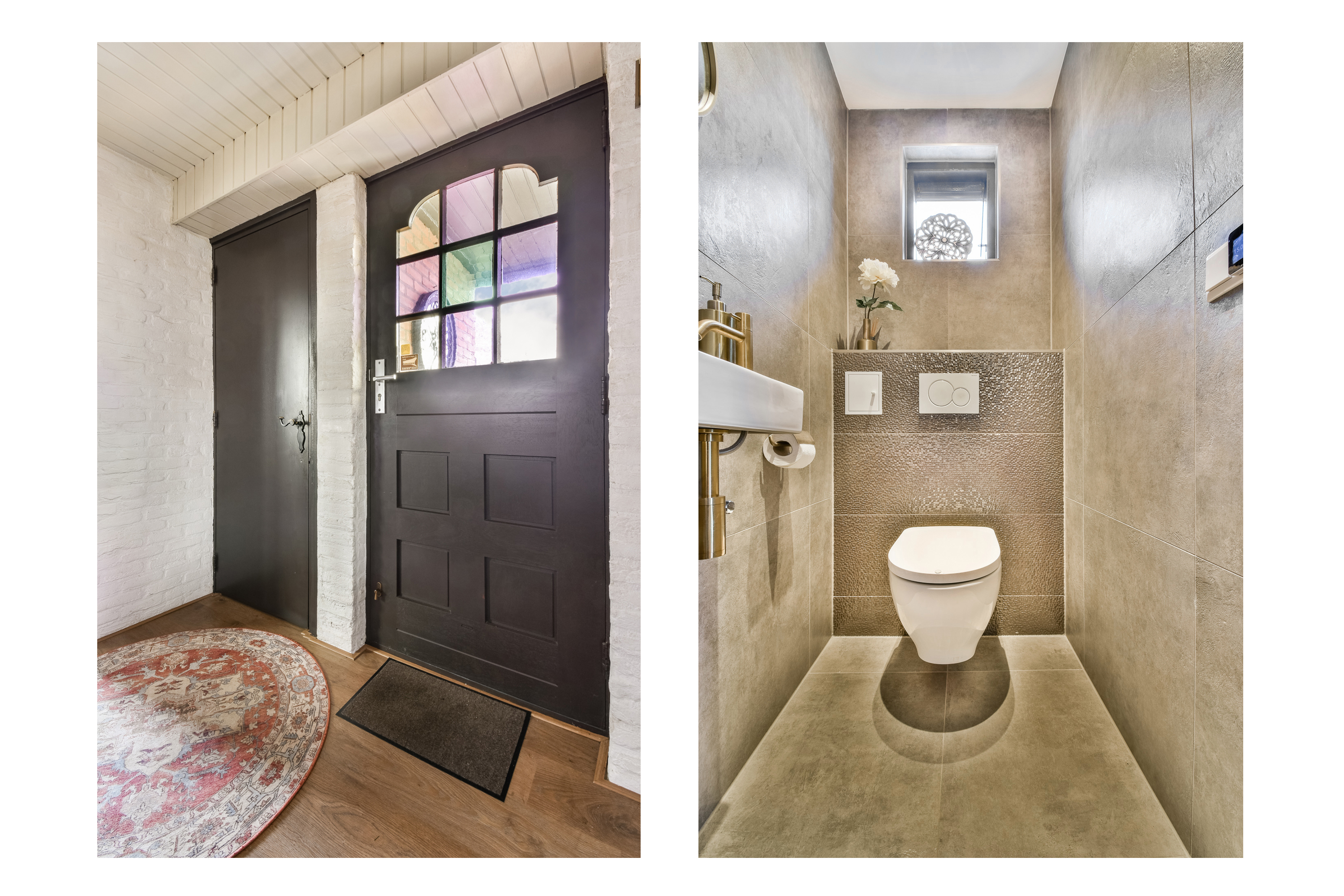 Entree, hal met toilet en toegang tot de keuken en de woonkamer.