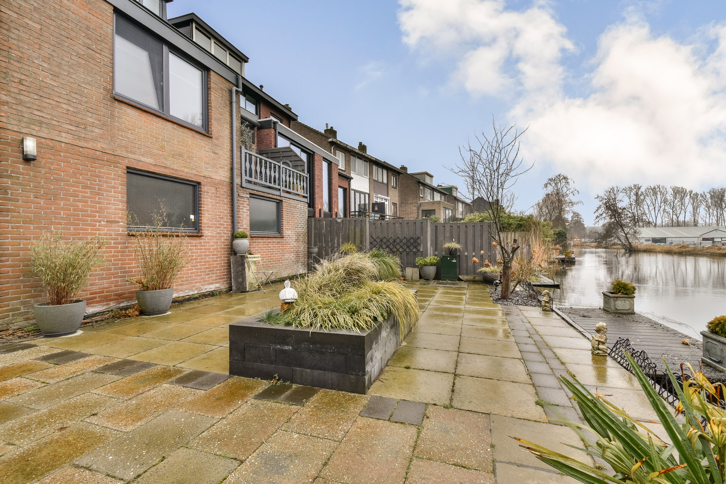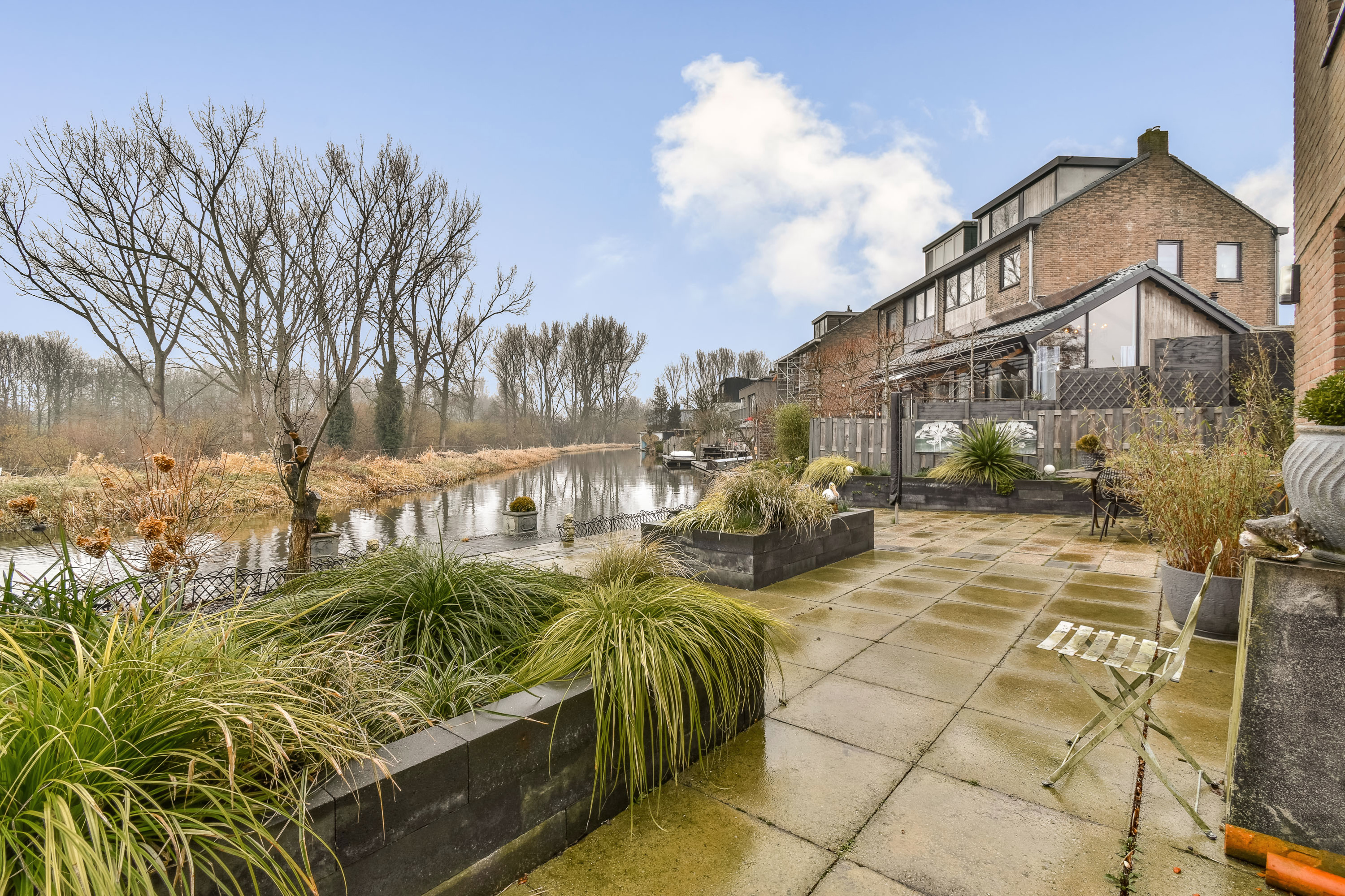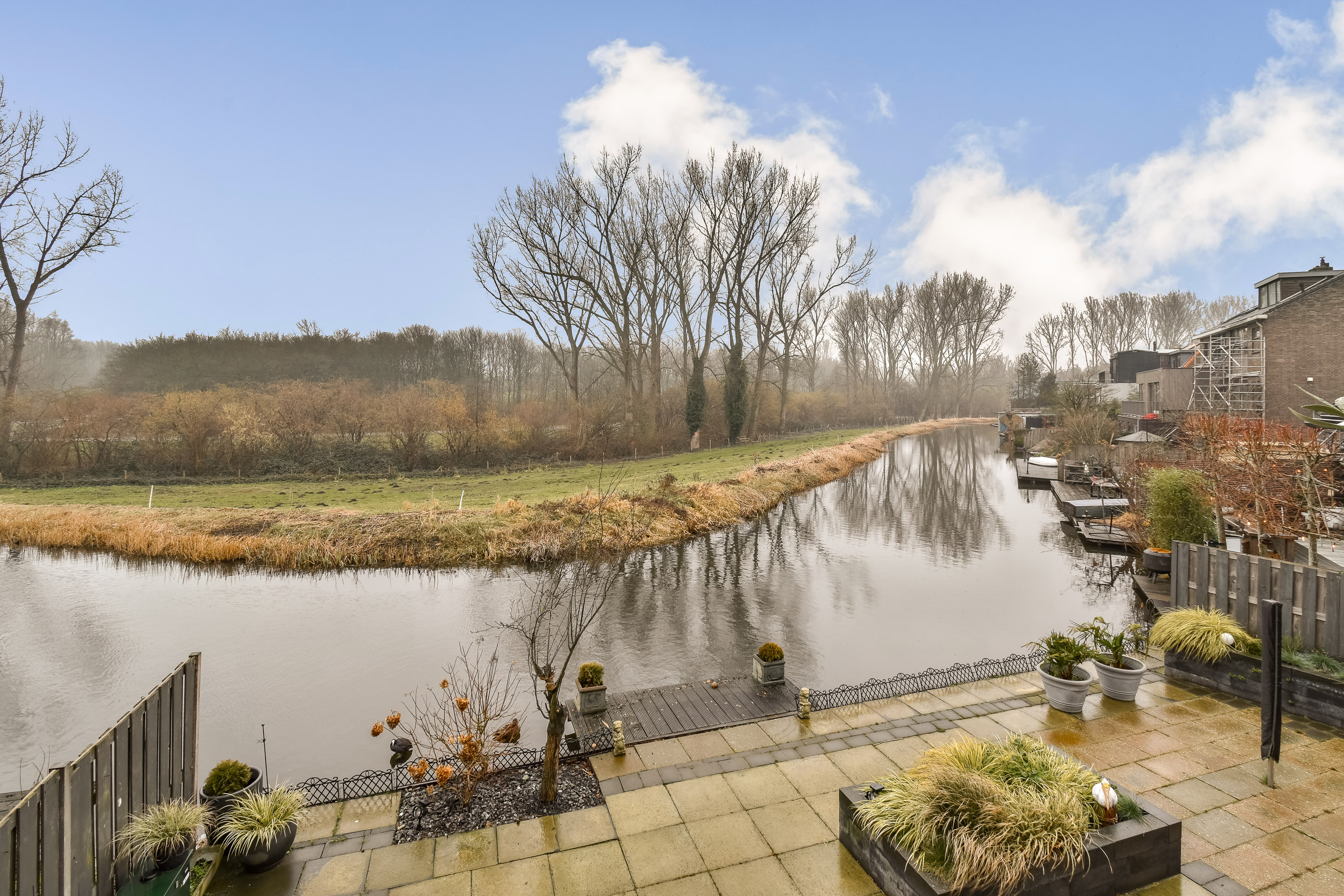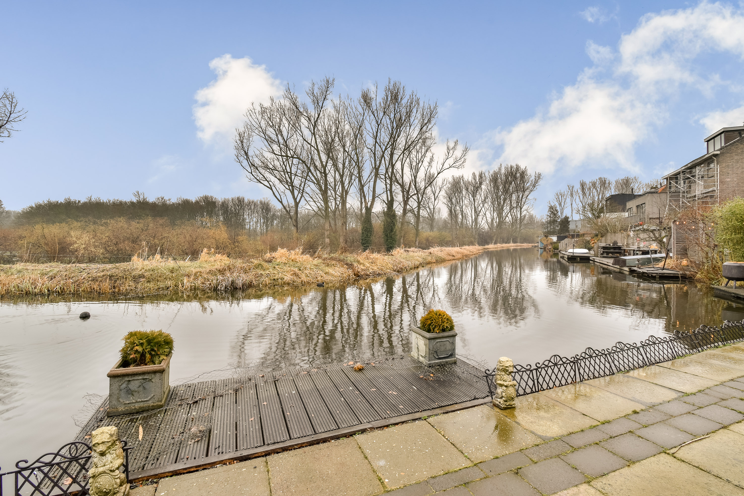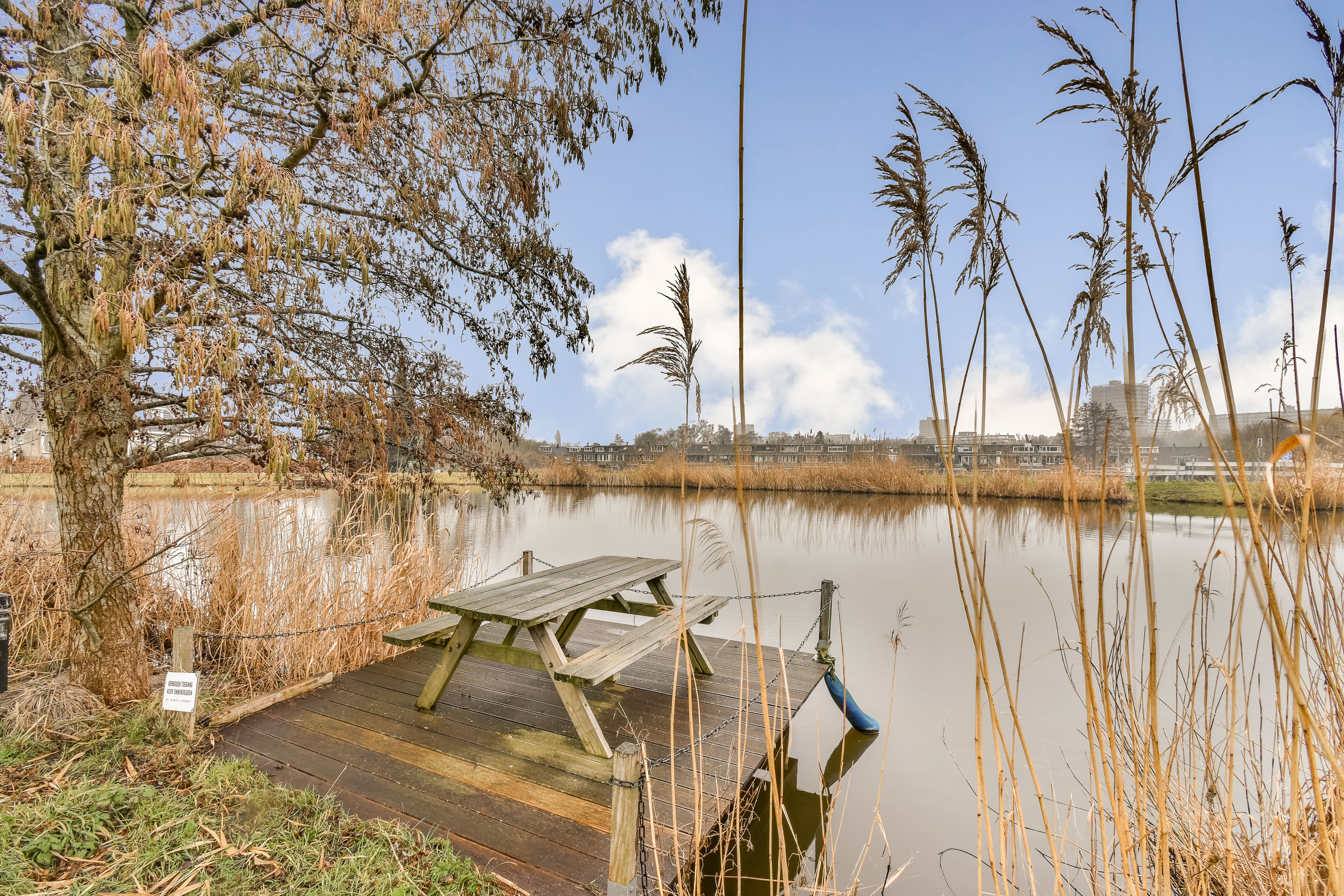 De ruime achtertuin is gelegen op het noorden en biedt een weids uitzicht over het groen en het Lage Bergse Bos. Een heerlijke plek om te genieten van lange zomeravonden, een borrel met vrienden of simpelweg om tot rust te komen. Tevens is er een steiger/vlonder aan het water aanwezig.